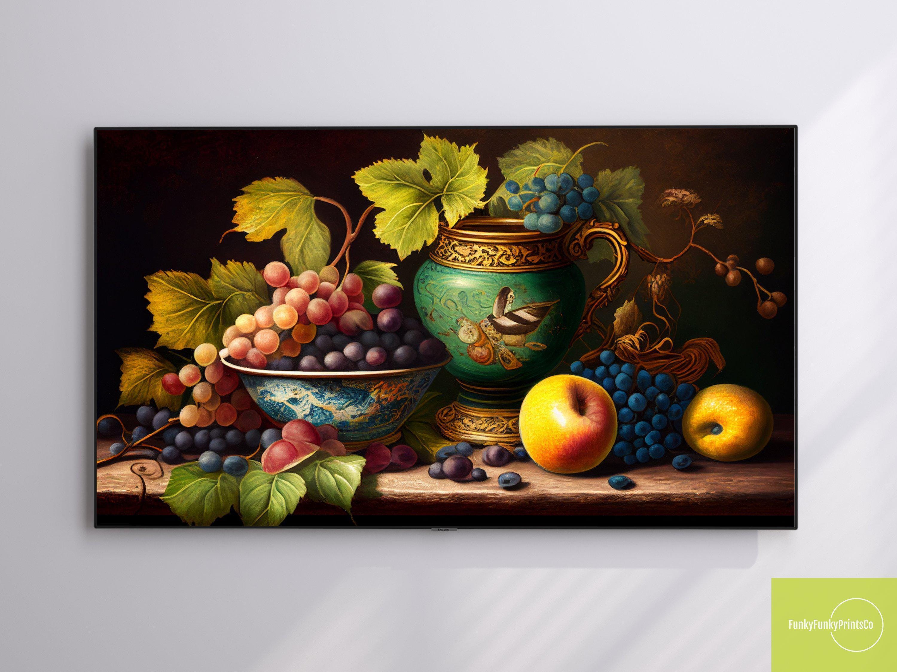 Give your Samsung The Frame a timeless upgrade with this vintage fruit still lifeโa rustic kitchen oil painting reproduction optimized for crisp 4K 16:9 display. Warm brushwork, classic tones, and cottagecore charm create a cozy focal point for dining rooms, pantries, and breakfast nooks. ๐๐