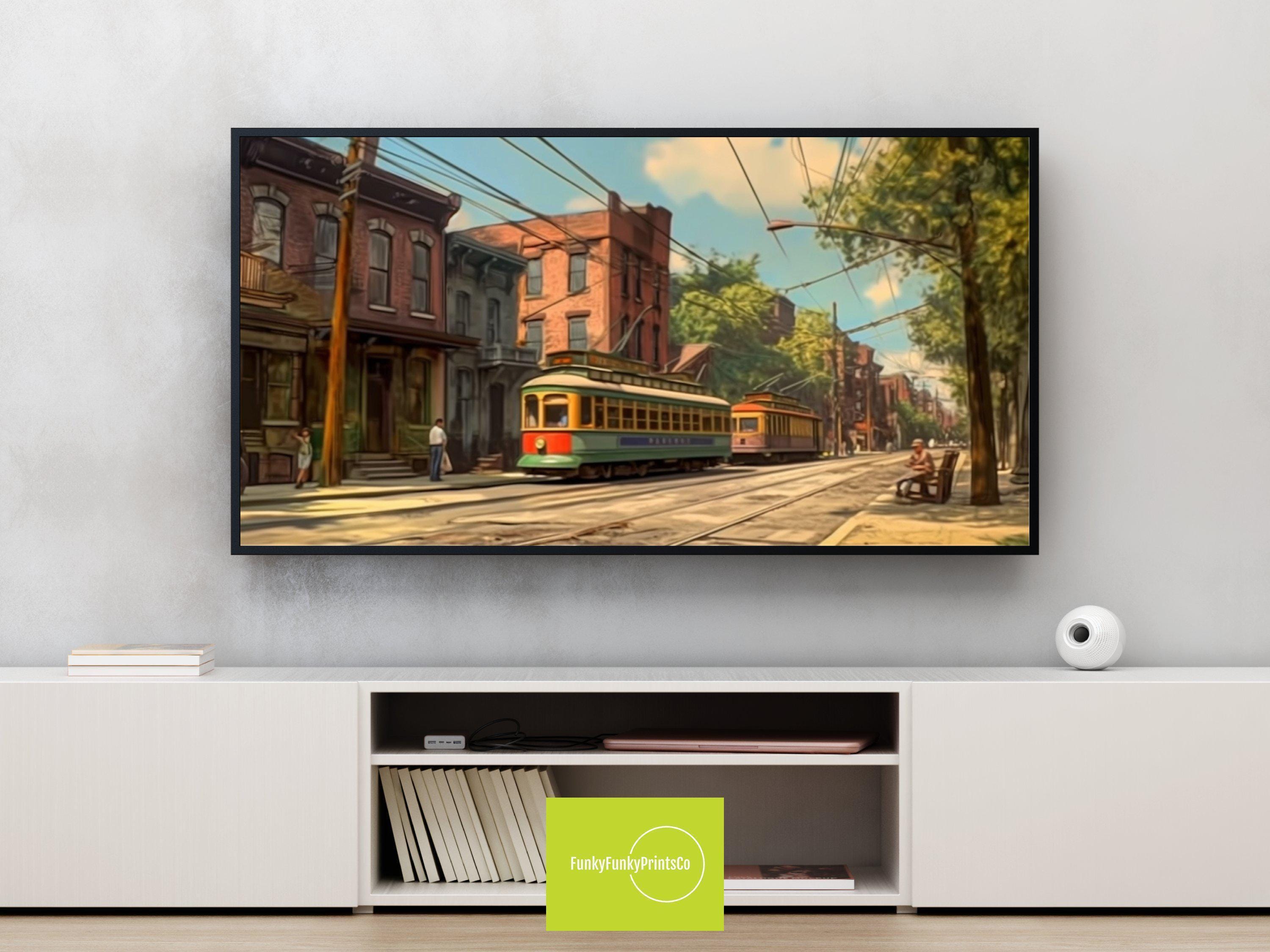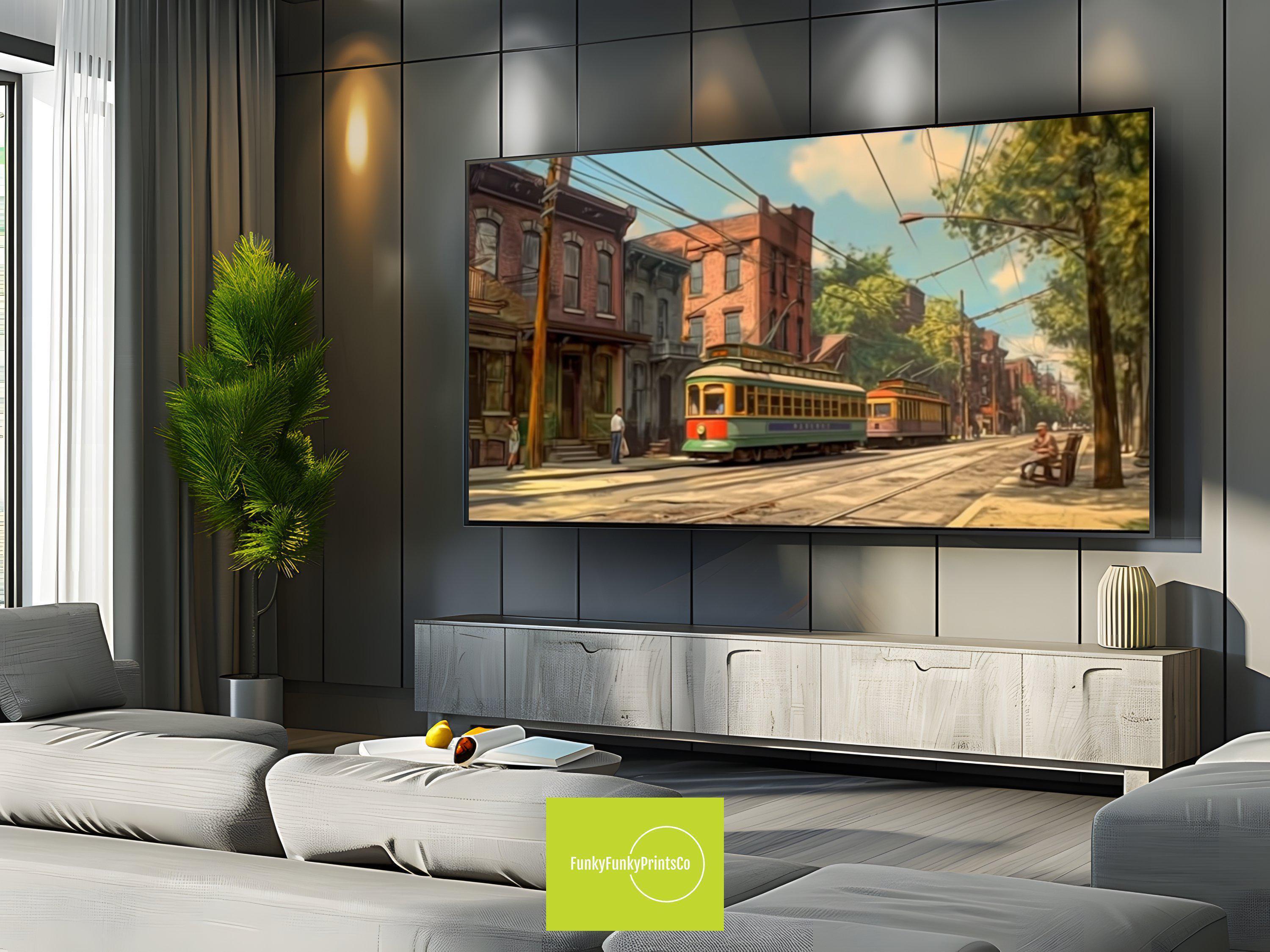 Step into the vibrant energy of Philadelphia with this stunning trolley scene print, perfect for adding a touch of Philly home decor to your space. This digital download art captures a bold urban wall art vibe, designed especially for modern wall art enthusiasts looking to elevate their interiors. Whether displayed as Samsung Frame art or printed for trendy wall design, it brings a unique cityscape that celebrates Philadelphia’s iconic trolley culture.