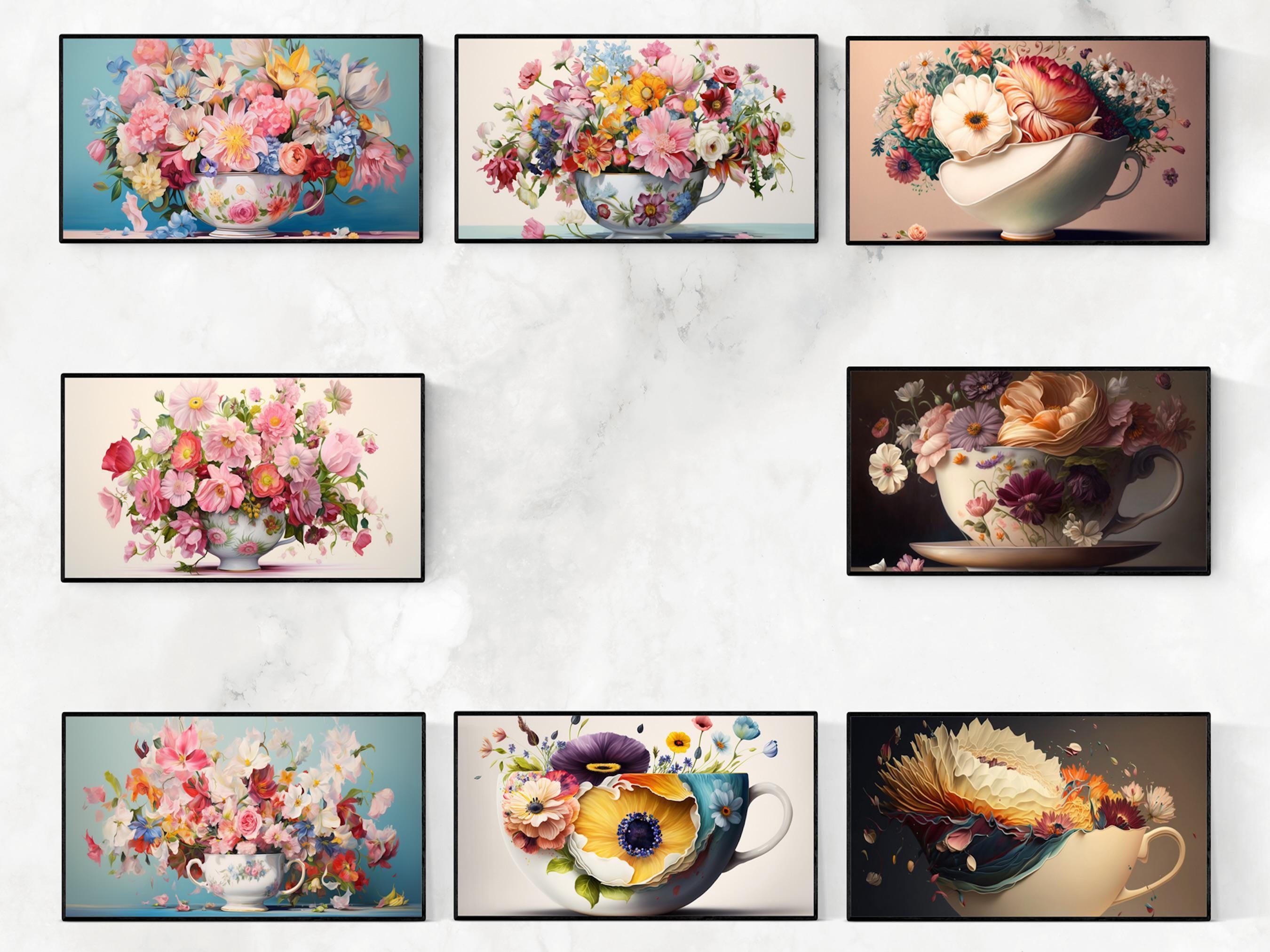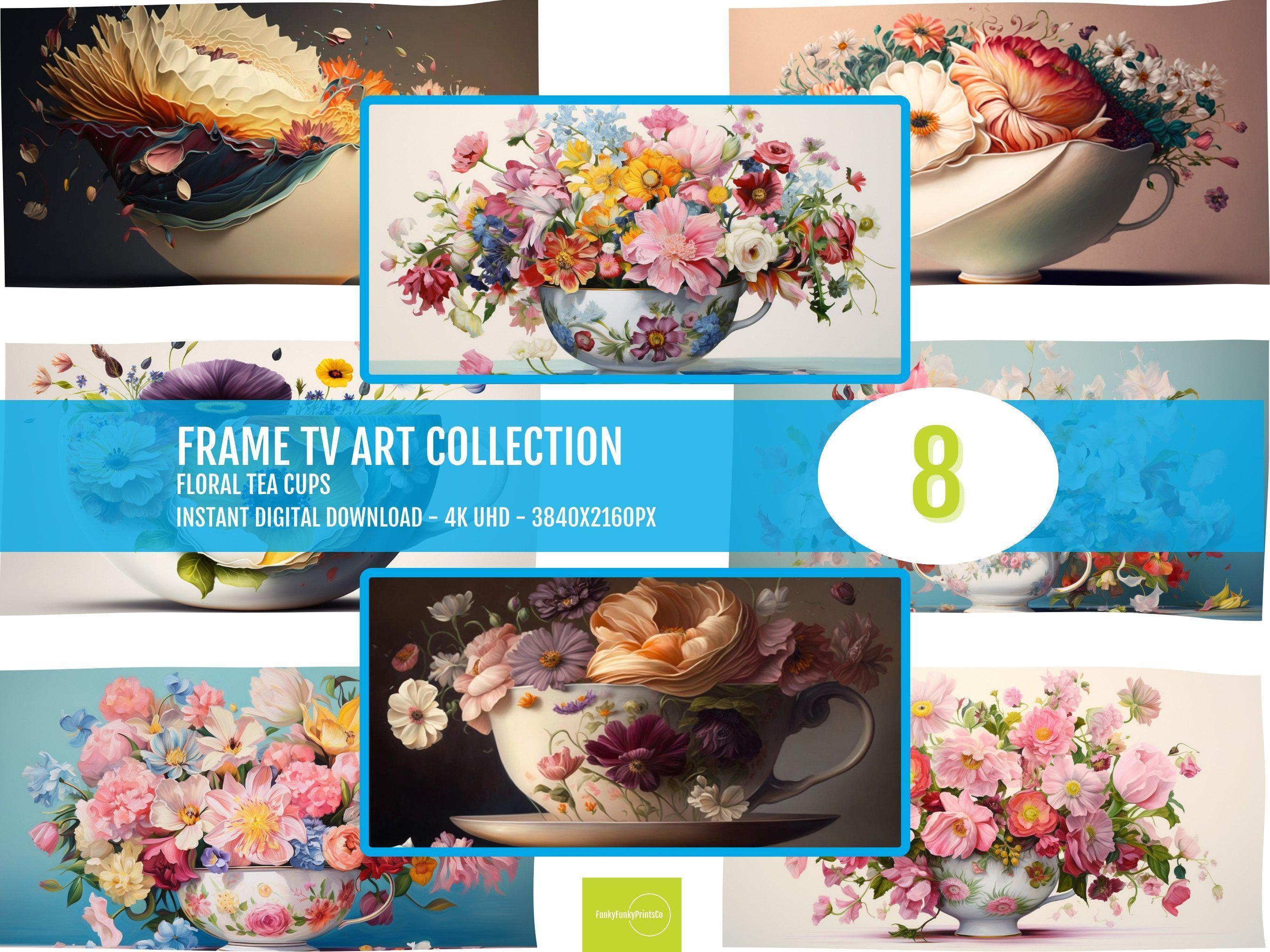 Transform your living space with the vibrant charm of our Floral Tea Cups collection, specially crafted for Samsung Frame TV and LG Frame TV art enthusiasts. This colorful digital art set brings a fresh, modern wall decor touch to any room, perfect for those who appreciate bright color frames and high-resolution JPG designs. Each piece in this 4K HD screensaver collection is thoughtfully created to complement your smart display with elegance and warmth.