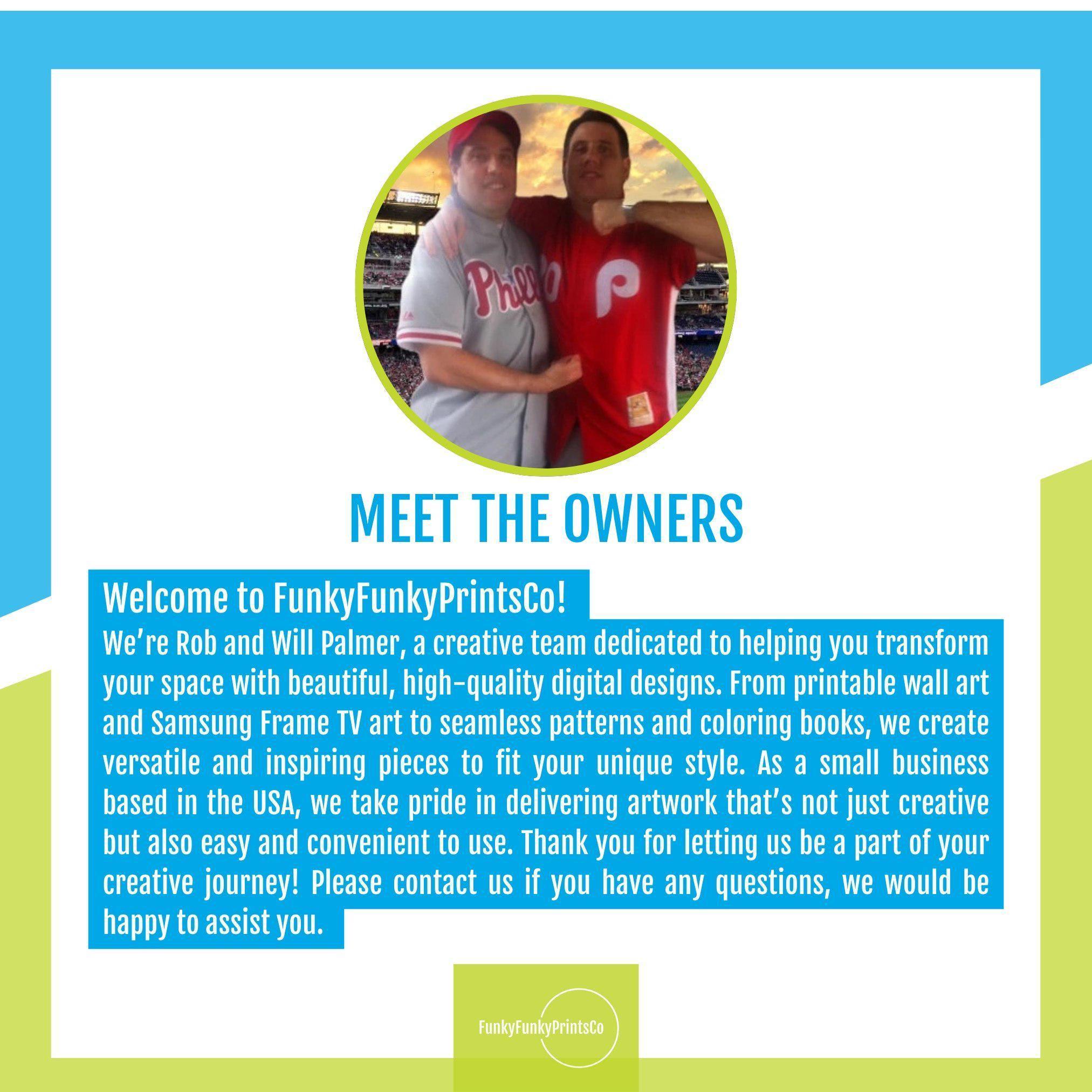 At FunkyFunkyPrintsCo, Rob and Will pour their passion for design into every creation, blending whimsy and vibrant charm to brighten your home. Follow us on Instagram, Facebook, TikTok, Pinterest, and X for more unique art and updates. Explore our full collection at funkyfunkyprintsco.etsy.com and enjoy art that’s curated with care and creativity.