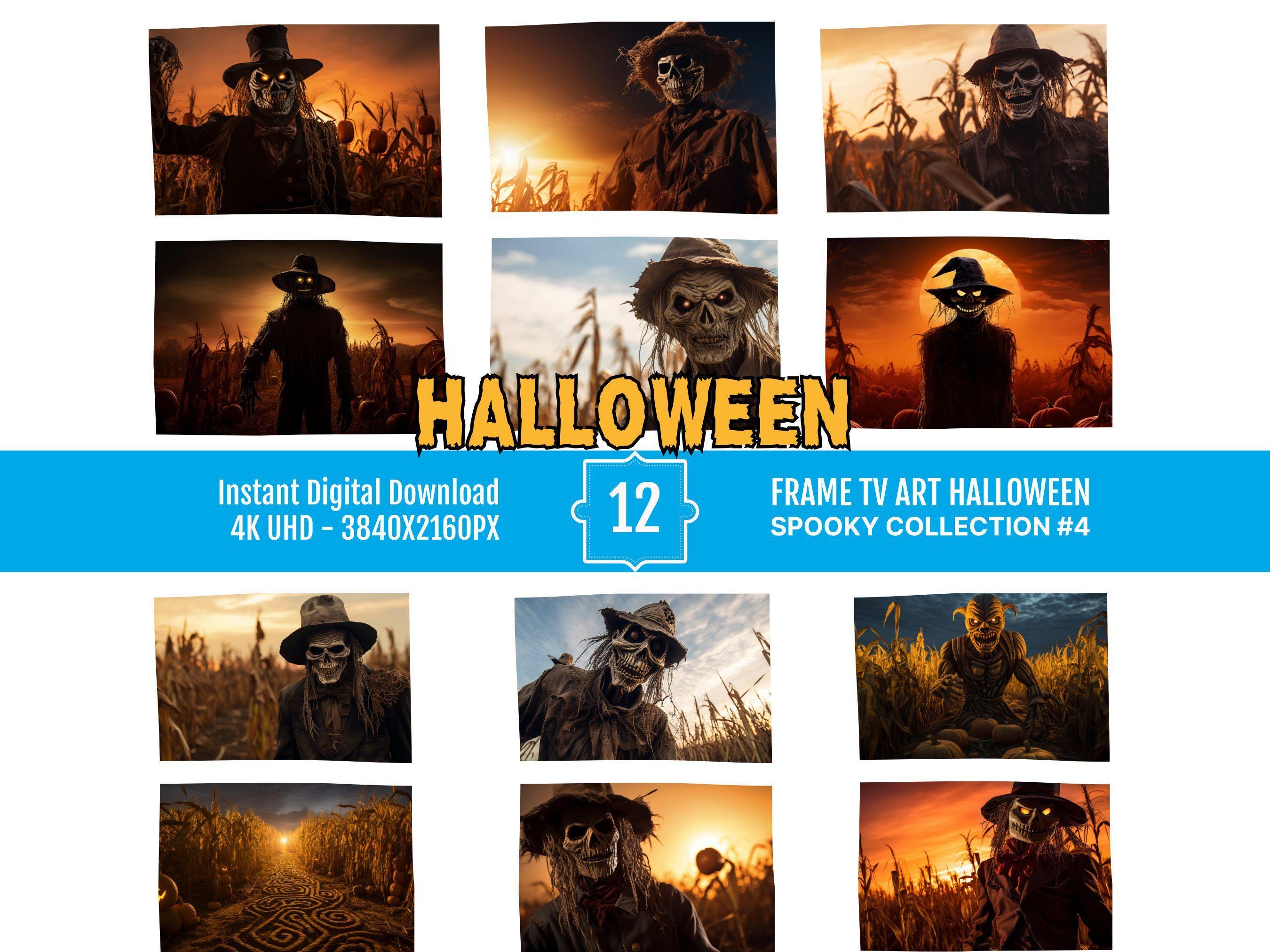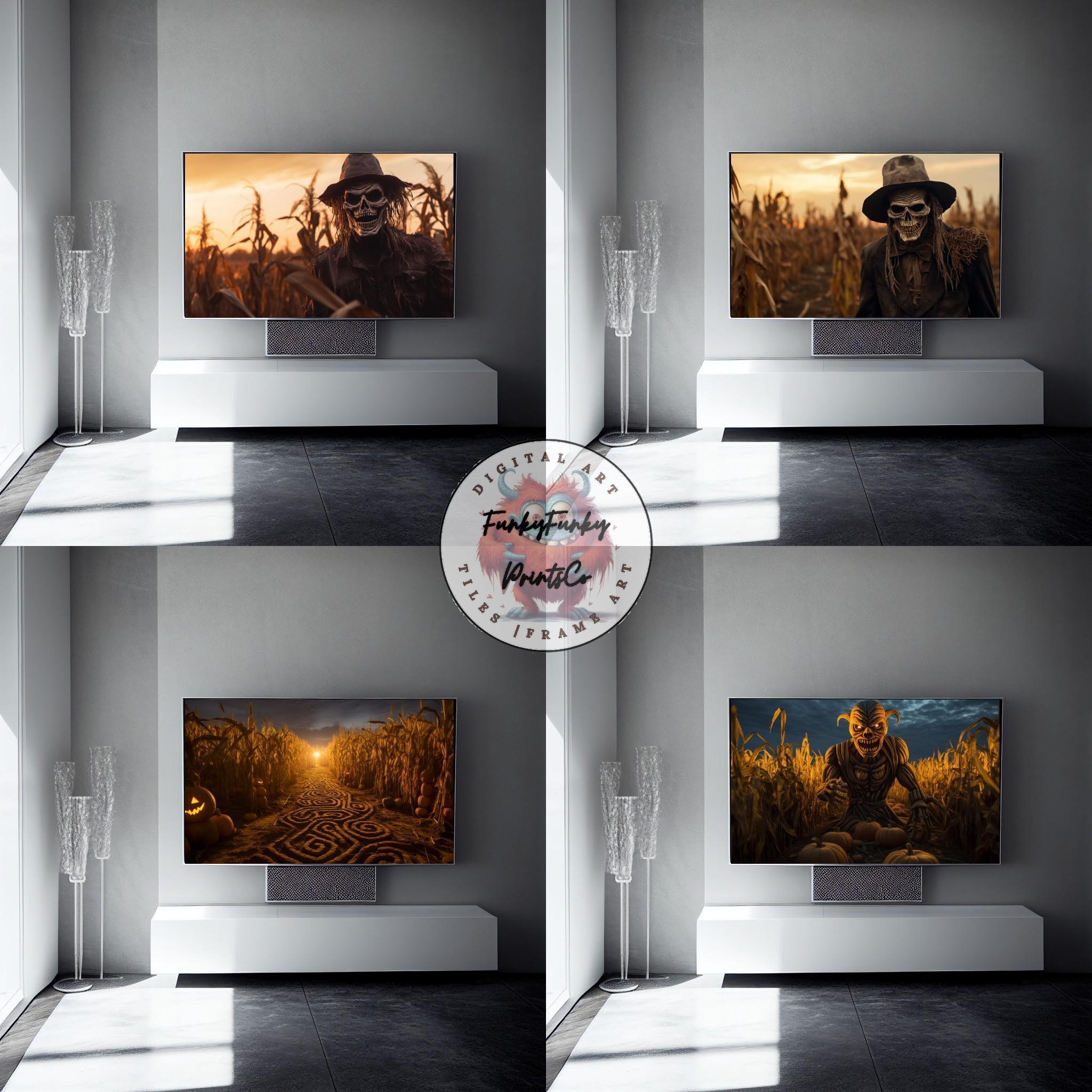 Celebrate the spooky season with this captivating set of 12 digital artworks perfect for your Samsung Frame TV. Inspired by eerie autumn scenes and the haunting charm of fall pumpkin patches, these spooky fall scenes bring a unique, creepy seasonal art vibe to your home. Whether you're decking out for Halloween or simply love seasonal TV displays, these high-resolution images transform your screen into a chilling cornfield filled with skeleton scarecrows.