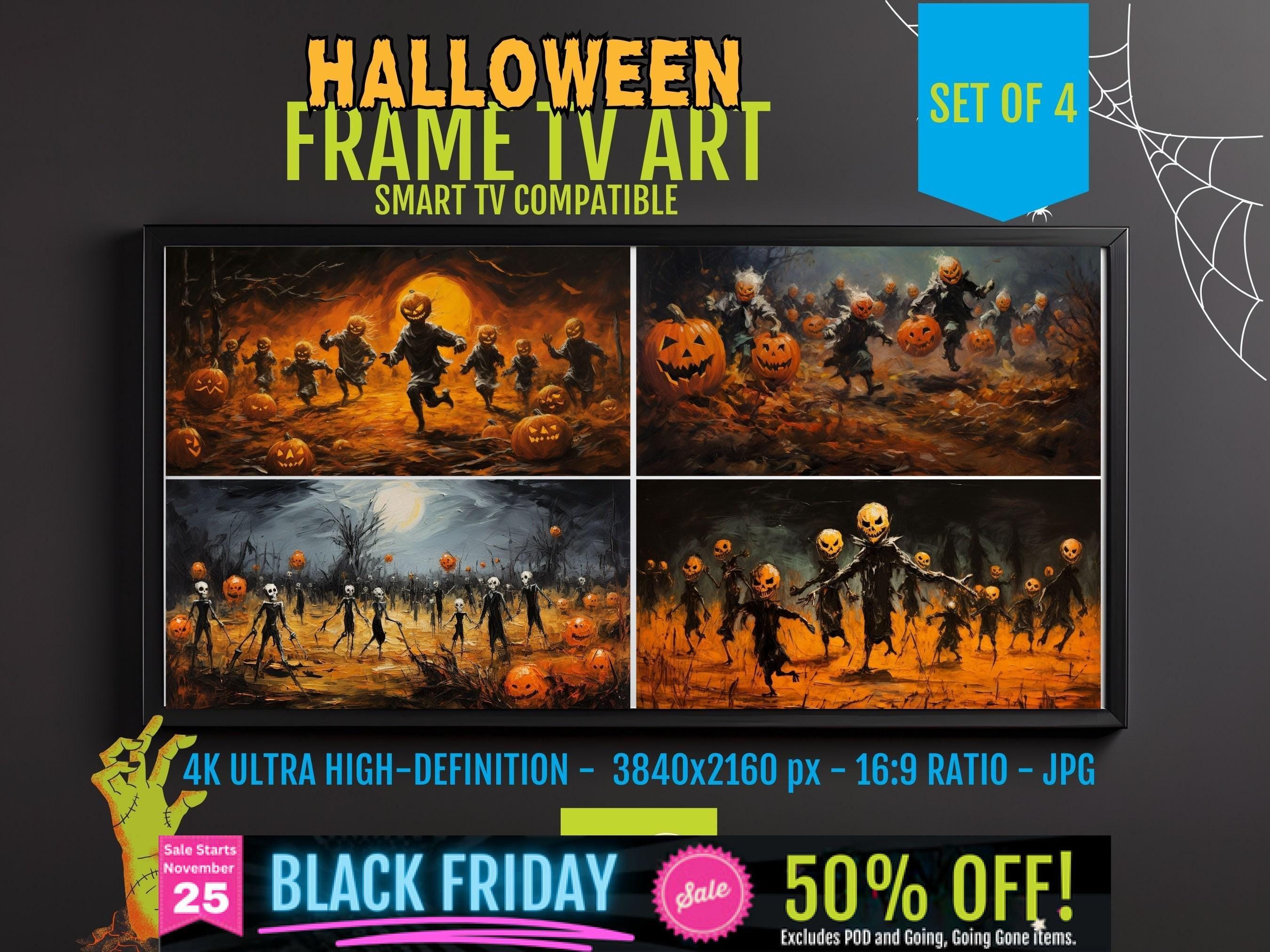 Celebrate the spirit of the season with this captivating Halloween frame art designed specifically for TV displays. Infused with rich autumn vibes and crafted as a spooky digital art piece, it transforms any room into a festive haven. Perfect for your Samsung Frame TV or any 4K HD screensaver, this fall digital decor brings a hauntingly beautiful touch to your seasonal home decor.
