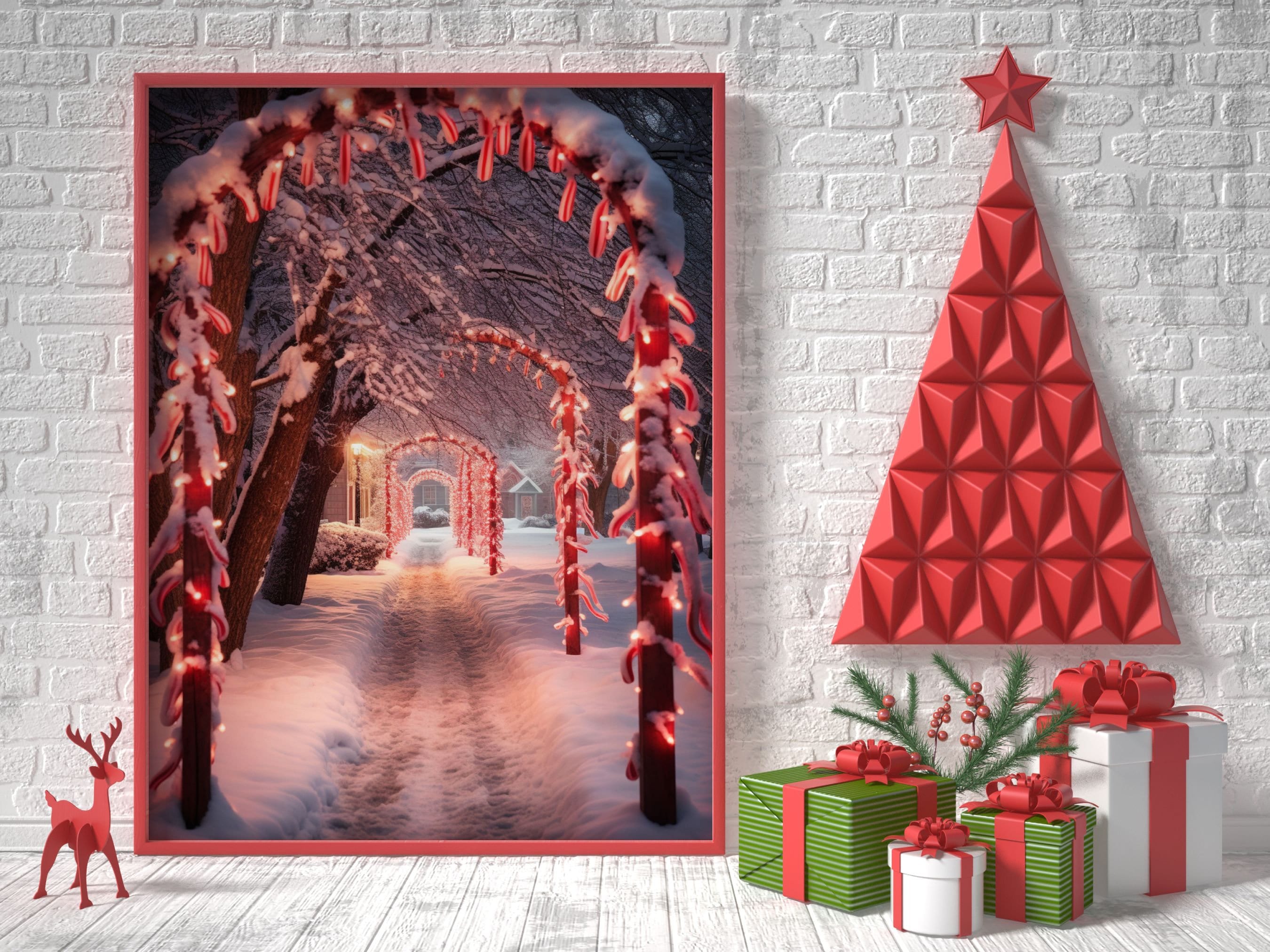 Transform your home into a festive wonderland with our Candy Cane Lane Wall Art! This incredible digital download features a charming and whimsical design of candy canes, created by the talented FunkyFunkyPrintsCo team.With just a click of a button, you can instantly download and print this unique piece of art, providing immediate access to brighten up any room in your home.Featuring a funky poster style, this digital file is available in 9 different sizes to suit any space - 24x36", 18x24", 20x30", 16x20", 11x17", 11x14", 8x10", 5x7" and A2.No need to wait for shipping, this digital download allows you to print and frame the artwork in your desired size and style. It's perfect for anyone who loves adding a touch of quirkiness to their space.Rest assured, this high-quality artwork guarantees clear and vibrant colors, capturing the fun and playful nature of the holiday season. And with optimized file sizes for printing, you'll get the best result every time.Get your hands on this delightful Candy Cane Lane Wall Art and bring a smile to your home this Christmas season.