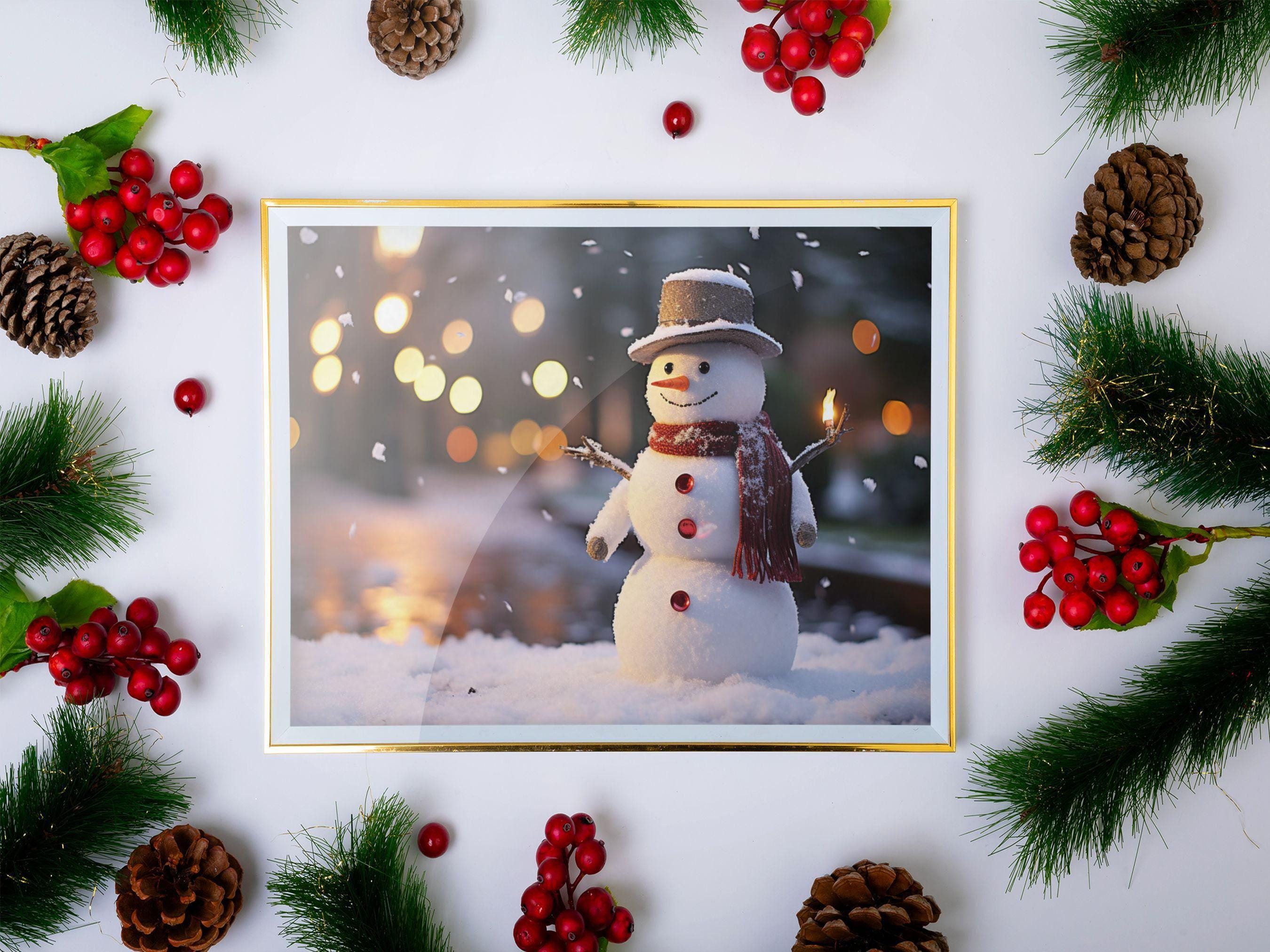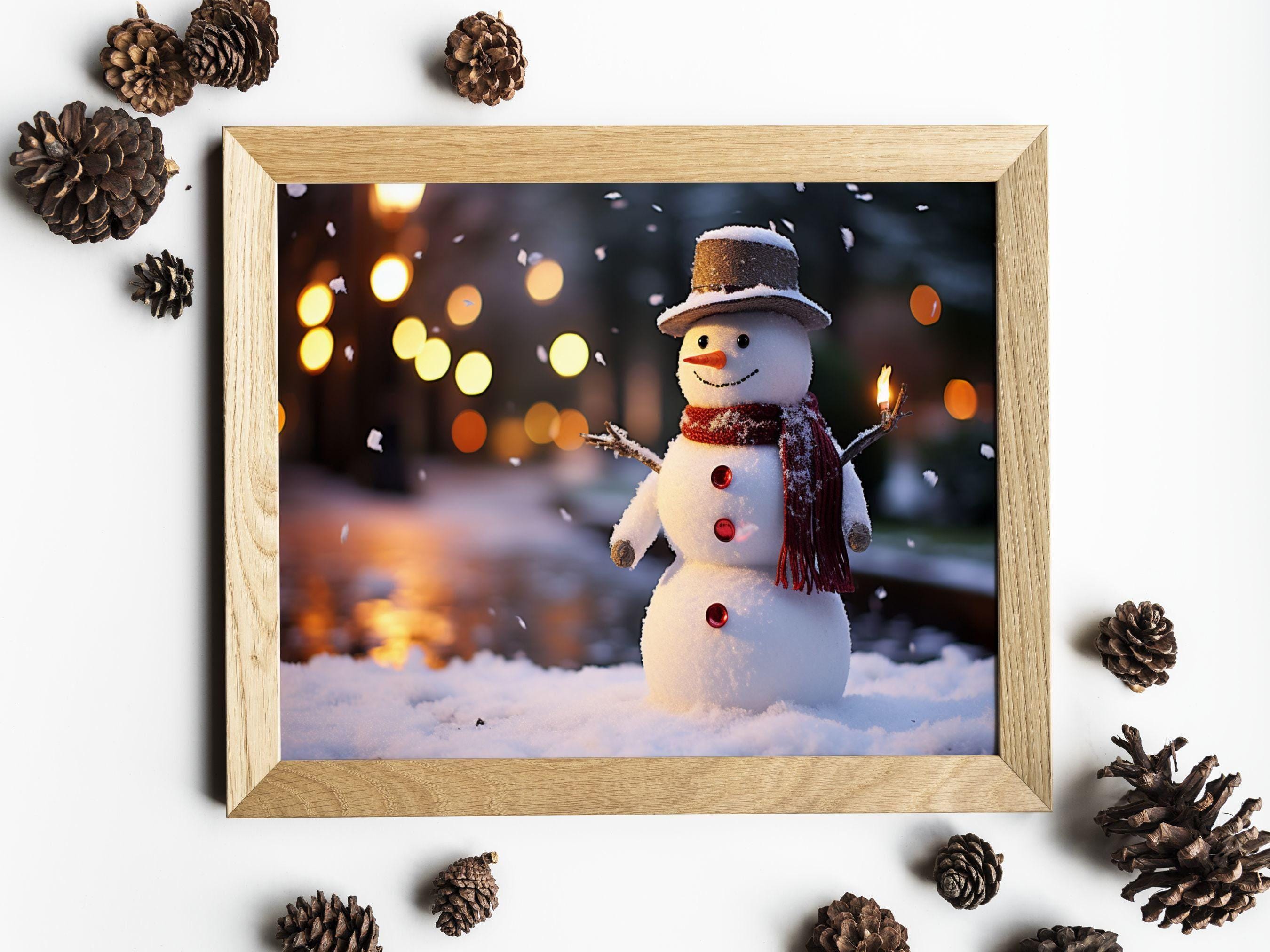 ⛄ Timeless Seasonal Mood – Cheerful snowman, gentle snowfall, and painterly texture for classic Christmas ambiance.