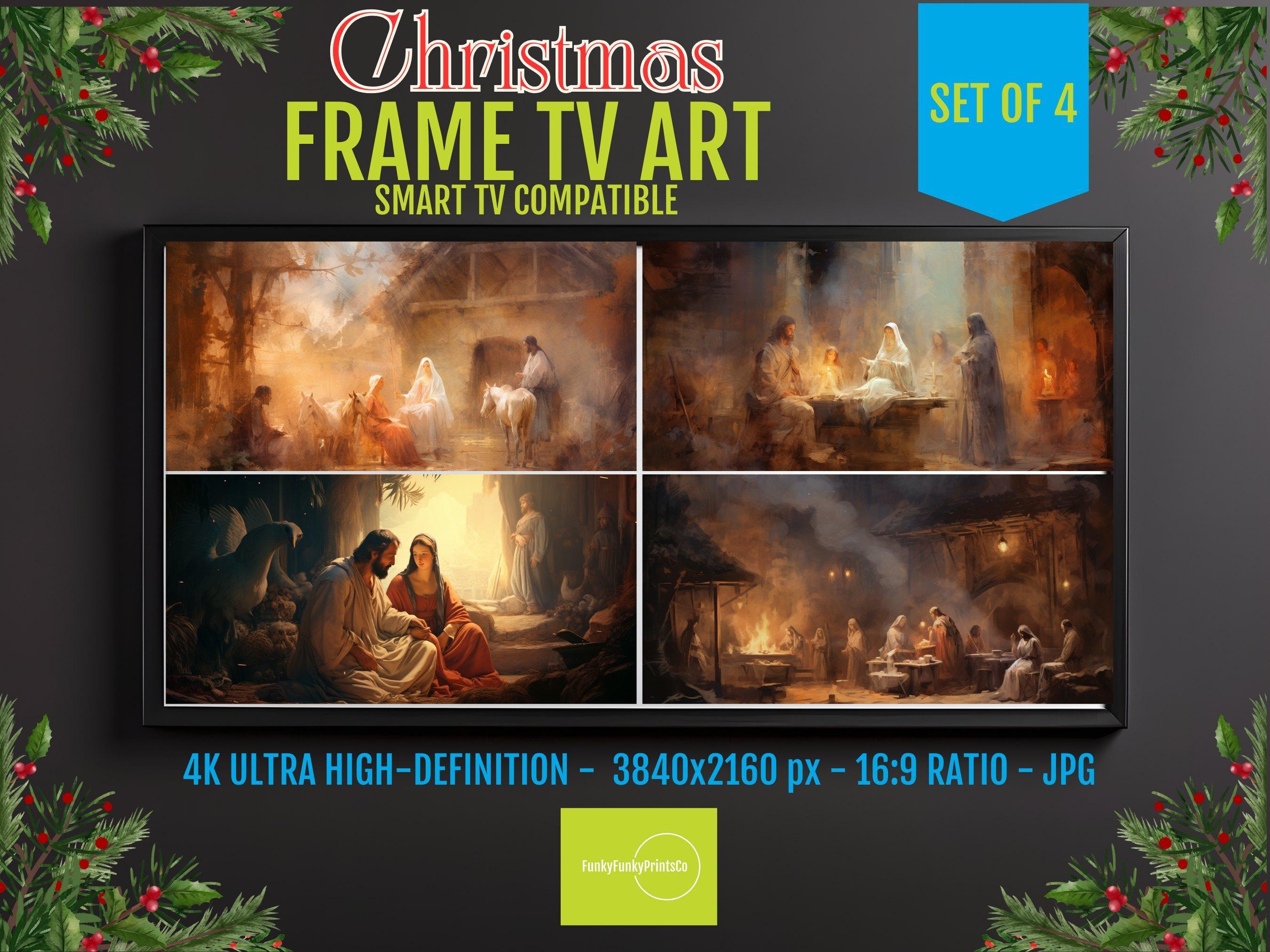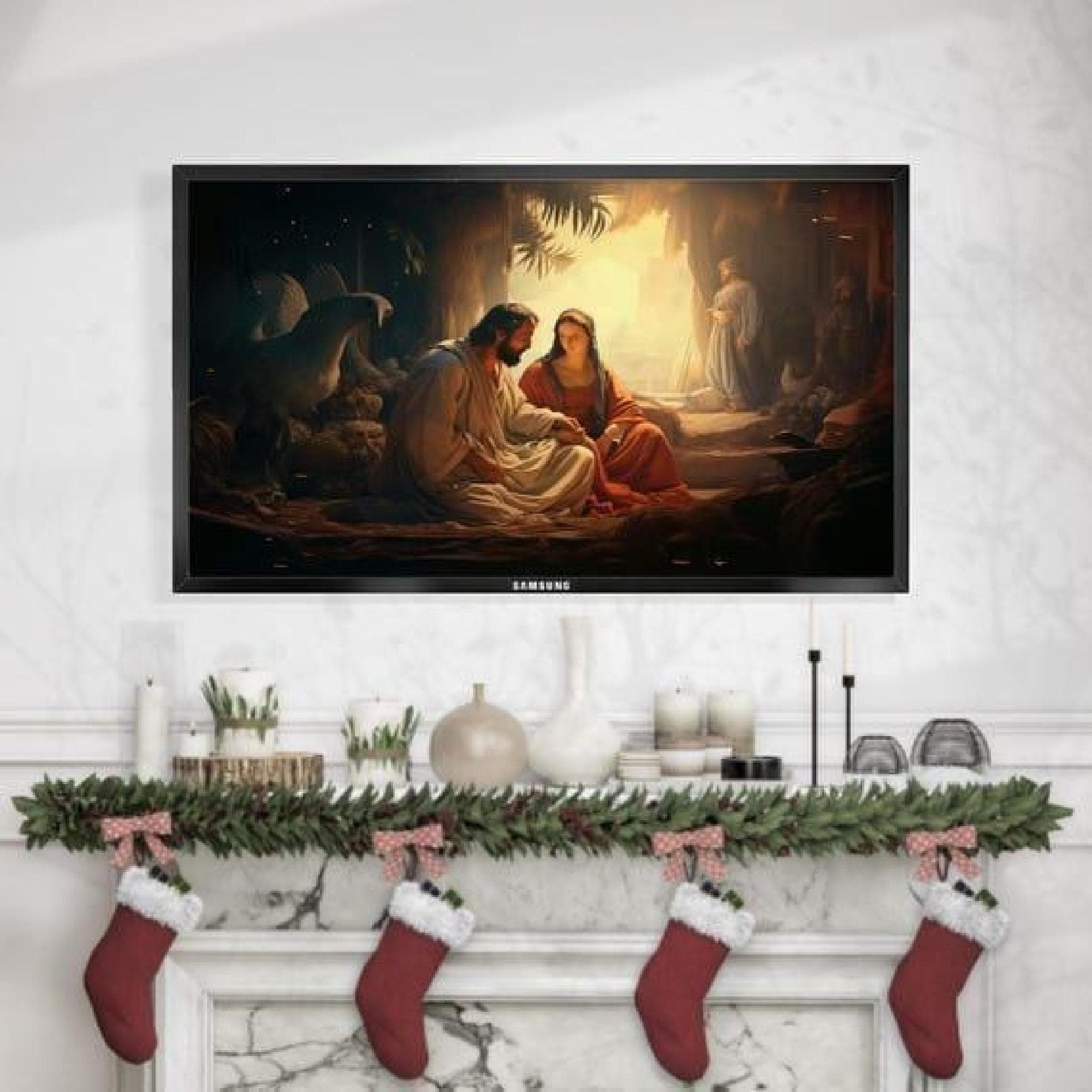 Experience the warmth and tradition of the holiday season with this vintage Christmas digital download, designed specifically for Samsung Frame TVs and 16:9 ratio displays. This beautifully crafted nativity scene TV art captures the spirit of Christmas with stunning 4K HD resolution, bringing a timeless religious and holiday ambiance to your home. Perfect as a holiday home decor piece, it offers instant download convenience so you can effortlessly transform your space.