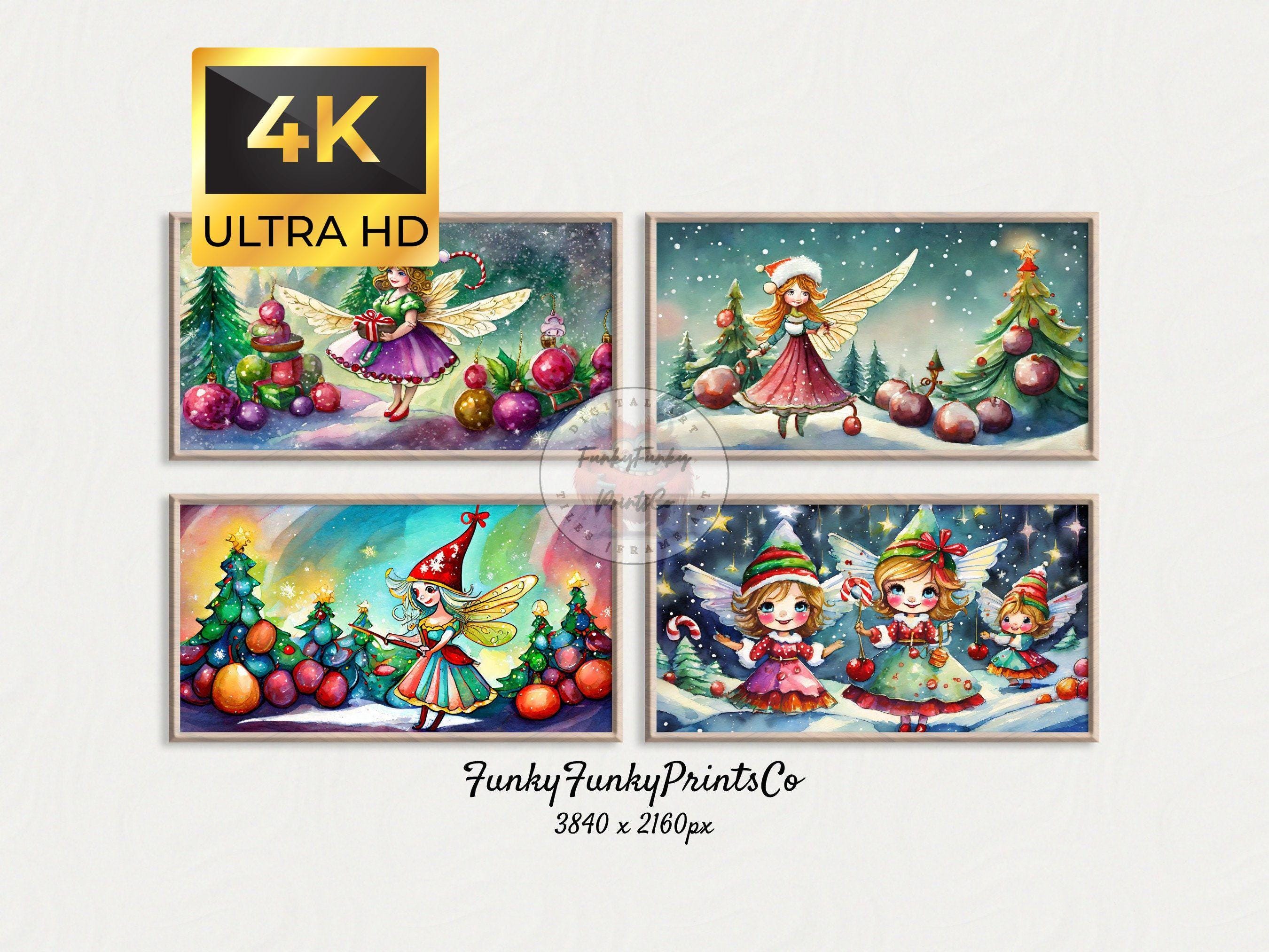 Step into a world of festive wonder with this enchanting Christmas frame art set, featuring the beloved Sugar Plum Fairies and the magical Land of Sweets. Designed as a vibrant digital download, this 4K HD artwork brings seasonal home decor to life on your Samsung Frame TV or any 16x9 screen. Perfect for those seeking instant download art that transforms your holiday atmosphere with quirky holiday charm.