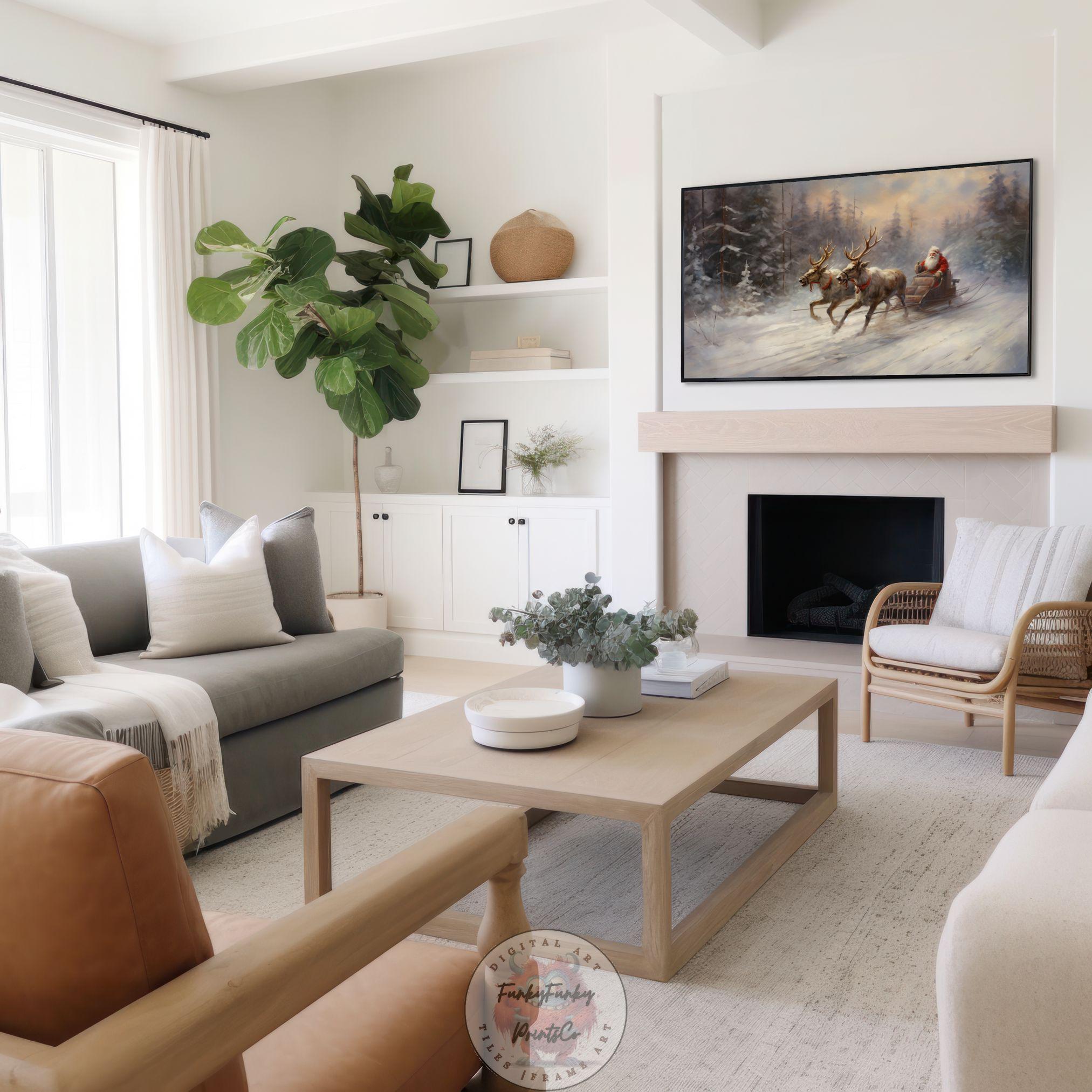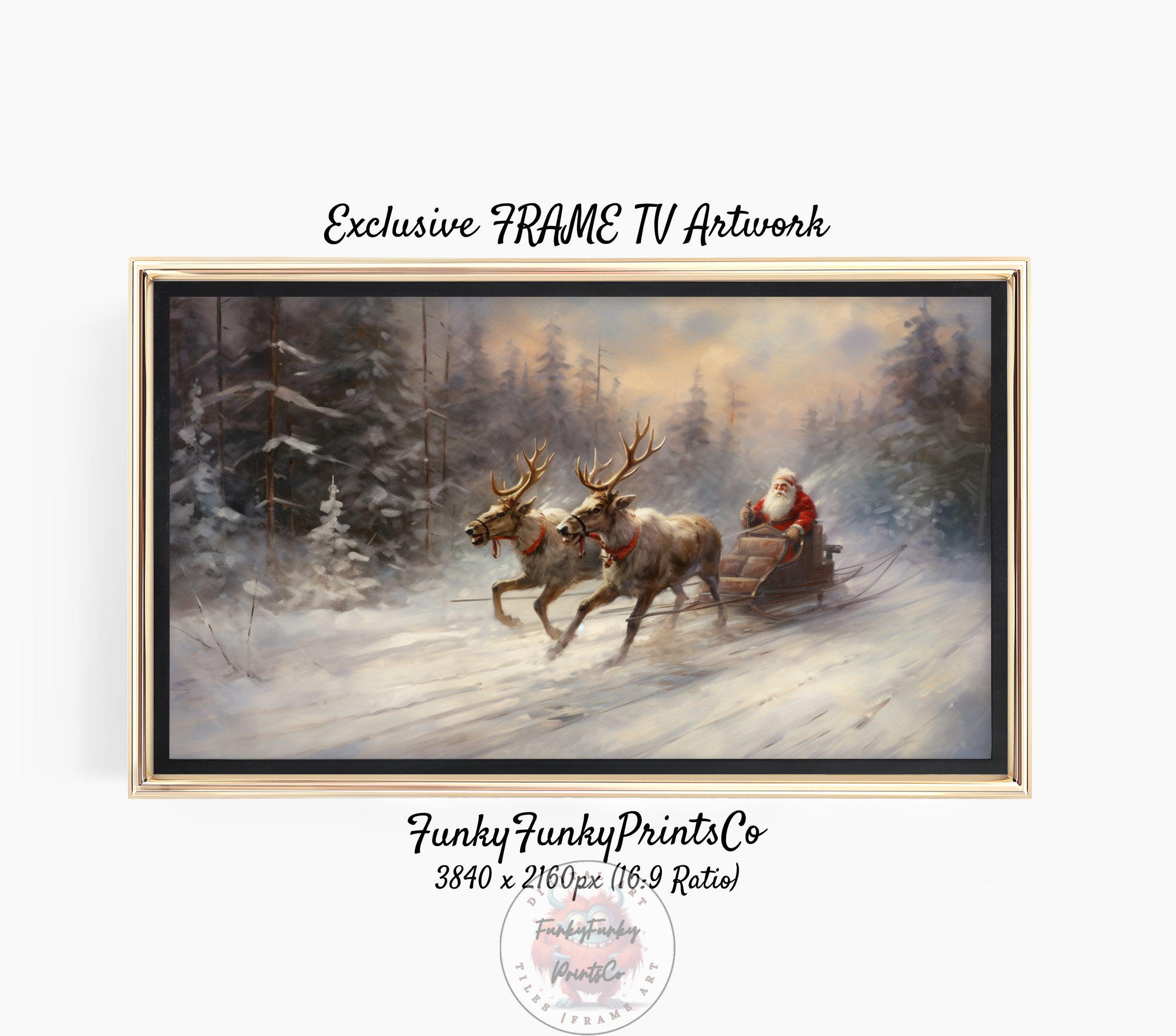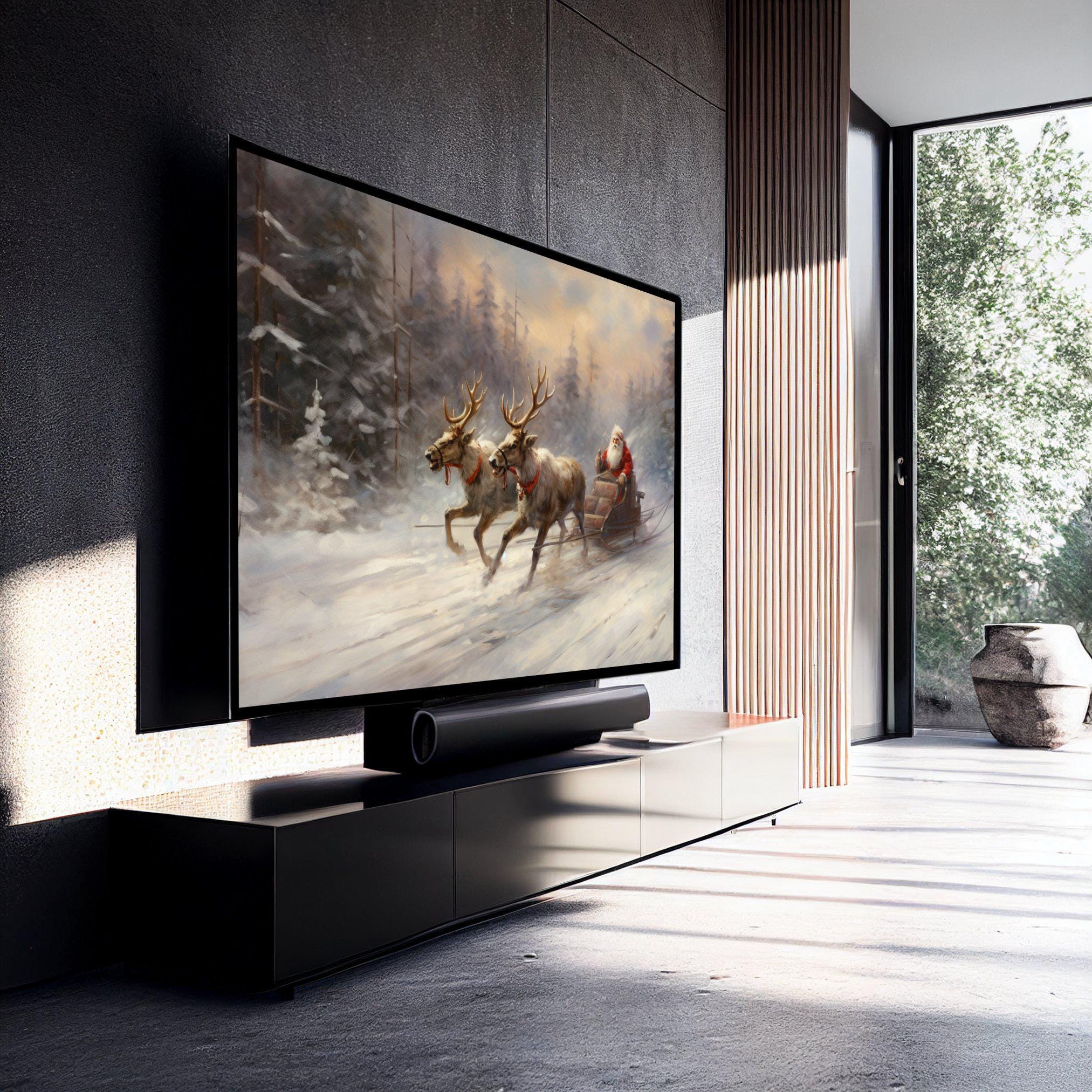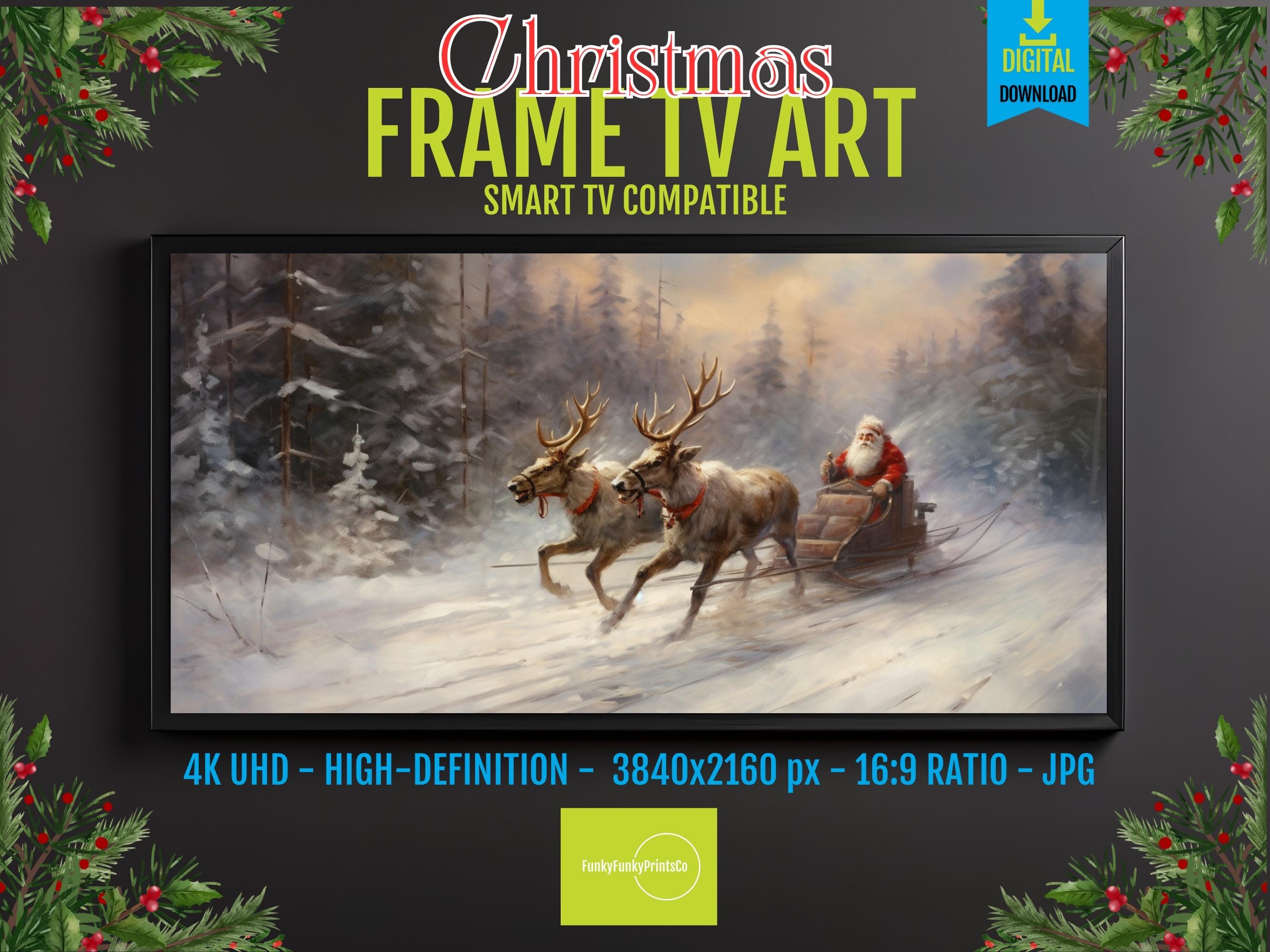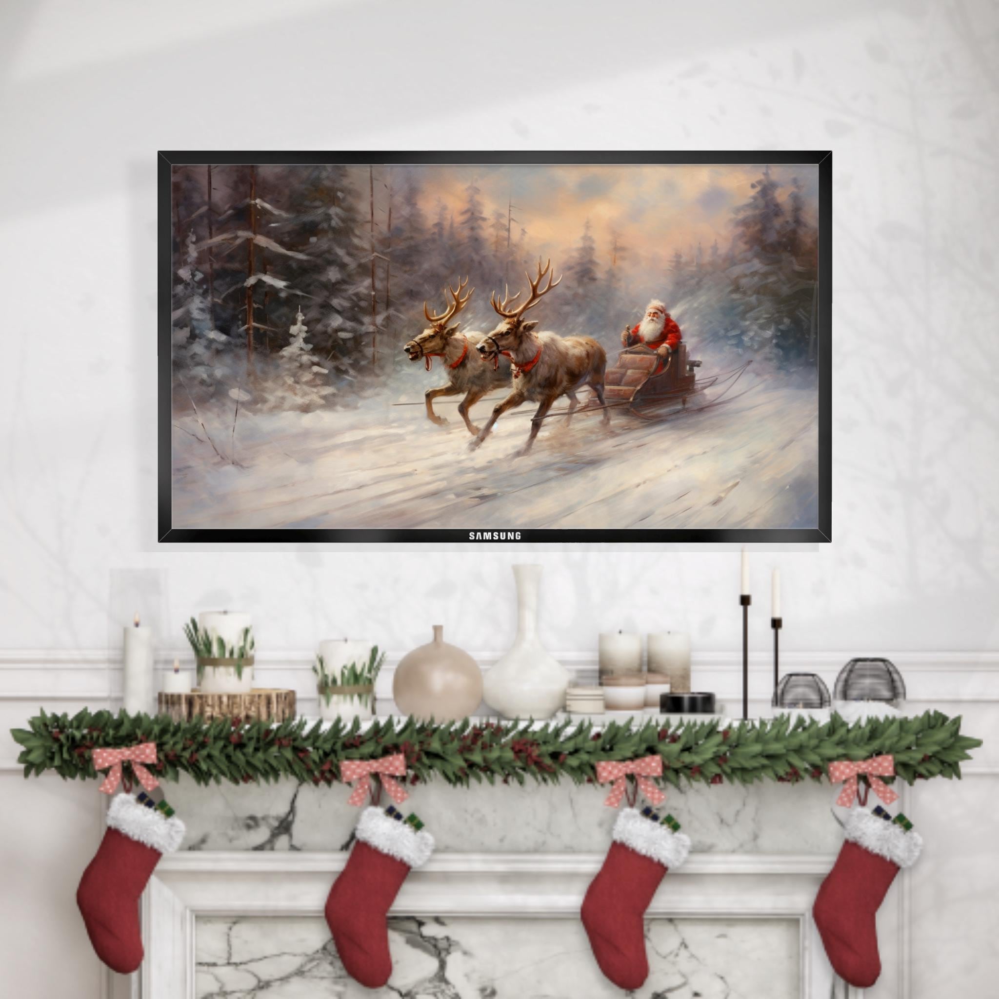 Step into a serene winter wonderland with this beautifully crafted Christmas TV art featuring Santa and his reindeer on a snowy path. Designed specifically as a high-resolution digital download, this artwork transforms your Samsung Frame TV into a festive centerpiece that captures the magic of the season. Perfect for adding seasonal home decor charm, this piece fits any 16:9 ratio display with stunning clarity.