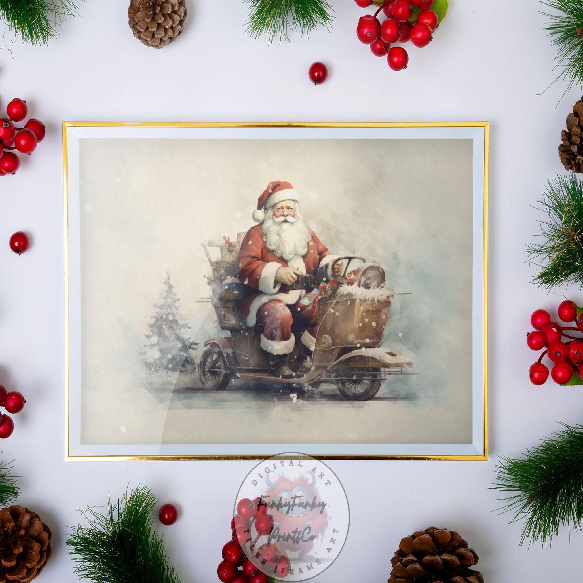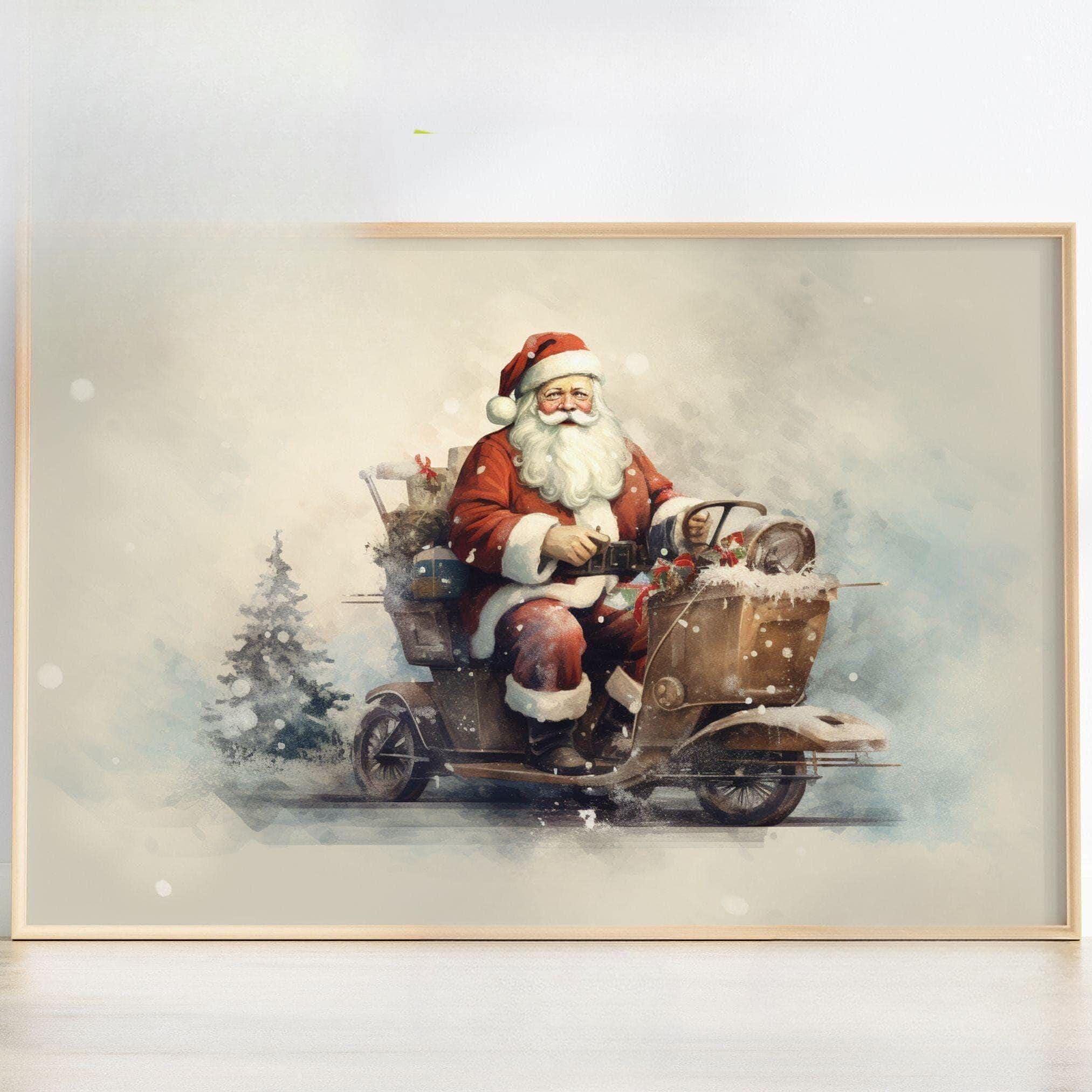 Add playful holiday energy to your space with this Santa on Scooter modern Christmas printable—retro mid-century flair, clean minimal styling, and cozy festive vibes for mantels, entryways, kitchen nooks, and gallery walls. Download, print, and style in minutes 🎄🛵