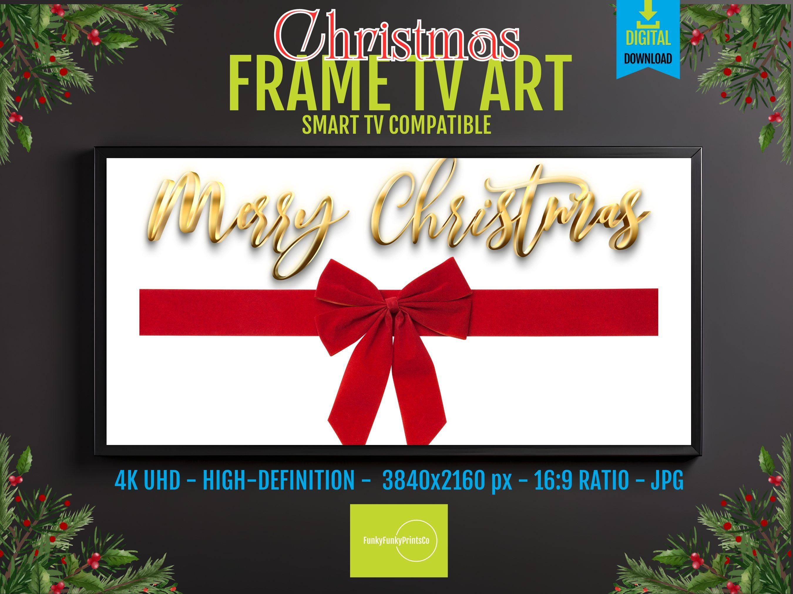 Celebrate the warmth of the holiday season with this charming farmhouse art featuring a big red bow, specially designed for your Samsung Frame TV. This 4K HD digital download transforms your screen into a festive centerpiece, blending rustic Christmas art with modern technology for a cozy holiday ambiance. Whether you're updating your seasonal digital art collection or looking for a unique holiday home display, this piece brings timeless farmhouse charm right to your living room.
