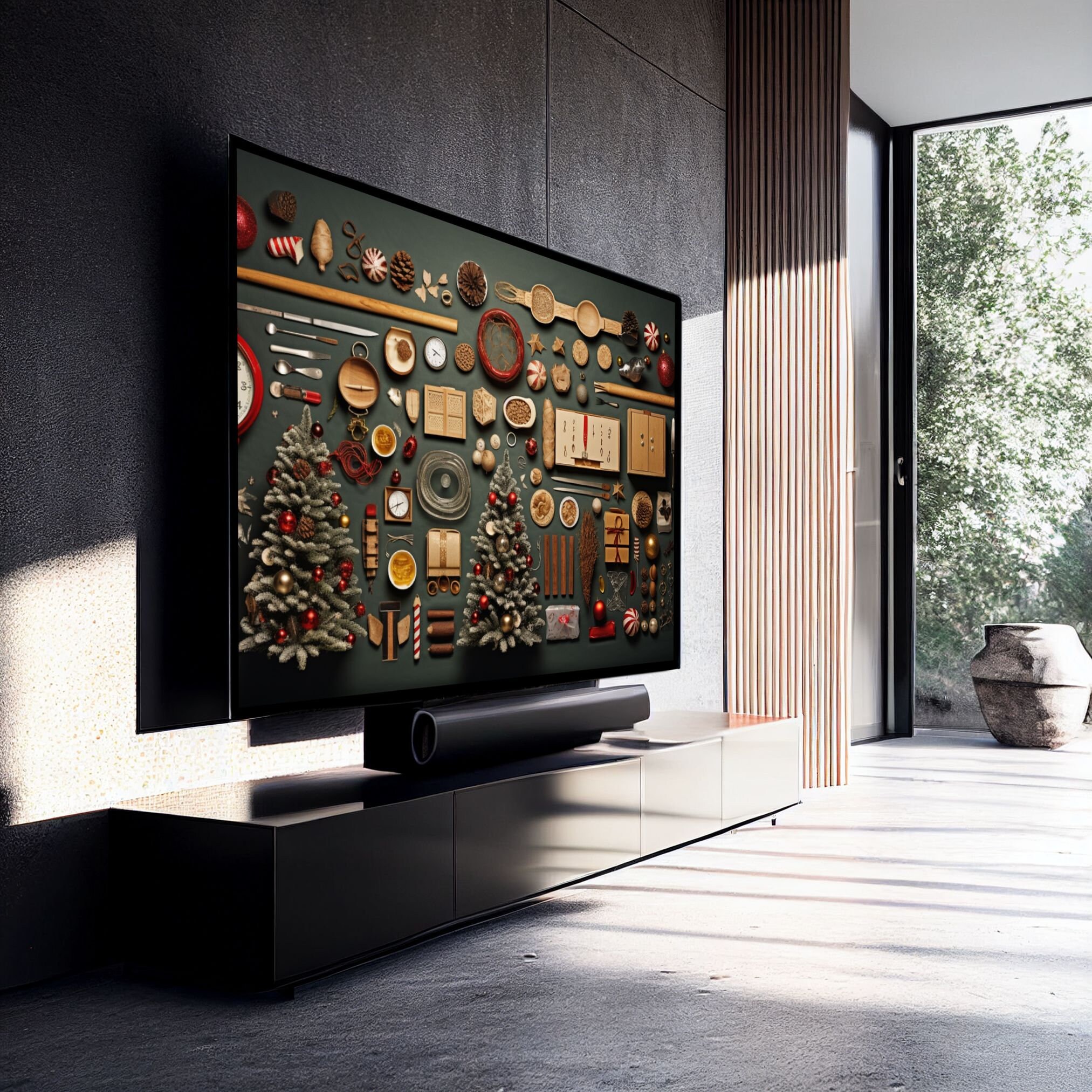 Transform your Samsung FRAME TV into a festive focal point with this high-resolution digital download featuring farmhouse Christmas decor in a unique knolling style. Perfect for adding a touch of holiday cheer to your home, this 4K HD artwork is designed to fit the 16:9 aspect ratio of your TV, ensuring a flawless display.