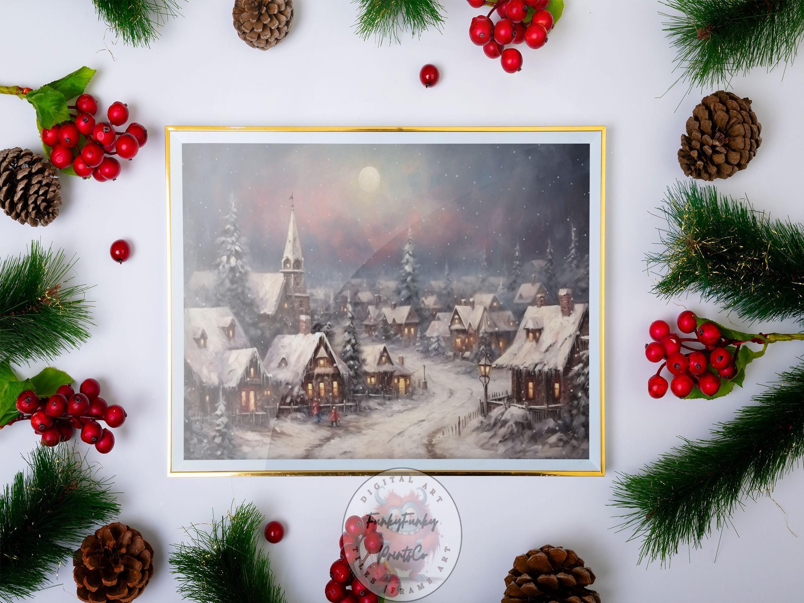 Create a warm, nostalgic focal point with this Christmas Village printable—an inviting snowy town with glowing windows and painterly vintage charm. Perfect for mantels, kitchen nooks, entryways, and festive gallery walls. Download, print, and style in minutes ✨