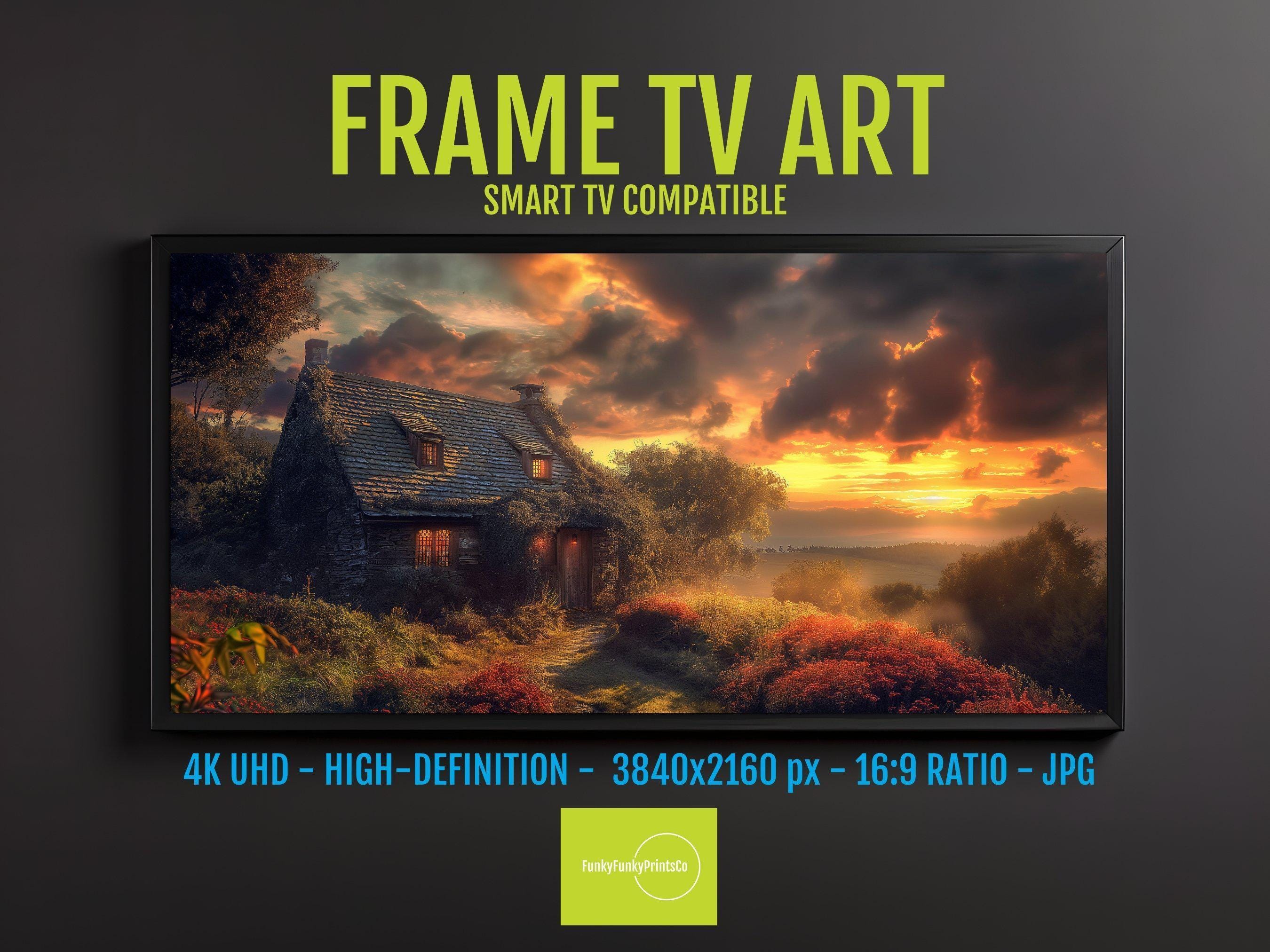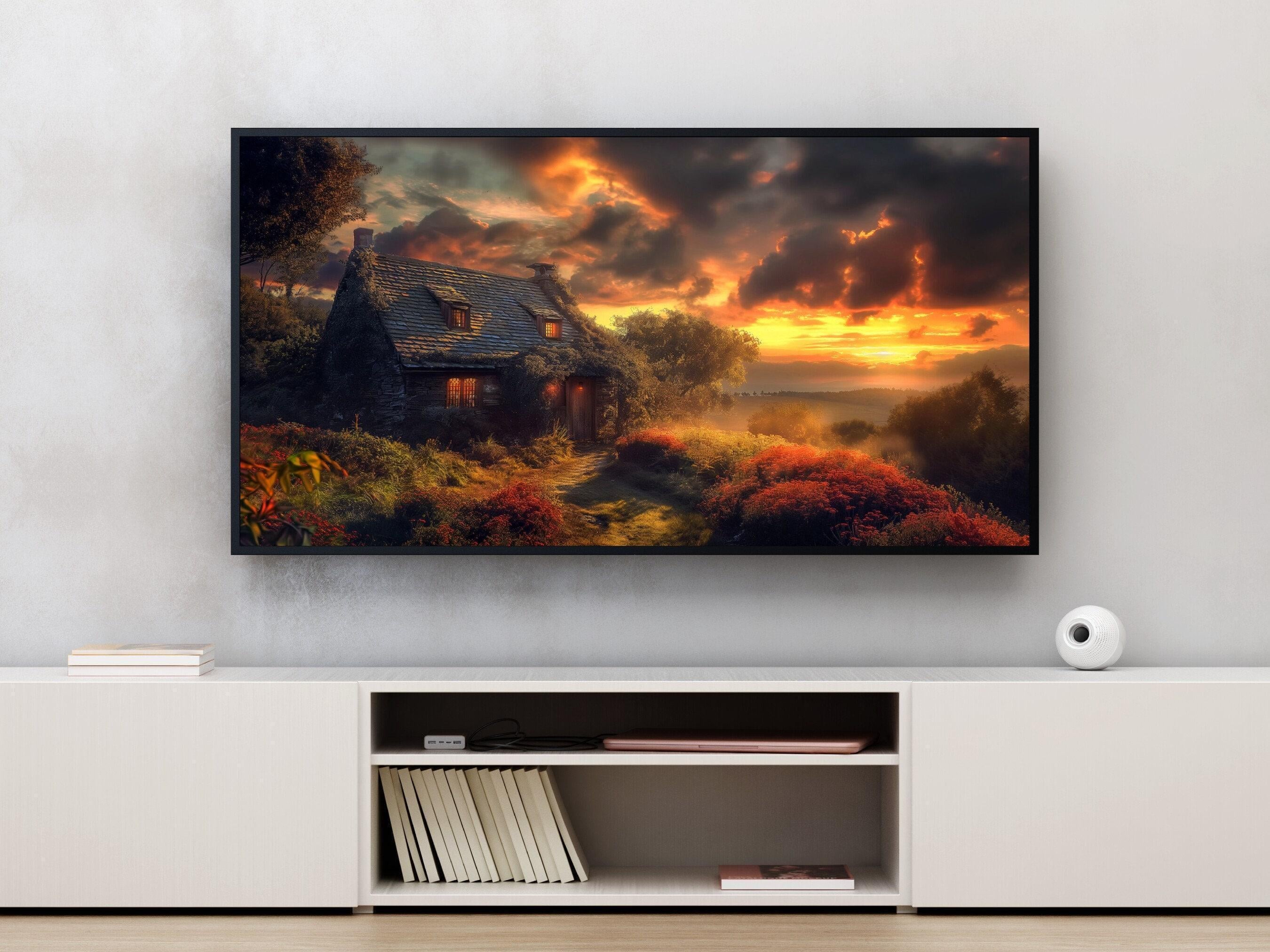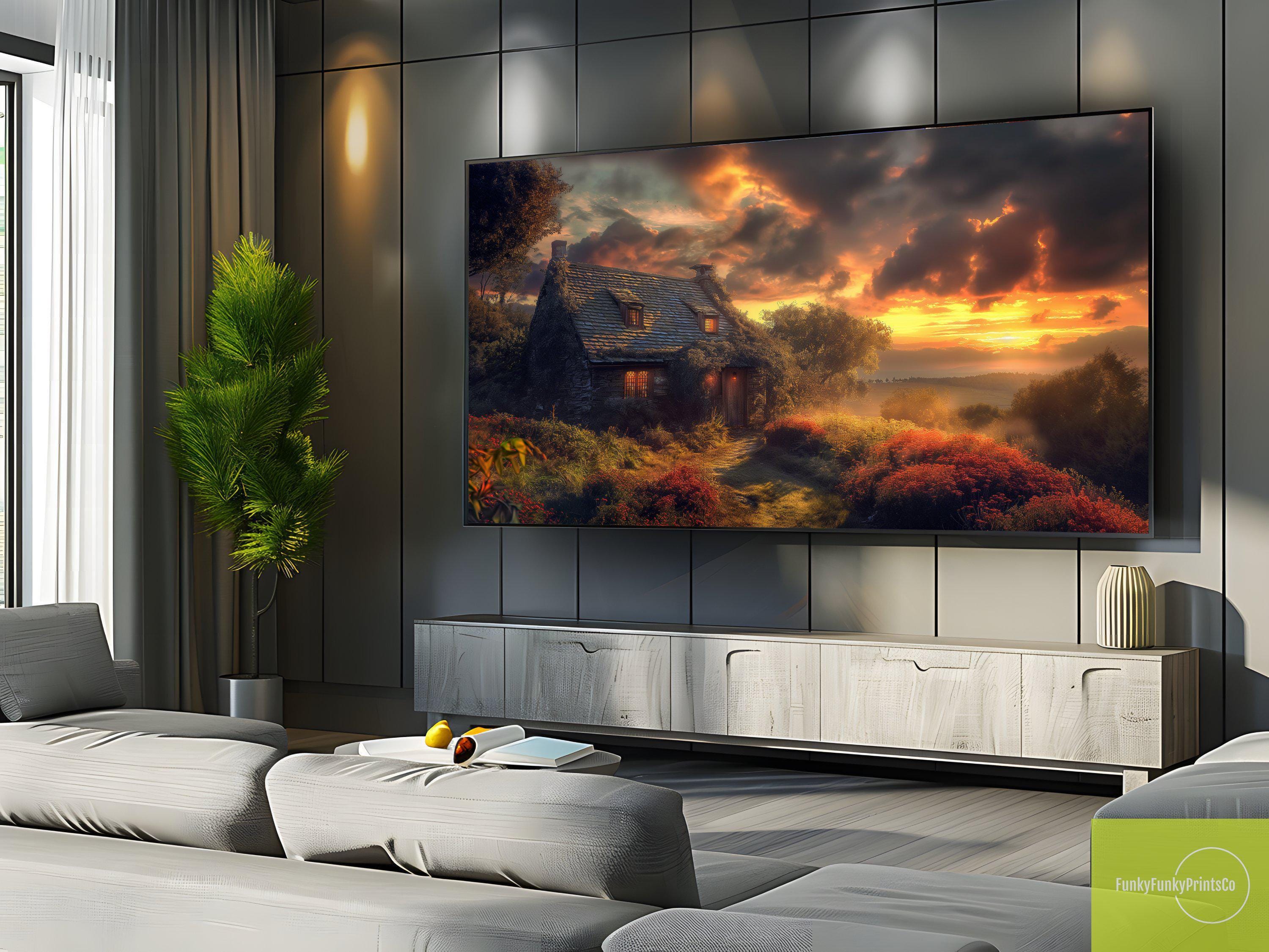 This Moody Cottage Frame TV Art evokes the charm of candlelight and the quiet beauty of a countryside evening. Ideal for Samsung Frame and HD TVs, it’s perfect for those who love rustic warmth and dark, moody tones.