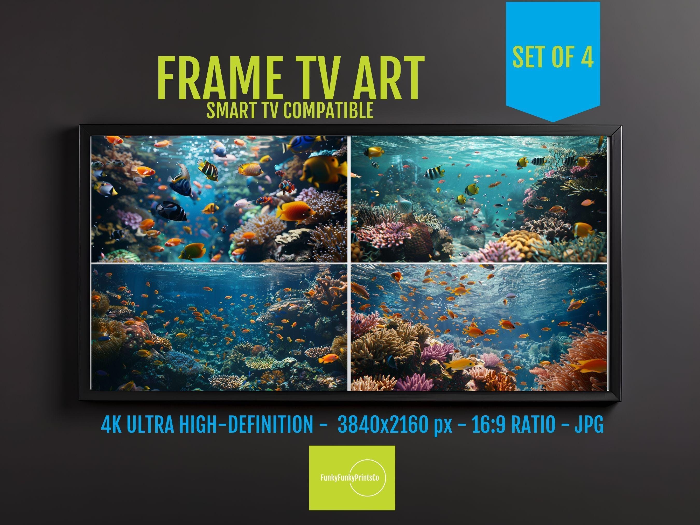 Dive into the mesmerizing world of undersea digital art with this Ocean Coral Reef collection, specially crafted for your Samsung Frame TV. Featuring vibrant marine life prints and colorful reef images, these 4K UHD ocean prints bring the serene beauty of tropical reef scenes right into your living room decor. Each piece captures the intricate details and calming hues of coral formations, making it a perfect choice for anyone seeking authentic seascape TV art.