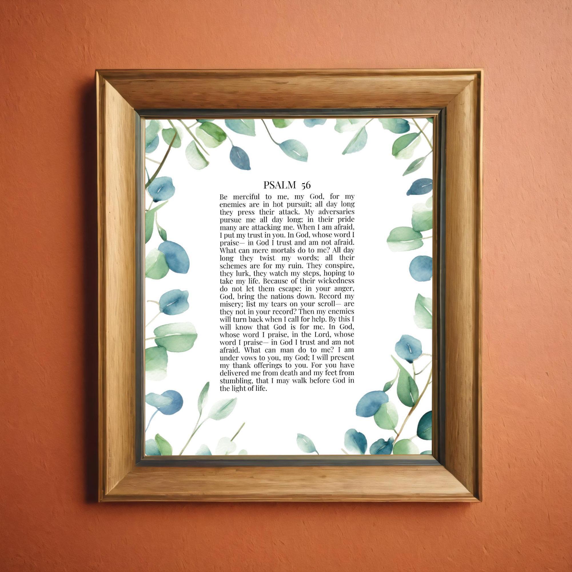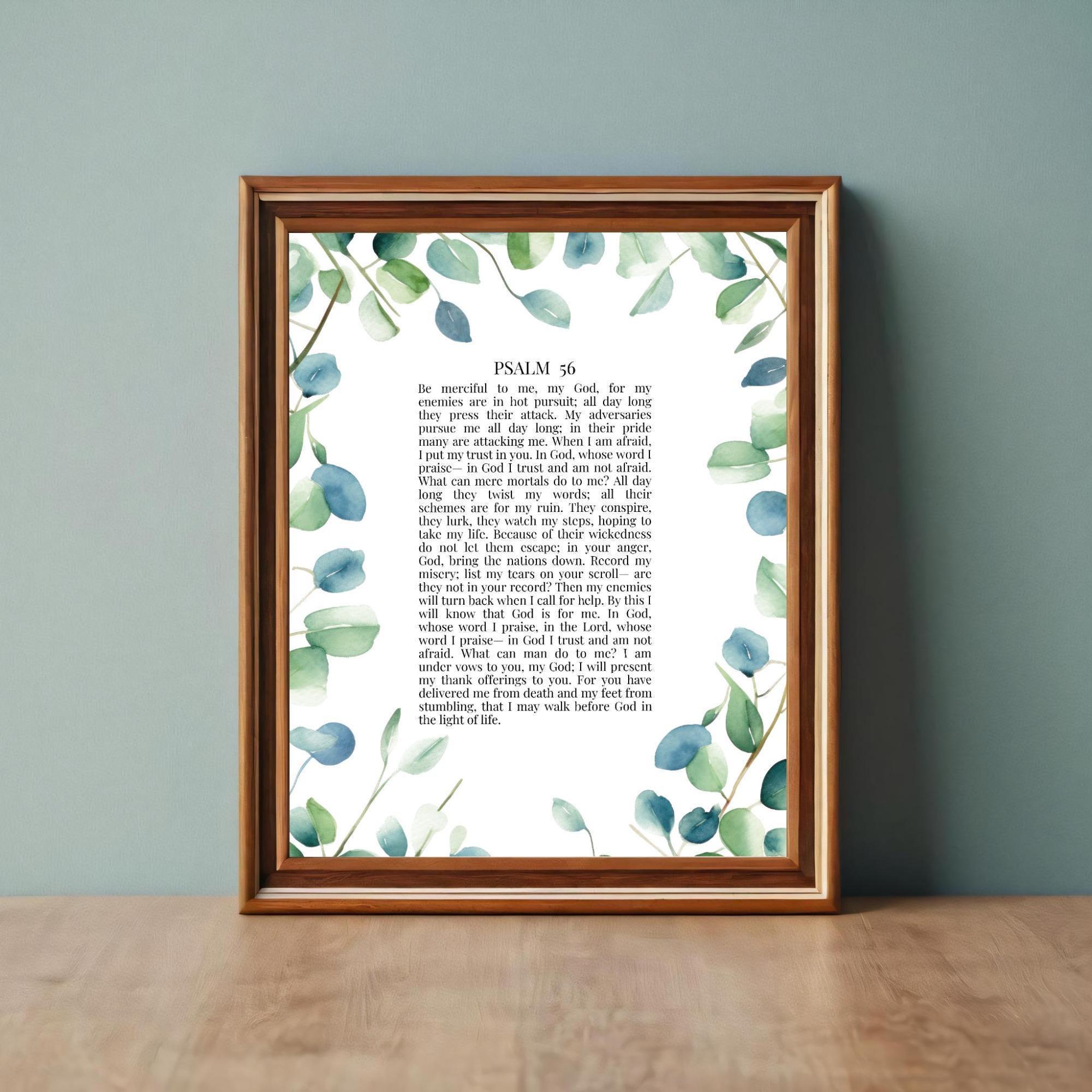 Discover the serene beauty of faith with this Psalm 56 bible verse print, thoughtfully designed to blend inspirational religious wall art with elegant green floral decor. This digital download art brings a fresh touch of nature and scripture into your home, perfect for anyone seeking a meaningful faith decor print. Crafted to inspire, the floral scripture art and green floral border create a peaceful atmosphere that complements both modern and classic interiors.