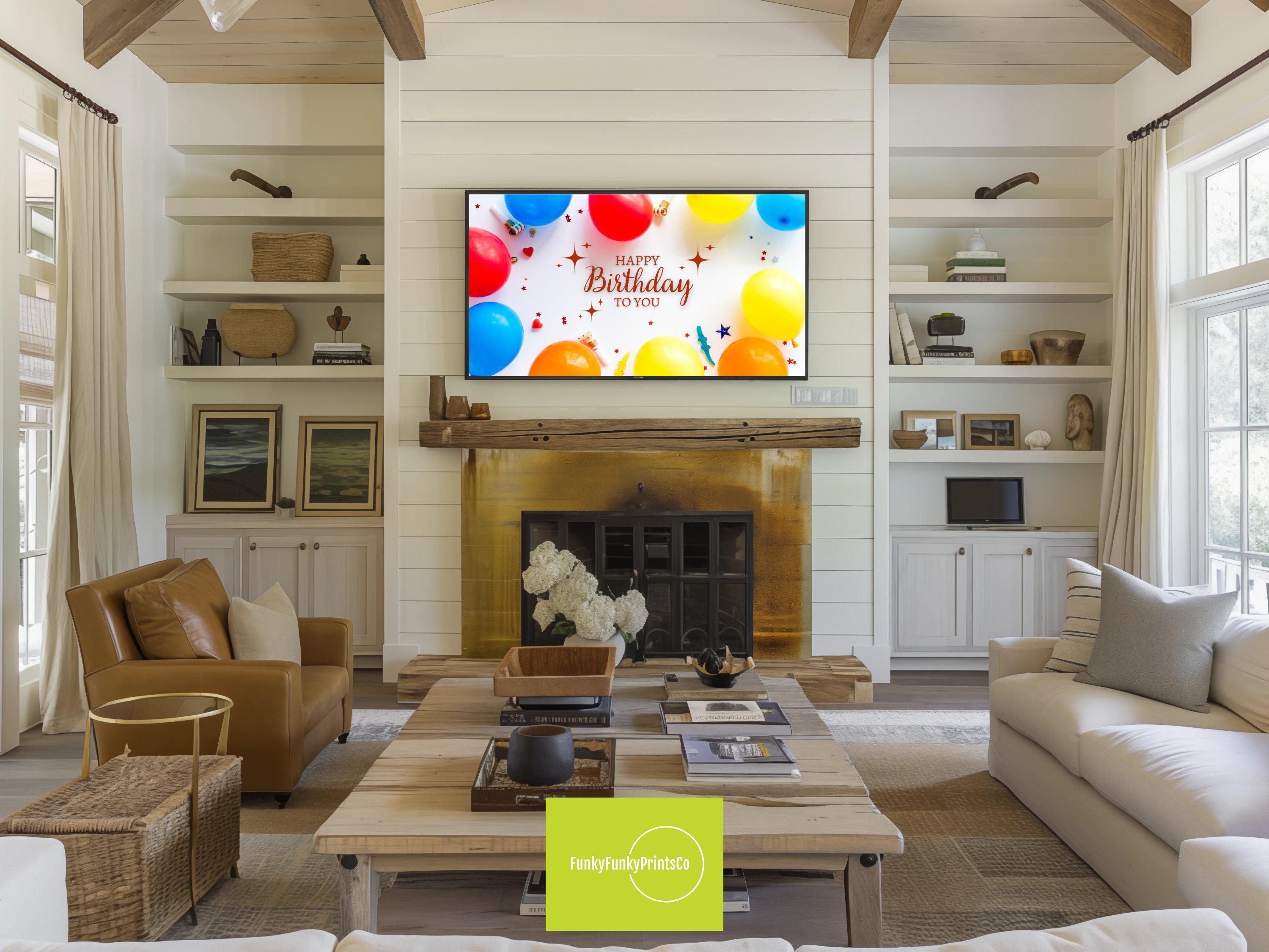 Celebrate your special day with a burst of color and joy using this vibrant birthday balloon TV art, designed specifically for Samsung Frame Party displays. This 4K digital download transforms your screen into a lively centerpiece, perfect for adding playful balloon art that instantly elevates any event frame wall art. Whether you're hosting a festive gathering or looking for unique Samsung decor, this colorful event decor brings cheerful energy to your celebration.
