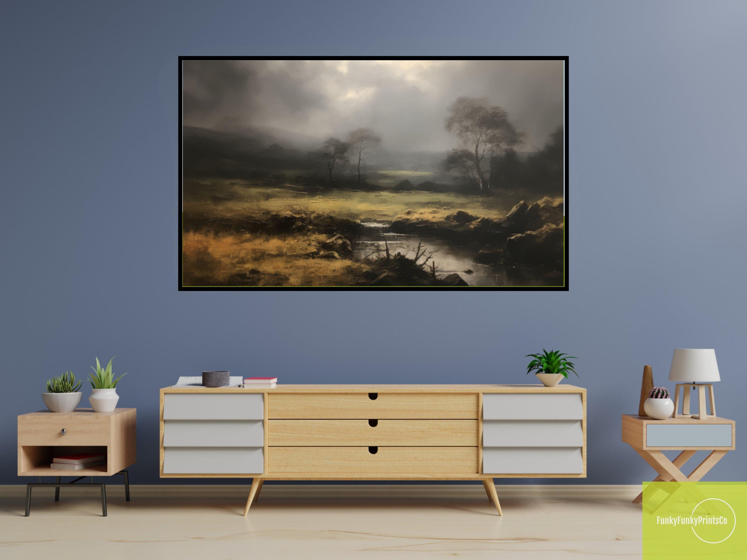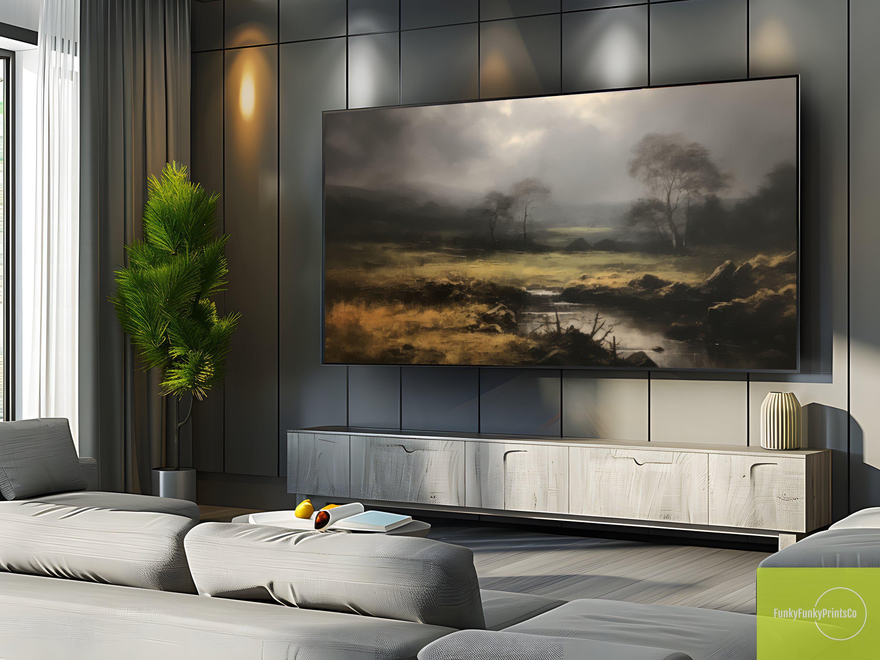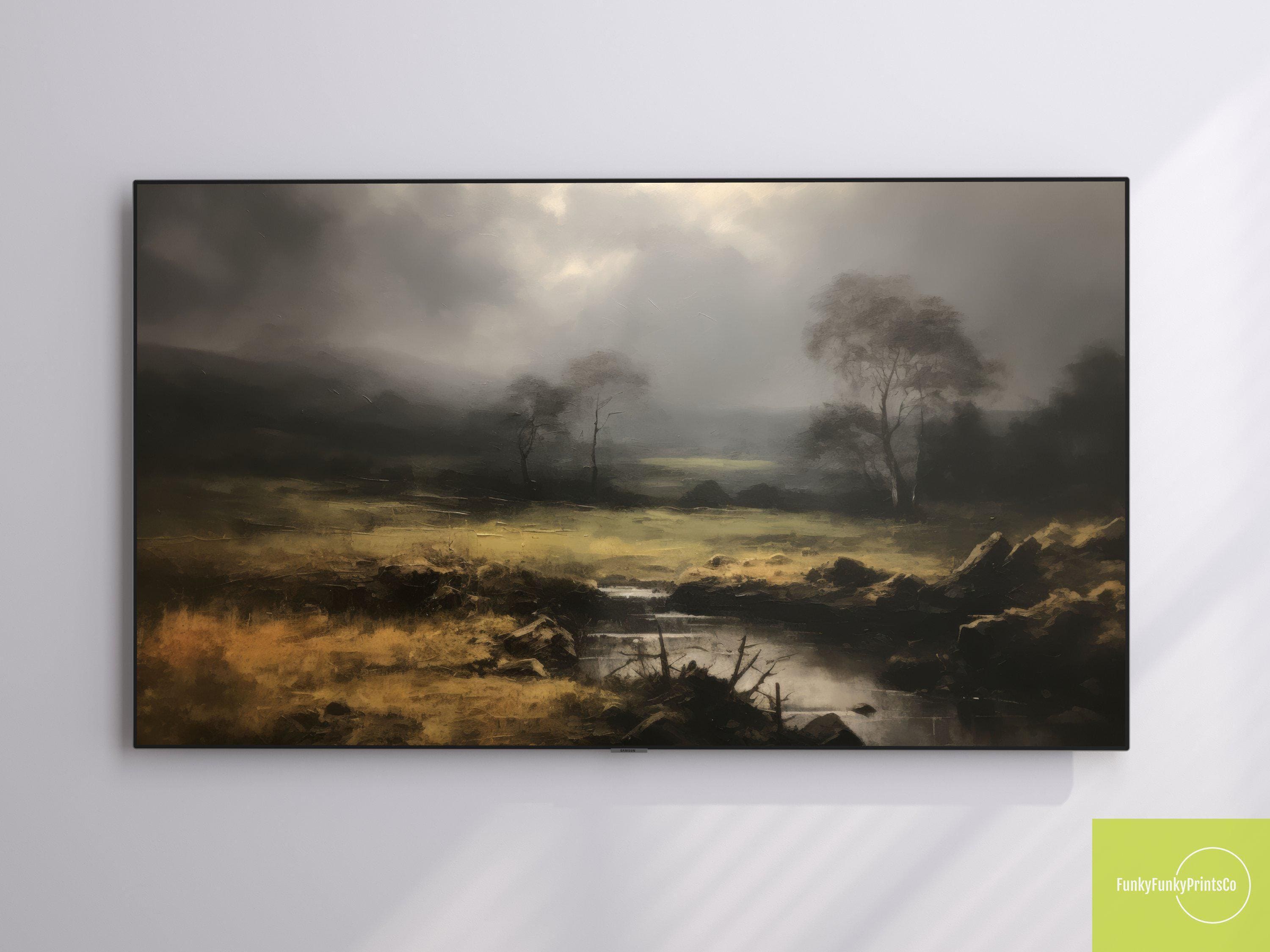 Transform your Samsung Frame TV into a captivating centerpiece with this moody vintage landscape painting, designed to bring a touch of dark farmhouse art elegance to your space. Inspired by the timeless charm of rustic settings, this digital download blends abstract wall art with modern rustic decor for a unique visual experience. Perfect for lovers of vintage moody style, it adds depth and character to any room with its rich, atmospheric tones.