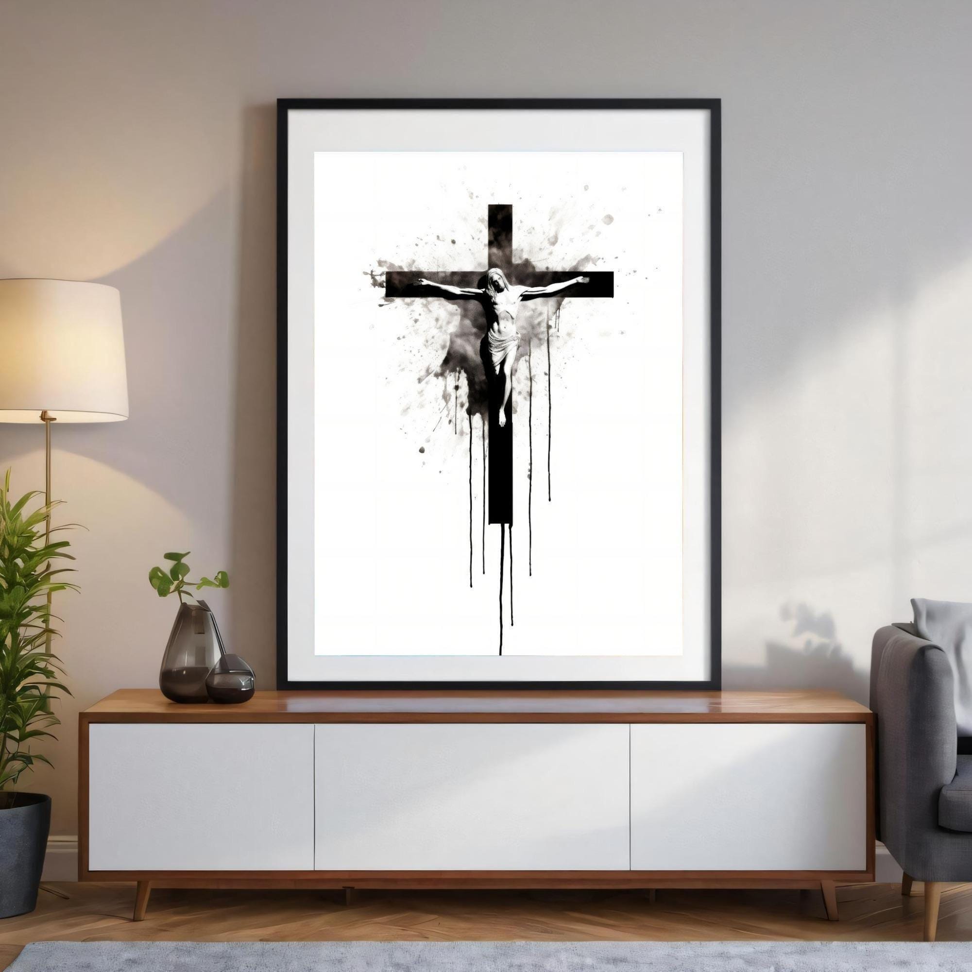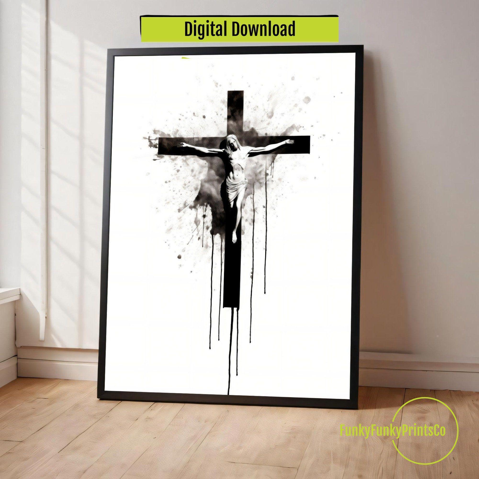 Discover a timeless expression of faith with this striking black and white art featuring Jesus on the cross. This printable wall art captures a powerful moment of devotion, perfect for anyone seeking meaningful Christian theme decor to inspire their space. Designed as a digital download, this faith-based decor brings spiritual wall art and bible verse art into your home effortlessly, enhancing any room with quiet reverence.