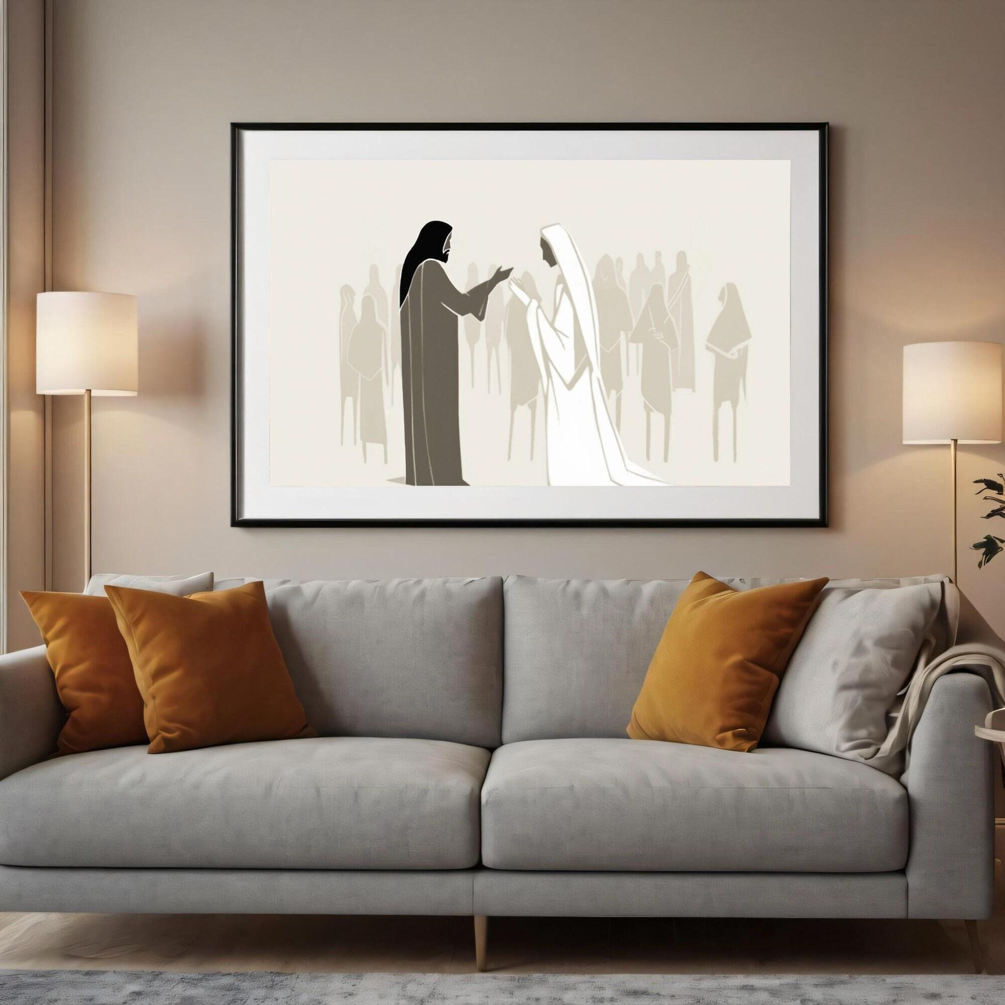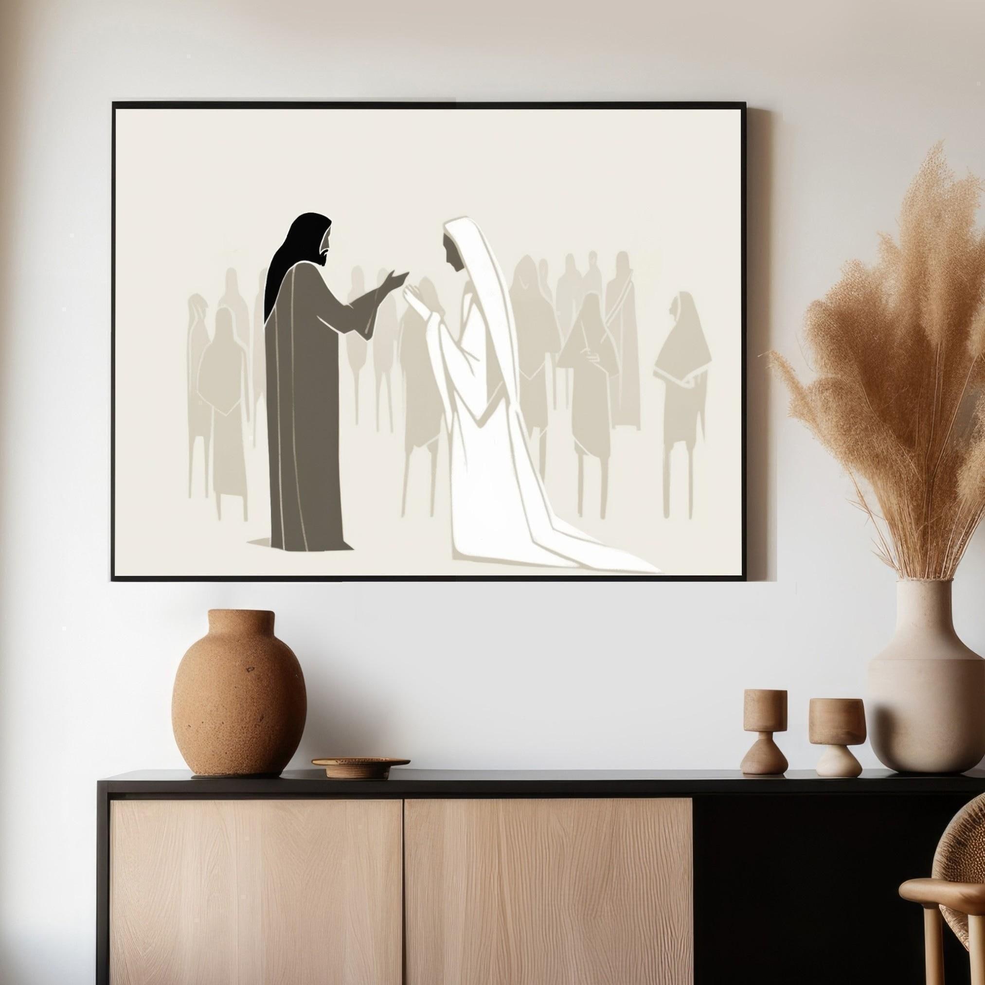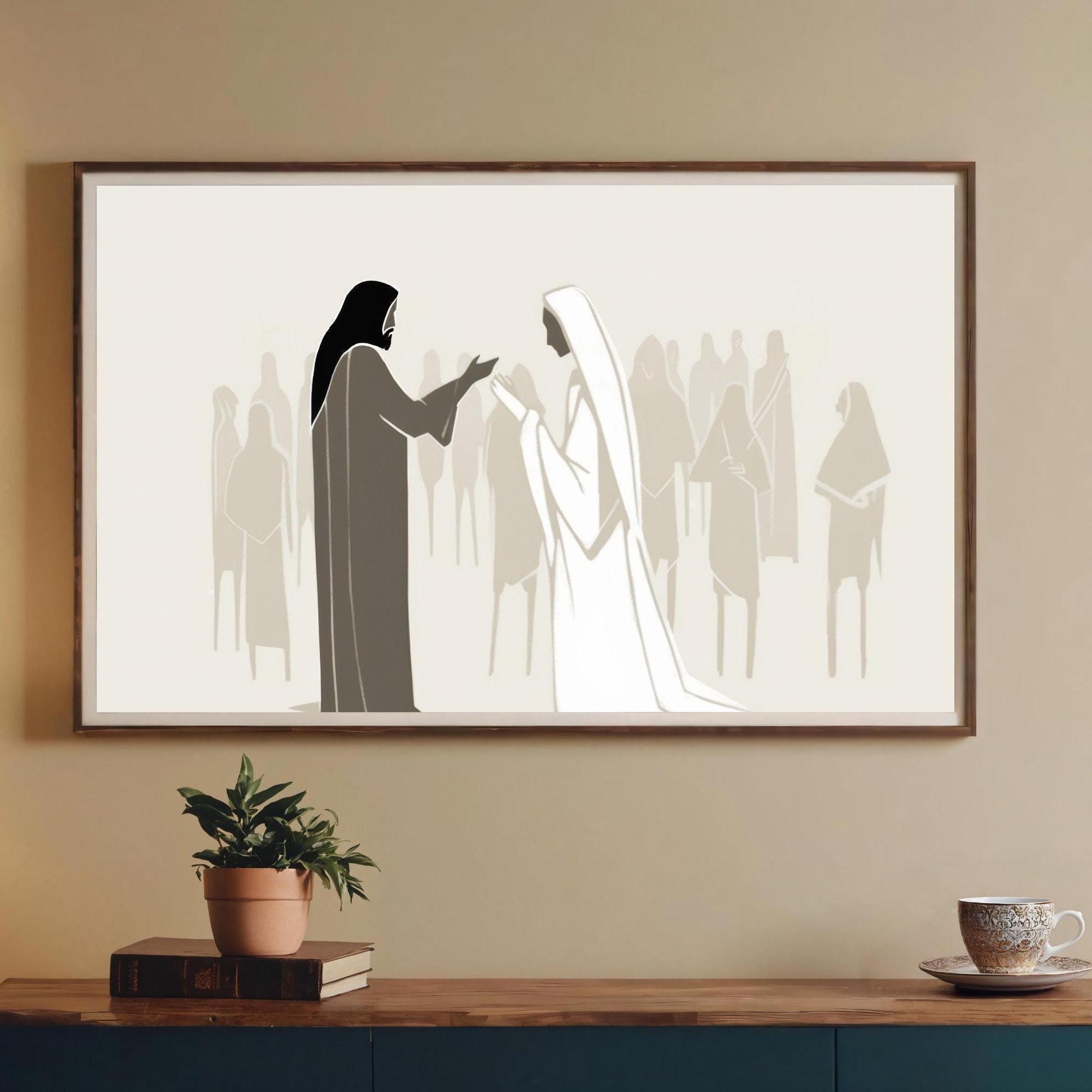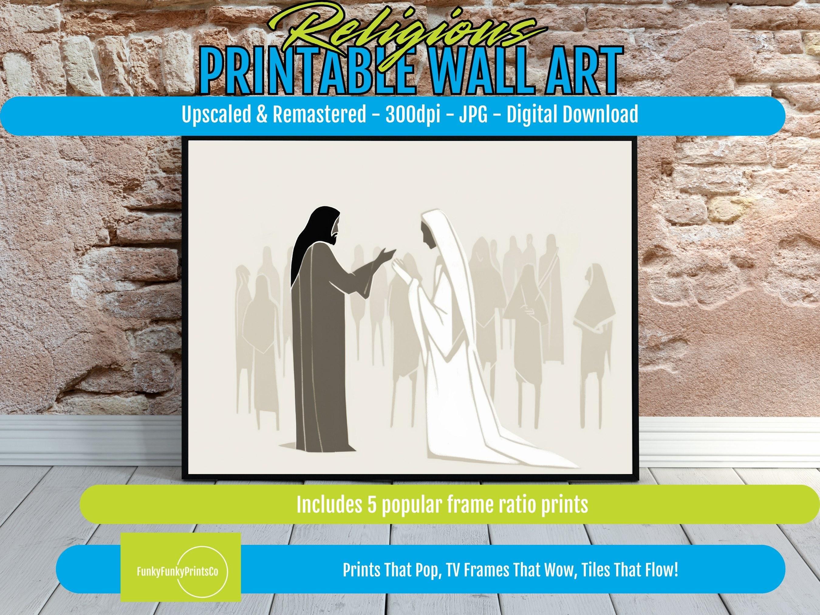 Experience a moment of grace with this captivating jesus art print that beautifully portrays a woman touching Jesus, evoking a deep sense of faith and connection. This modern christian art piece seamlessly blends spiritual inspiration with elegant design, making it an ideal addition to your christian home decor. Crafted as a divine printable art, it offers a sacred wall print that brings holy wall decoration into any space seeking comfort and reverence.