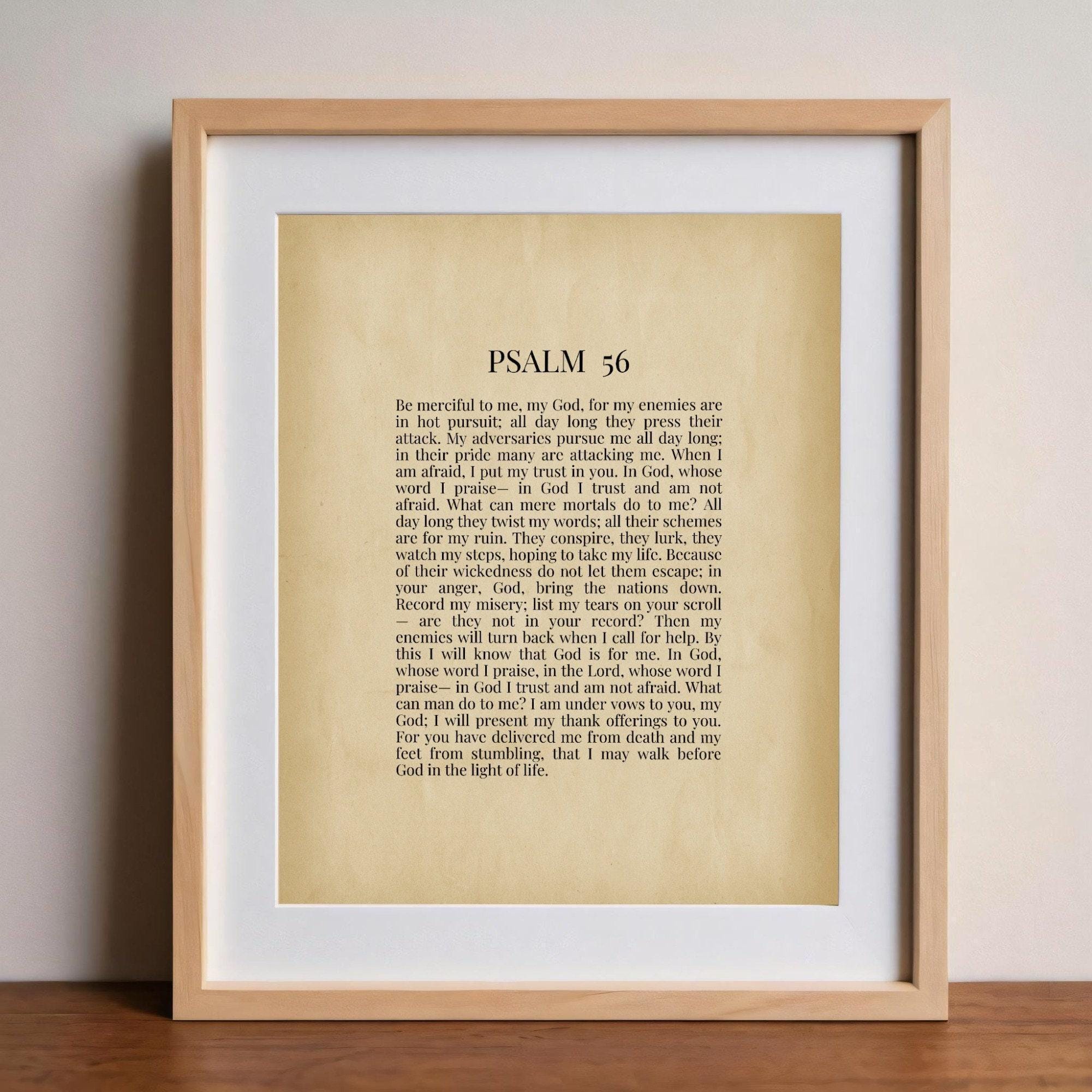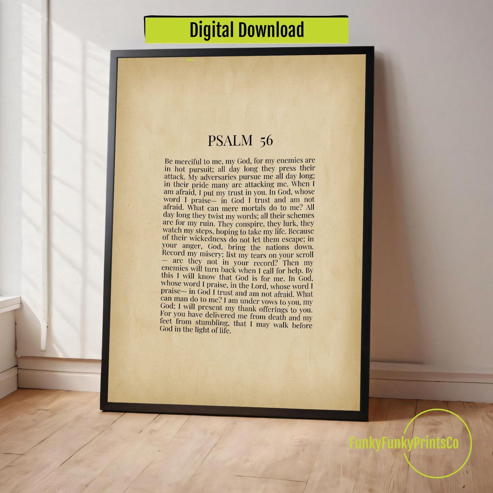 Bring a touch of timeless inspiration into your home with this vintage Psalm 56 printable wall art, thoughtfully designed to blend faith-based decor with classic vintage style. This digital download captures the comforting scripture in a way that resonates deeply, making it an ideal piece of scripture art for any room seeking spiritual decor. Perfect for those who cherish biblical wall art, it offers a meaningful reminder to trust in Godโs care every day.