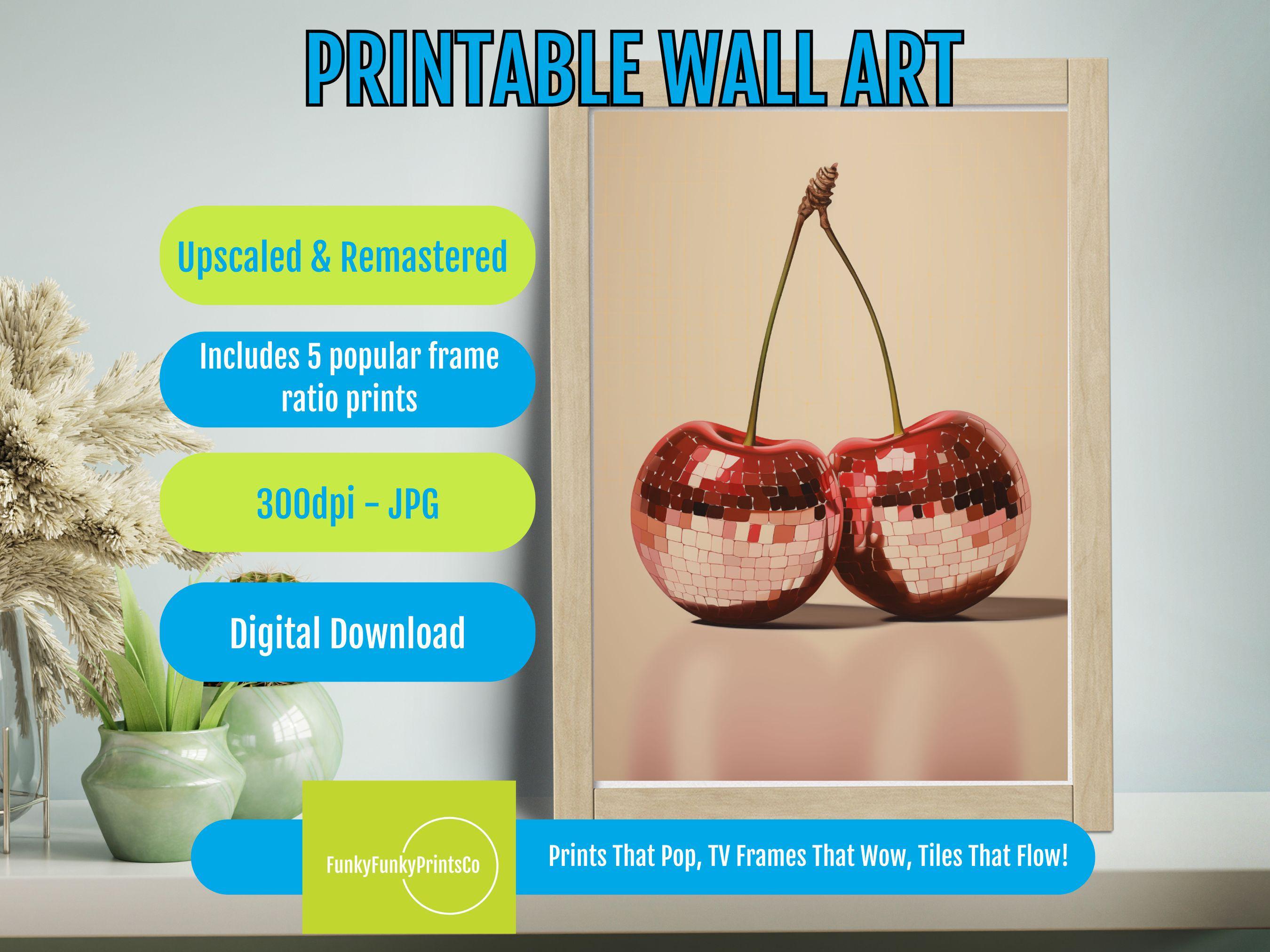 Turn up the energy with this bold red disco ball abstract—a high-impact statement piece that blends retro nightlife vibes with modern geometric flair. This printable wall art adds luminous color, motion, and glossy depth to living rooms, studios, offices, and gallery walls.