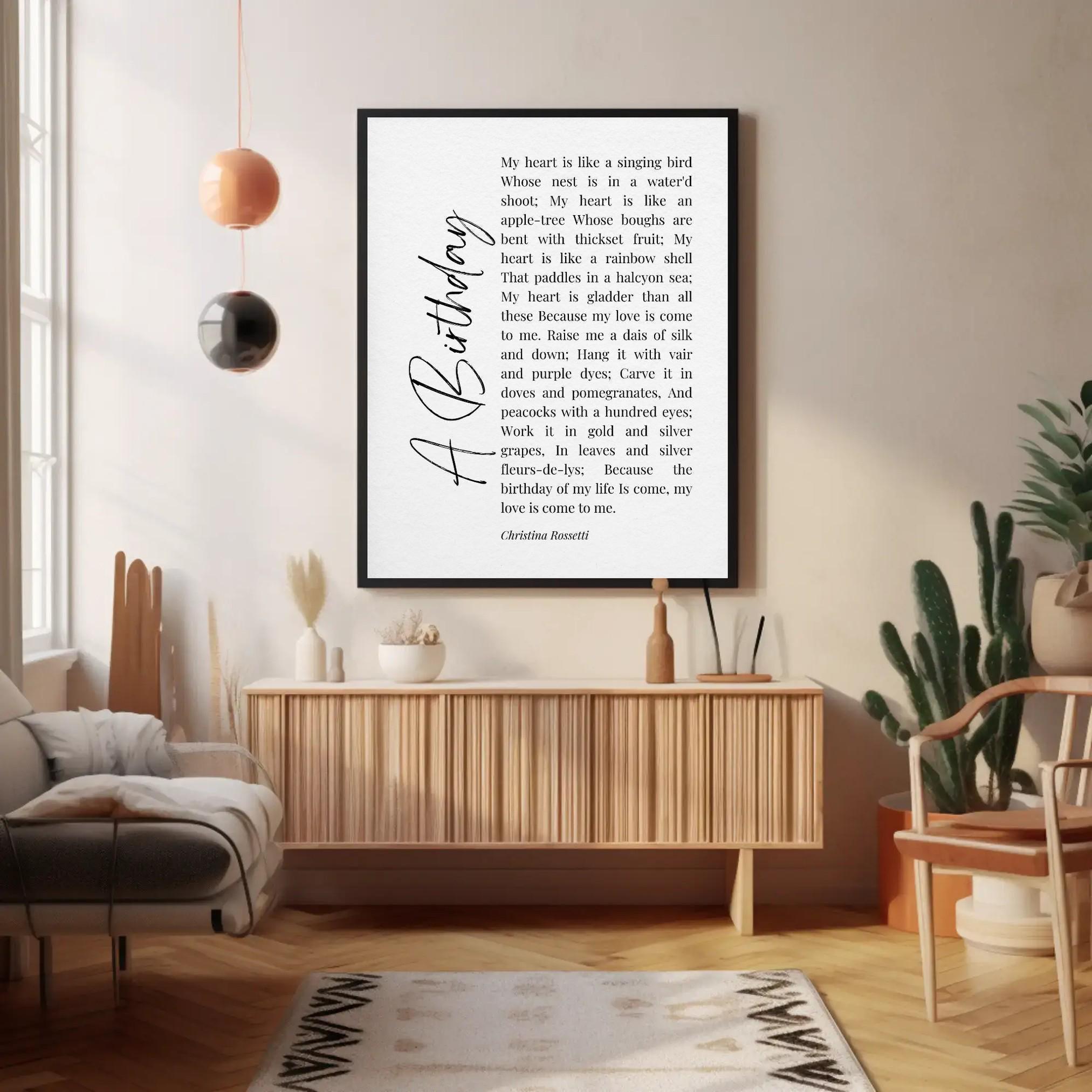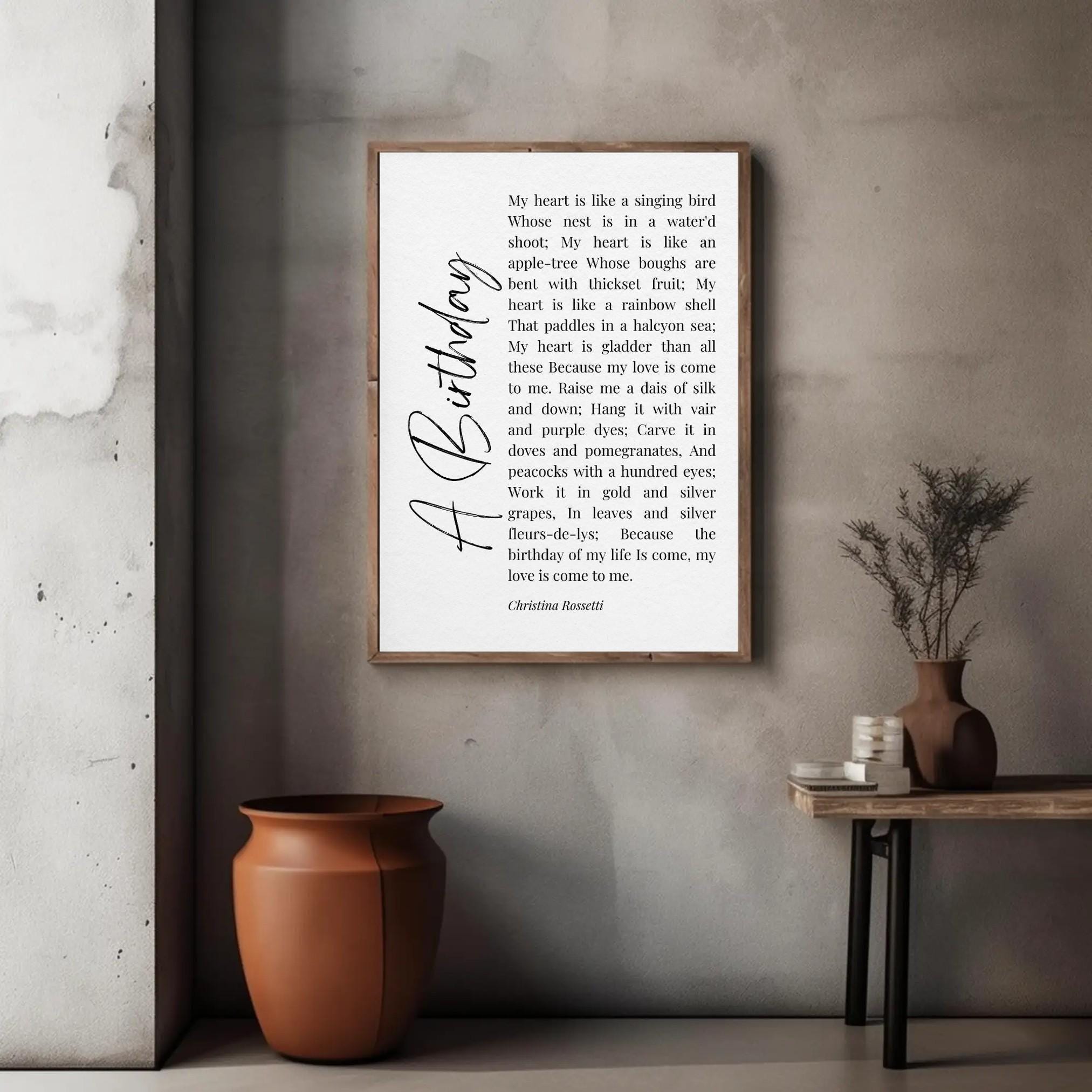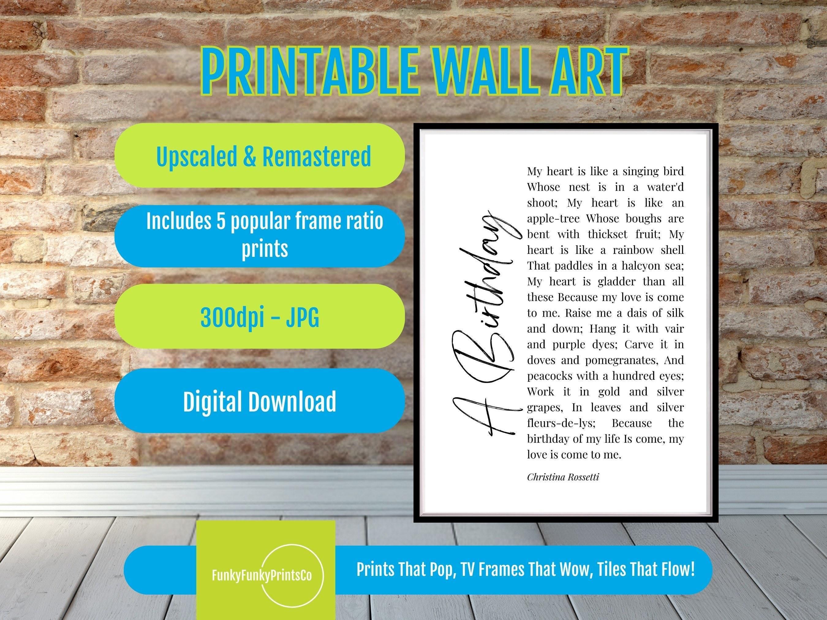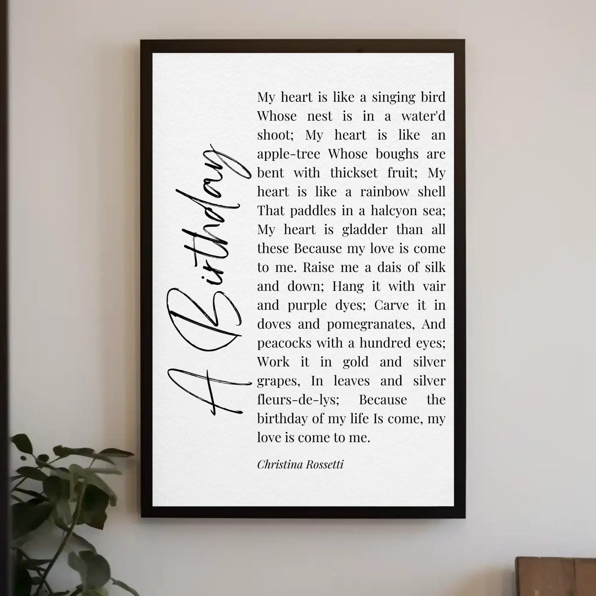 Discover the delicate charm of vintage poem art with this romantic poem print inspired by Christina Rossetti's heartfelt verses and the enchanting Heart Singing Bird. Designed for poetry lovers and those who appreciate love quote decor, this digital download brings timeless literary elegance to any room. Whether for your home or as a thoughtful poetry lover gift, this piece transforms walls into spaces of quiet inspiration.