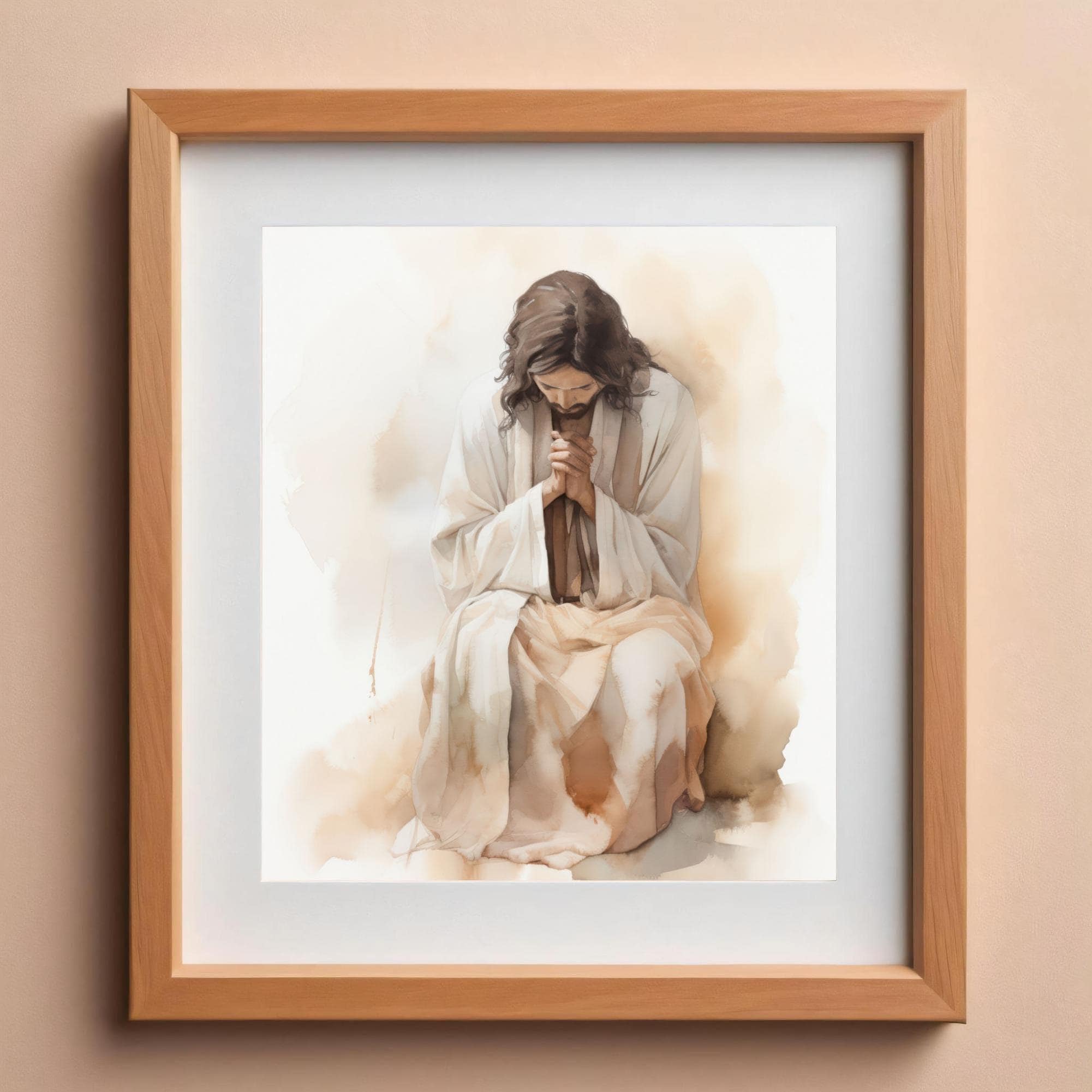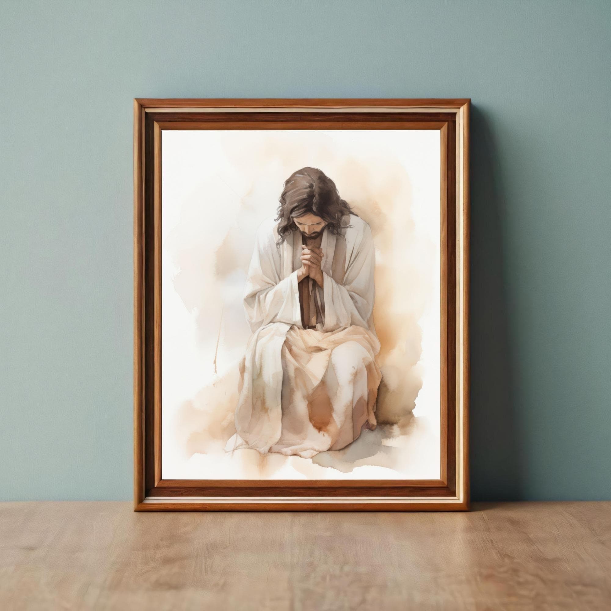 Discover a serene moment captured in our Jesus praying wall art, a beautiful piece of Christian wall decor designed to inspire and uplift your space. This printable wall art blends modern religious art with heartfelt faith, making it a perfect addition to any room seeking spiritual wall art or a faith based print. Crafted with vibrant colors and thoughtful detail, this digital download art brings a sense of peace and devotion to your home or office.