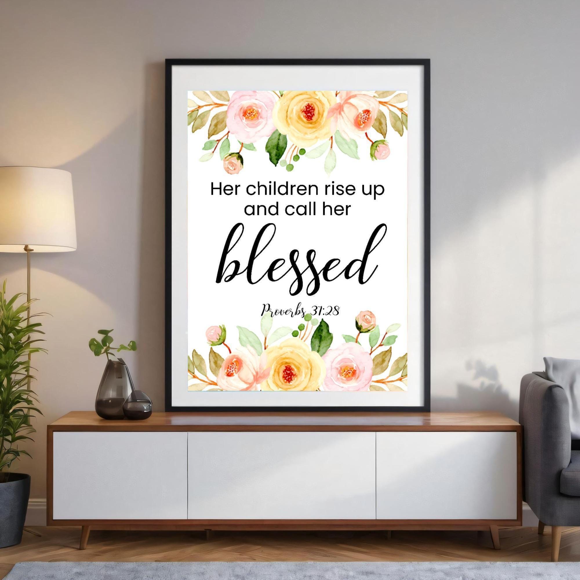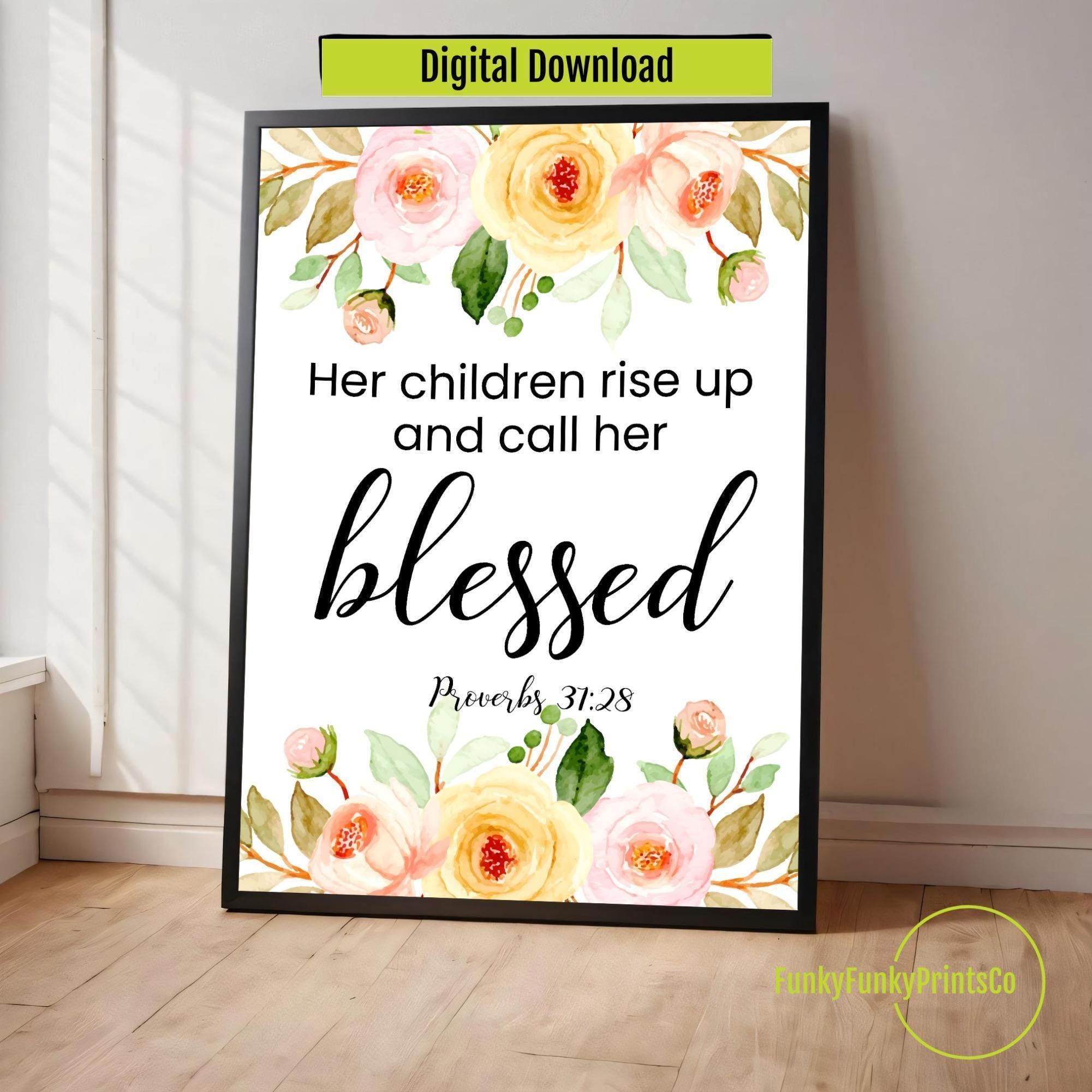Celebrate the inspiring journey of motherhood with this beautifully crafted printable decor, featuring a heartfelt inspirational quote surrounded by delicate watercolor flowers. Designed to uplift and honor every mother, this motherhood print blends soft pastel wall art with a timeless Proverbs 31 art style. Perfect as a thoughtful gift for mom or a serene addition to your home, this digital download brings blessings and beauty to any space.