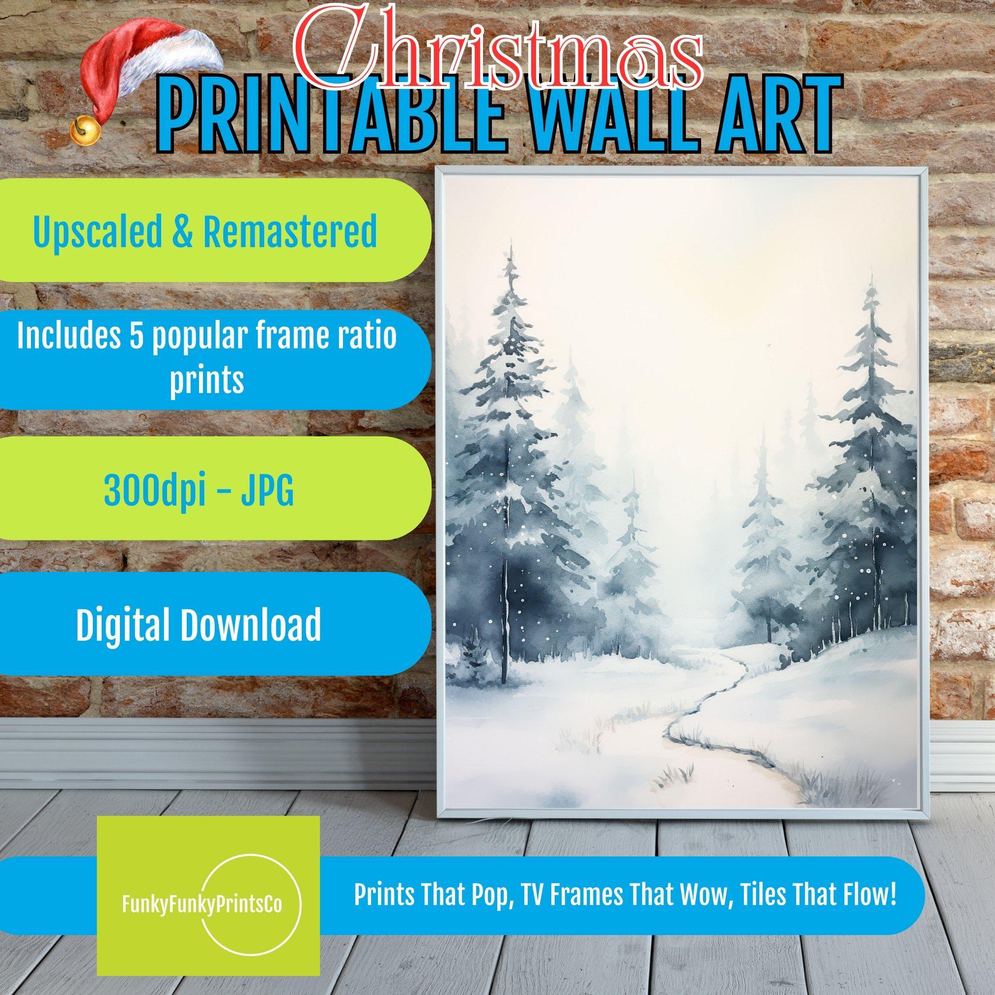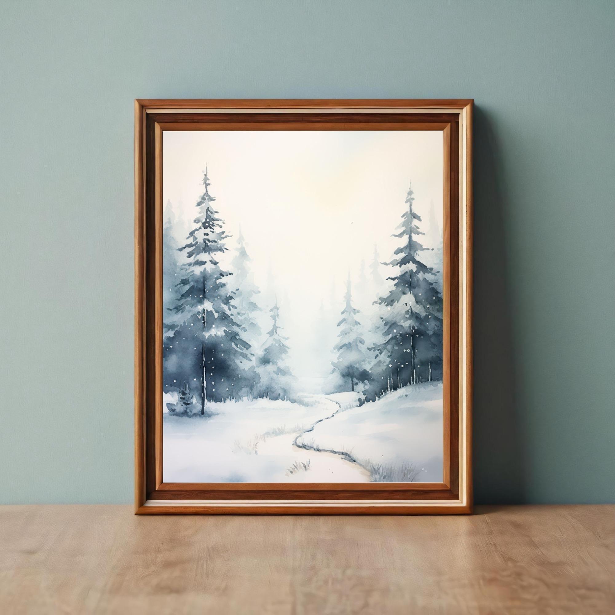 Transform your space with this stunning winter forest art print, perfect for cozy home decor, seasonal wall art, and holiday charm. This printable wall decor captures the serene beauty of nature, making it an ideal digital download for your home office or any room in need of a touch of winter scenery. Elevate your decor with this versatile forest landscape art, designed to bring warmth, tranquility, and a festive holiday ambiance to your living environment.
