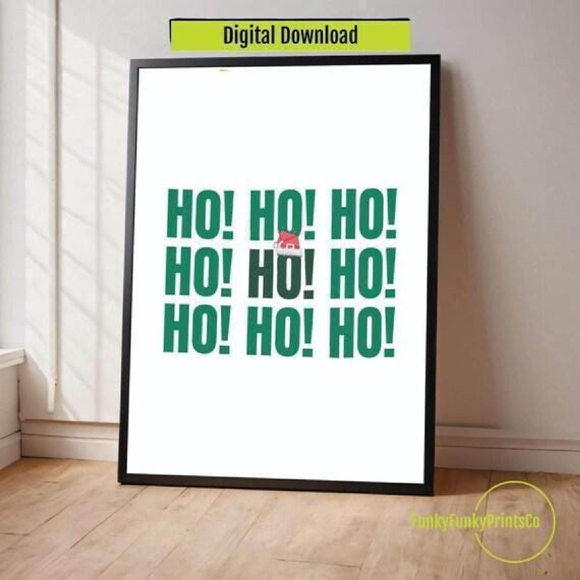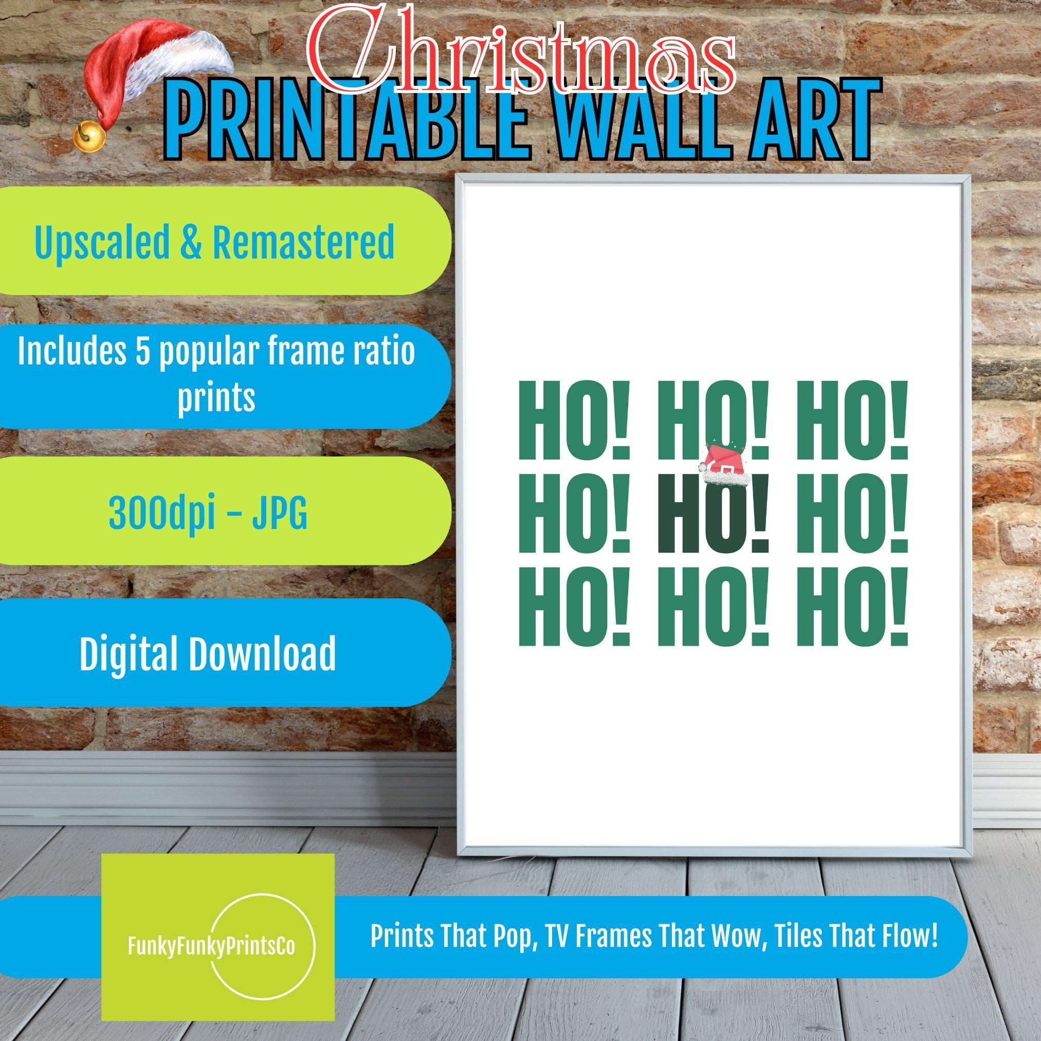 Christmas Wall Art - HO HO HO Printable Art, Digital Download Holiday Decor & Festive Xmas Gift for Home Decoration