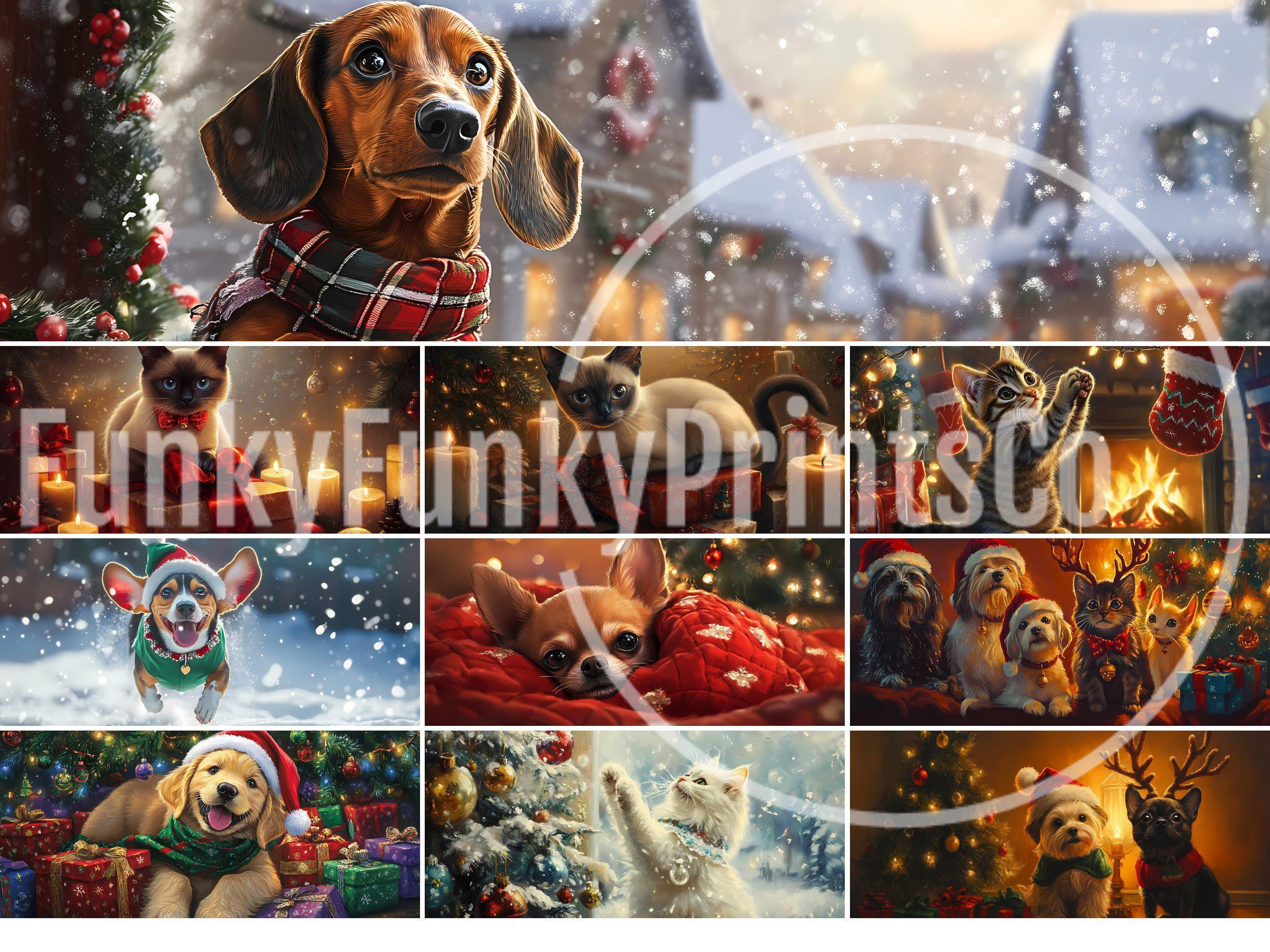 Each design brings the joy of dogs, cats, and cozy holiday scenes to your living room — perfect for pet lovers who want to fill their homes with Christmas cheer and warmth.