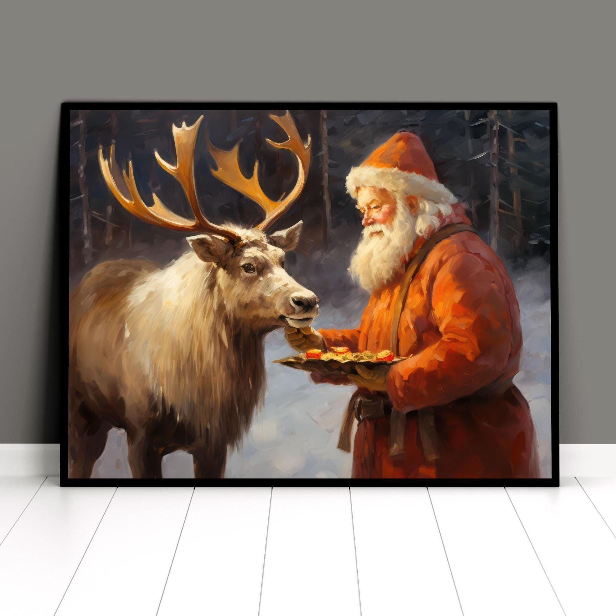 Bring warm, homespun charm to your space with this rustic holiday wall artโa cozy Santa and reindeer scene in vintage tones that glows on mantels, entryways, kitchen nooks, and festive gallery walls. Instant digital files make decorating easy and budget-friendly ๐