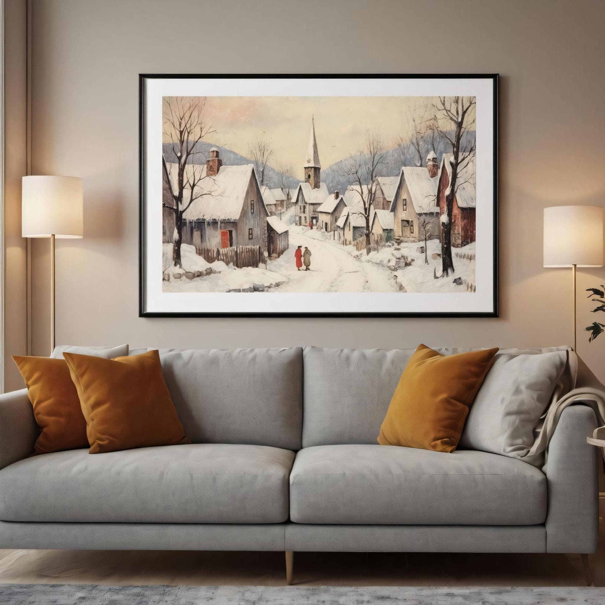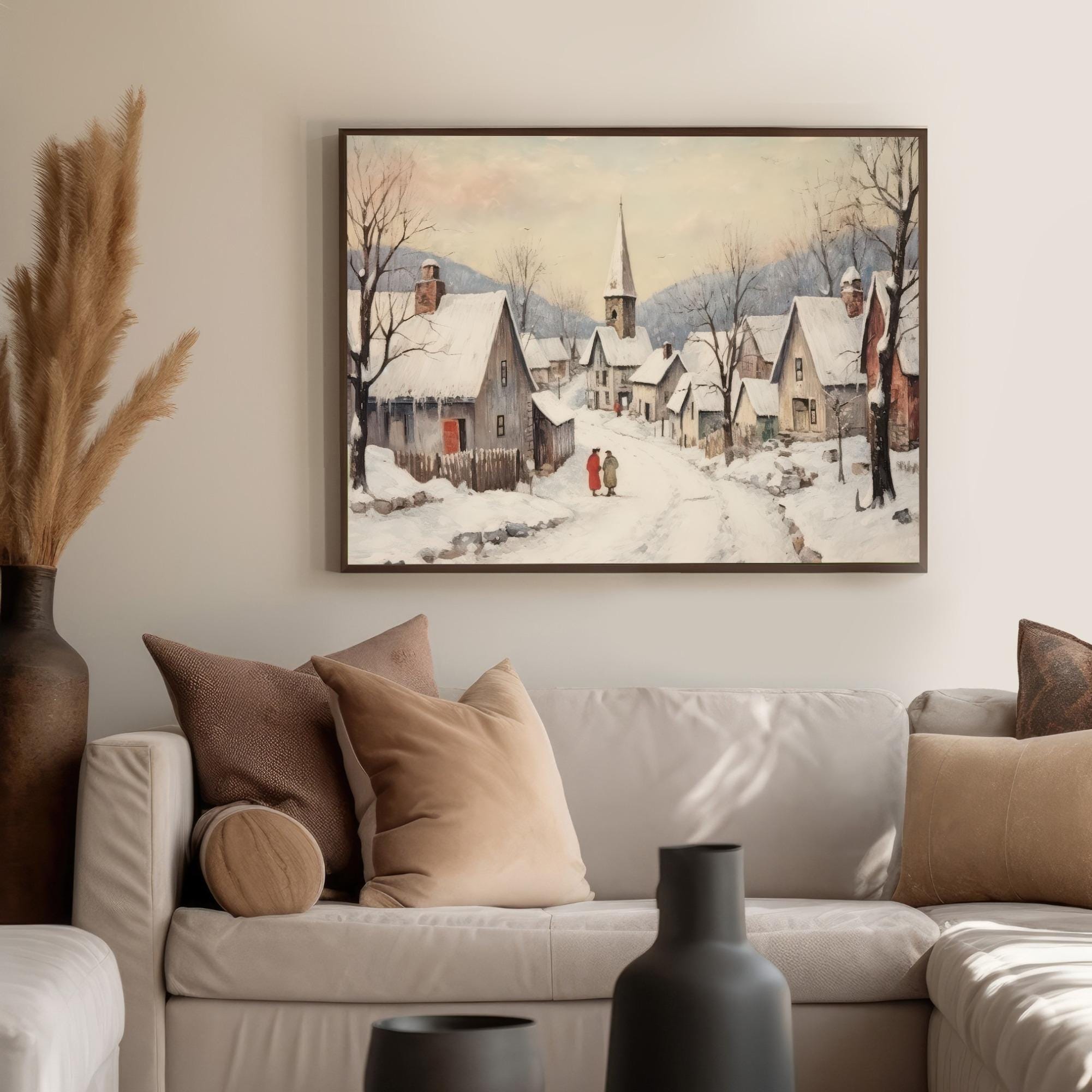 Imagine the delight of gathering with loved ones, surrounded by this exquisite artwork that perfectly captures the magic of the holidays. Each detail of the charming village will evoke treasured memories and inspire new traditions in your home. Splurge on yourself or surprise a loved one with this timeless decor pieceโyour walls will thank you! Don't wait to bring home this enchanting vintage Christmas piece; download now and start your holiday celebrations with a touch of nostalgia!