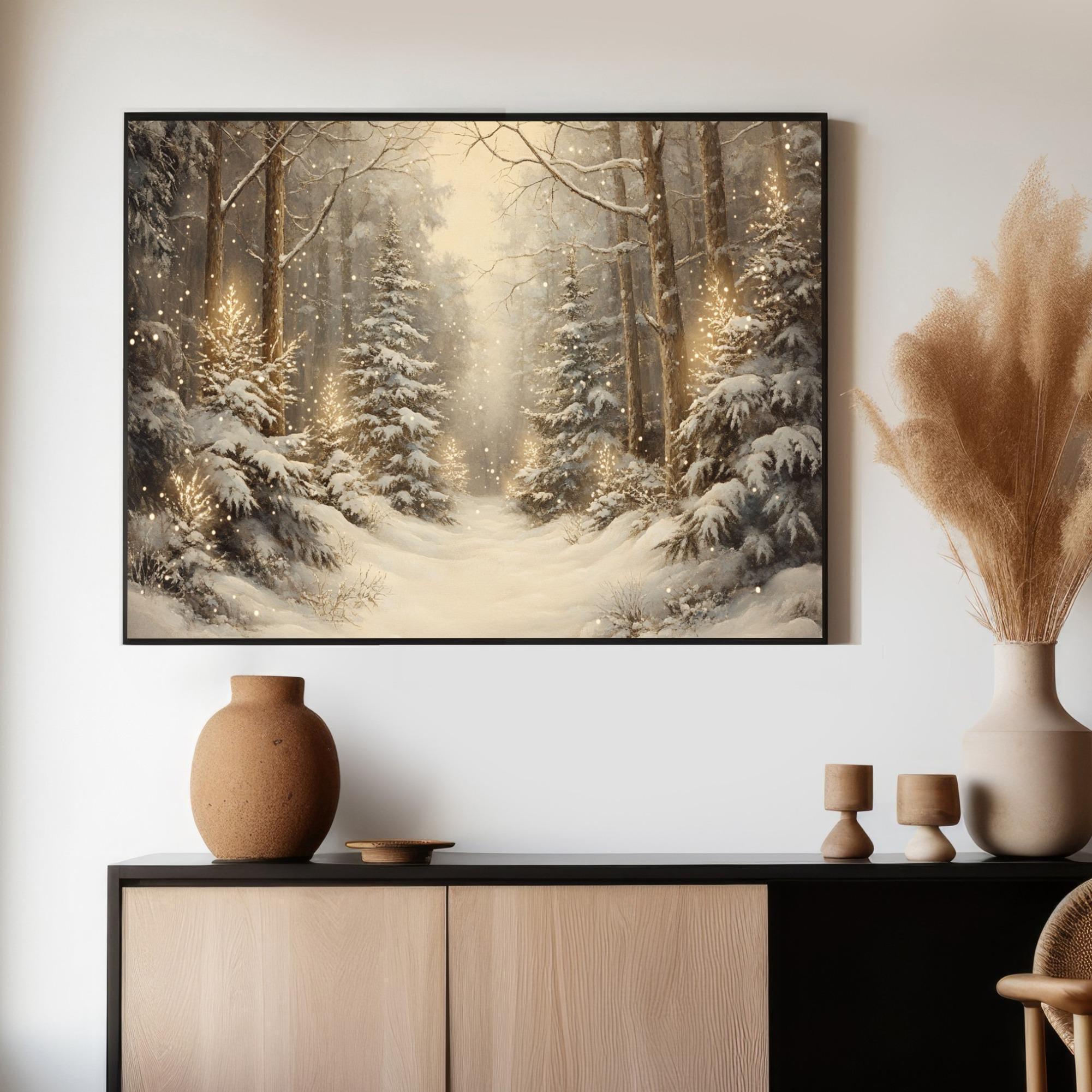 Warm up your holiday decor with this snowy forest Christmas wall artβa cozy winter landscape in rustic Nordic tones, perfect for mantels, entryways, kitchen nooks, bedrooms, and cabin-inspired interiors. Instant digital download for fast, beautiful styling βοΈπ