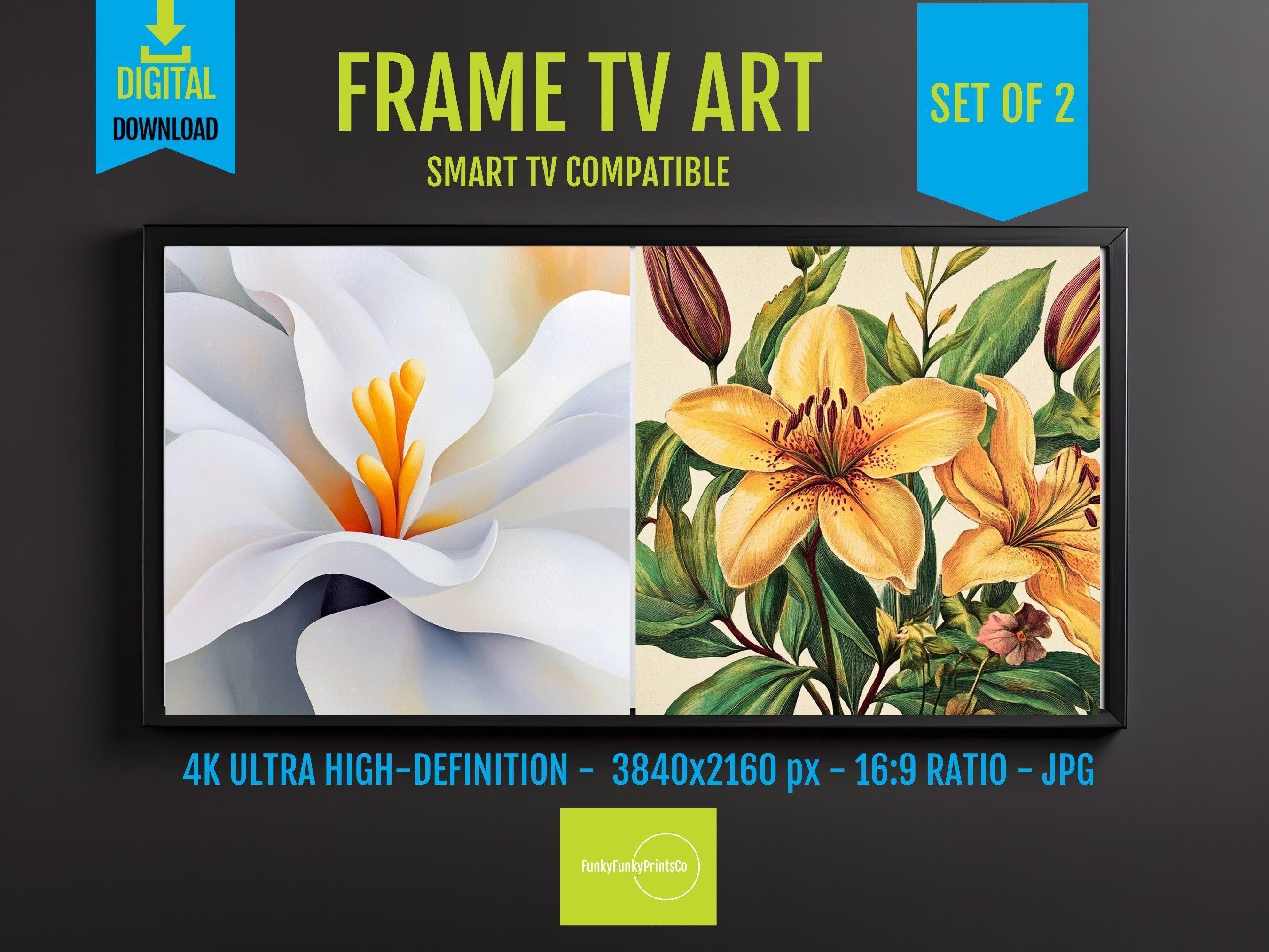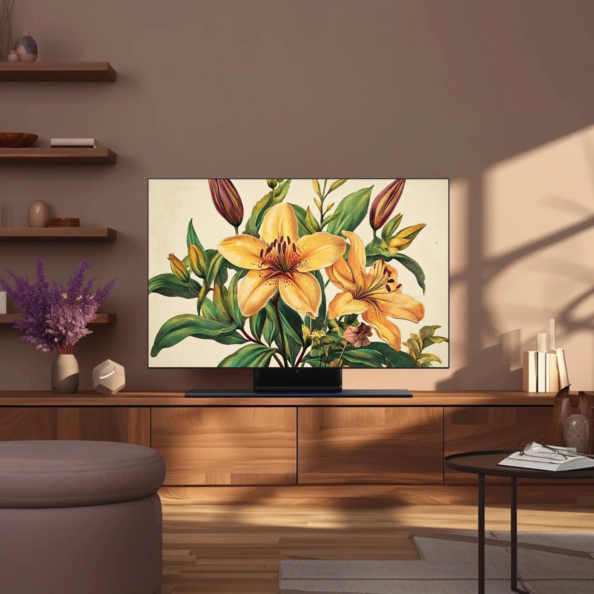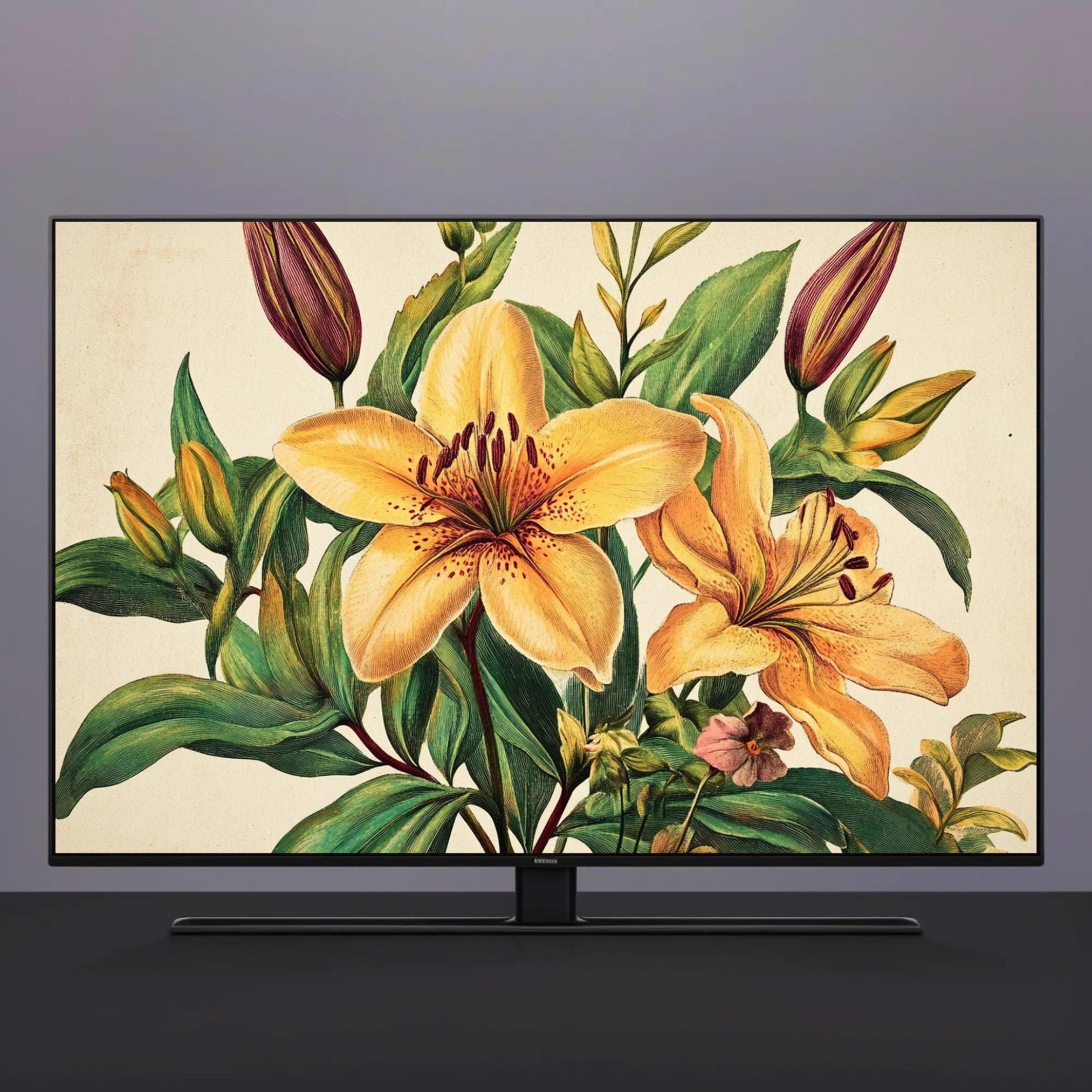 Transform your Samsung Frame TV into a stunning centerpiece with this vintage lily art, showcasing a delicate yellow lily and white lily in exquisite 4K HD resolution. Inspired by timeless botanical illustrations, this floral frame print brings a touch of nature-inspired art into your living room, bedroom, or office. Designed specifically as a 16x9 TV decor, it enhances your space with elegant, modern floral decor that complements any style.