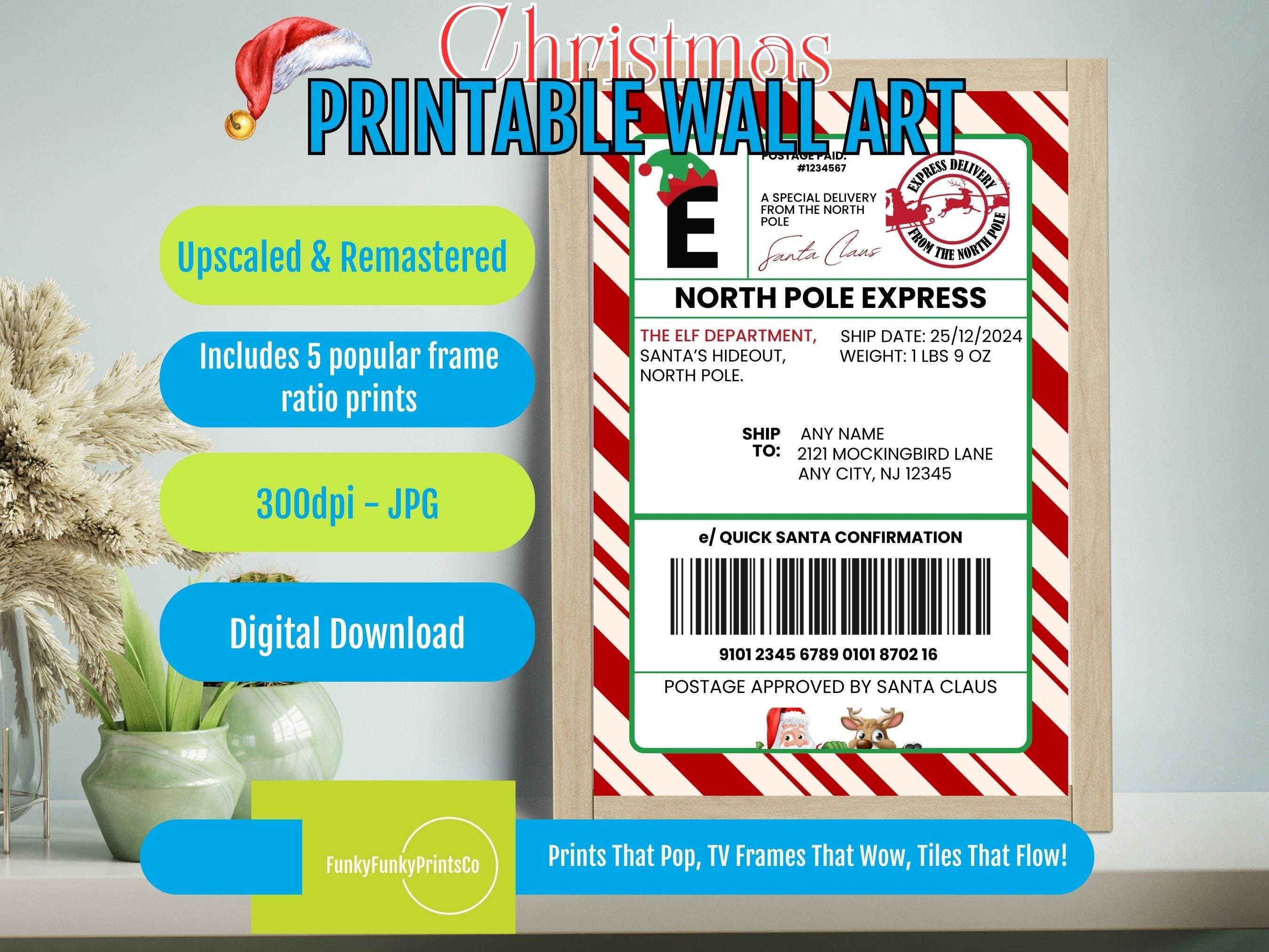 North Pole Express Santa Delivery Label Printable | Personalized Christmas Gift Tag for Kids | Santa’s Special Holiday Present Shipping Label