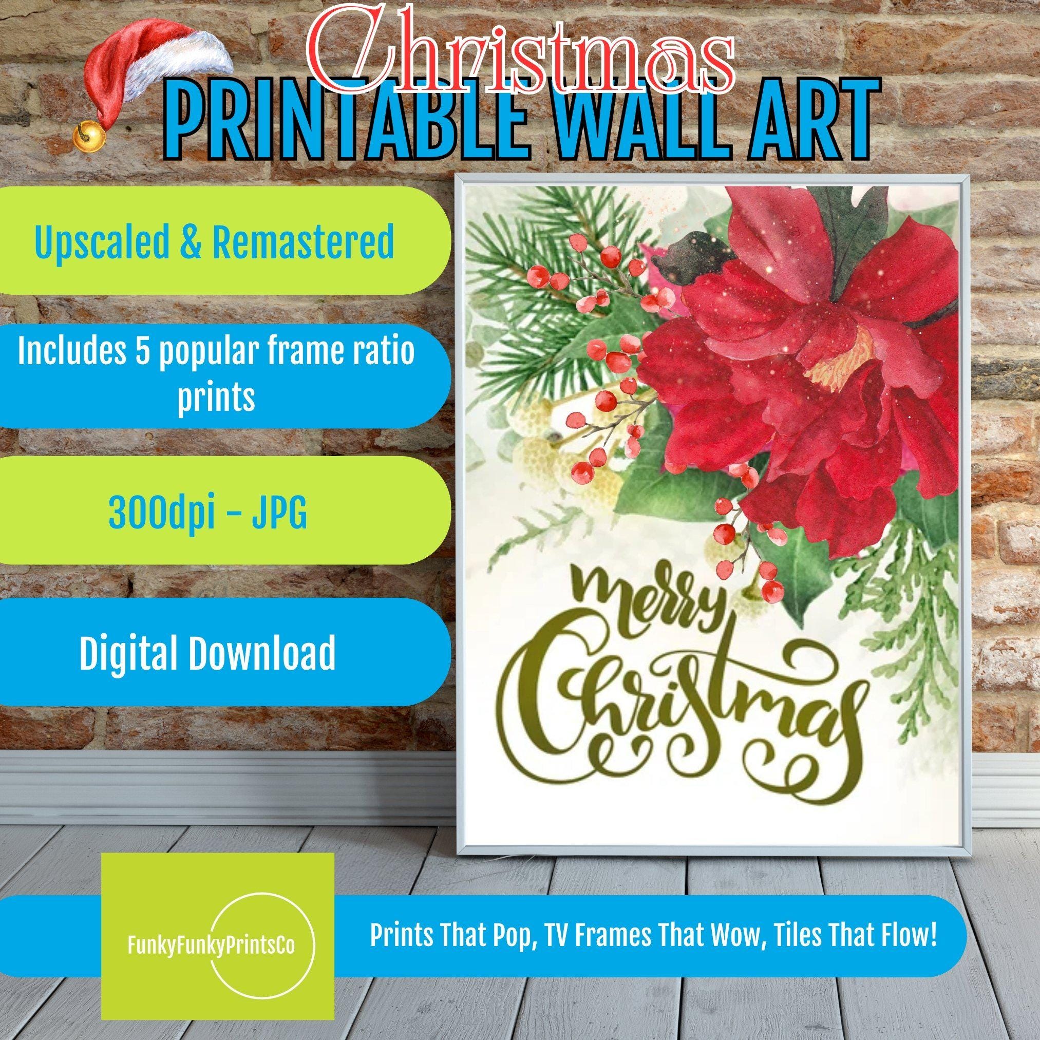 Watercolor Merry Christmas Printable - Festive Holiday Wall Art - Poinsettia and Greenery Decor - Christmas Downloadable Gift
