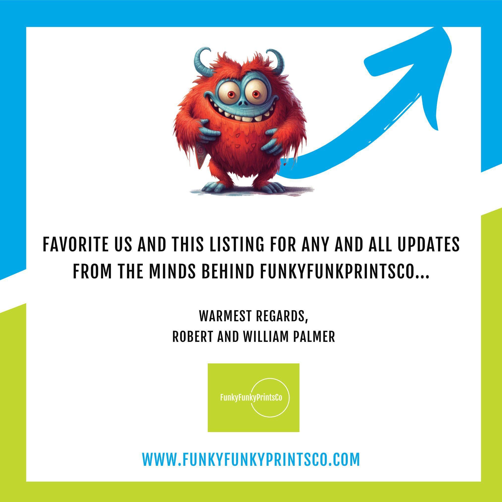 At FunkyFunkyPrintsCo, Rob and Will infuse every piece with the same passion and whimsy that turned their childhood love of design into a neighborhood sensation. From Prints That Pop to Tiles That Flow, our vibrant creations are designed to bring joy and quirky charm to every corner of your home.
