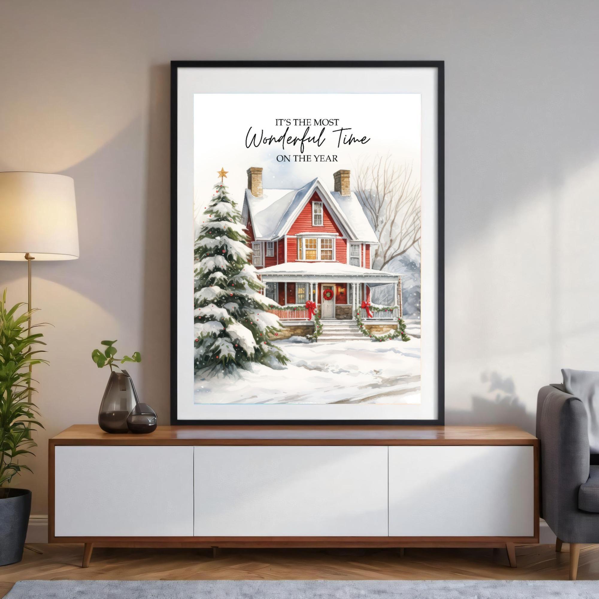 Christmas Watercolor House Art, Printable Holiday Wall Decor, Digital Download for Festive Home Decor, Seasonal Printable Art