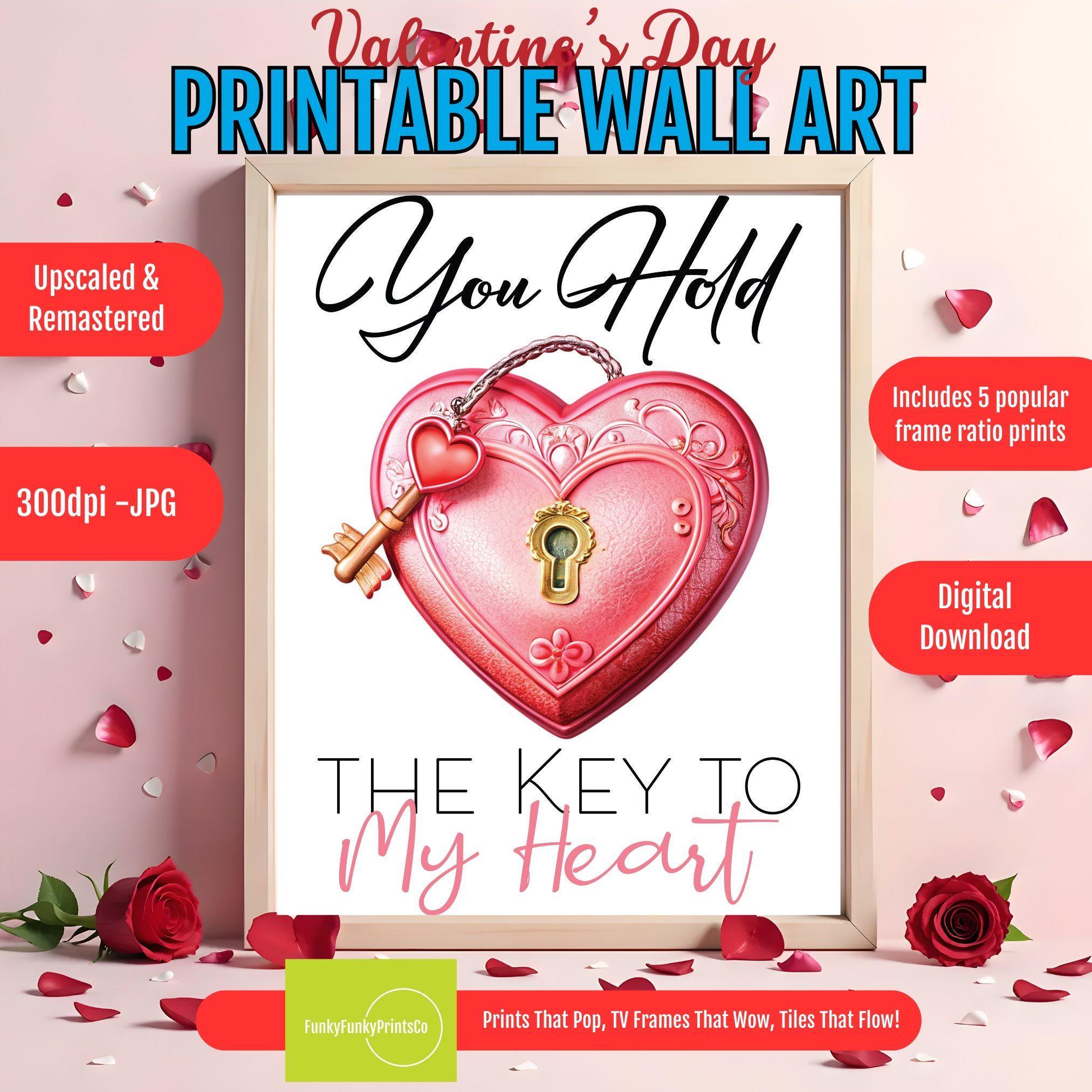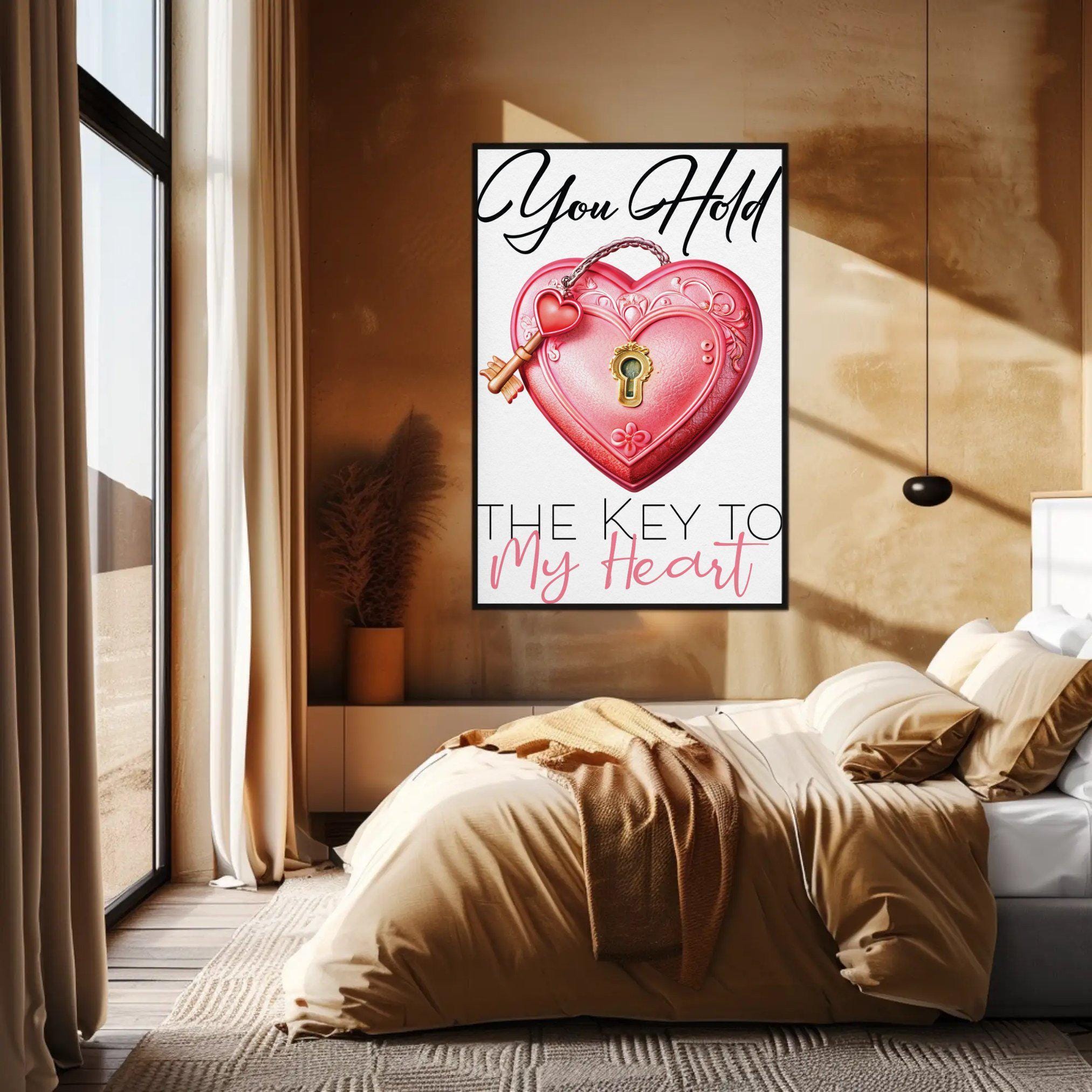 Valentine Decor Art Printable โ Heart Key Design "You Hold the Key to My Heart" Love Quote Artwork, Bedroom Wall Piece, Couples Decor Sign, Anniversary Gift Art, Printable Romantic, Heartfelt Love, Wall Art Printable, Romantic Home Art, Valentine's Day