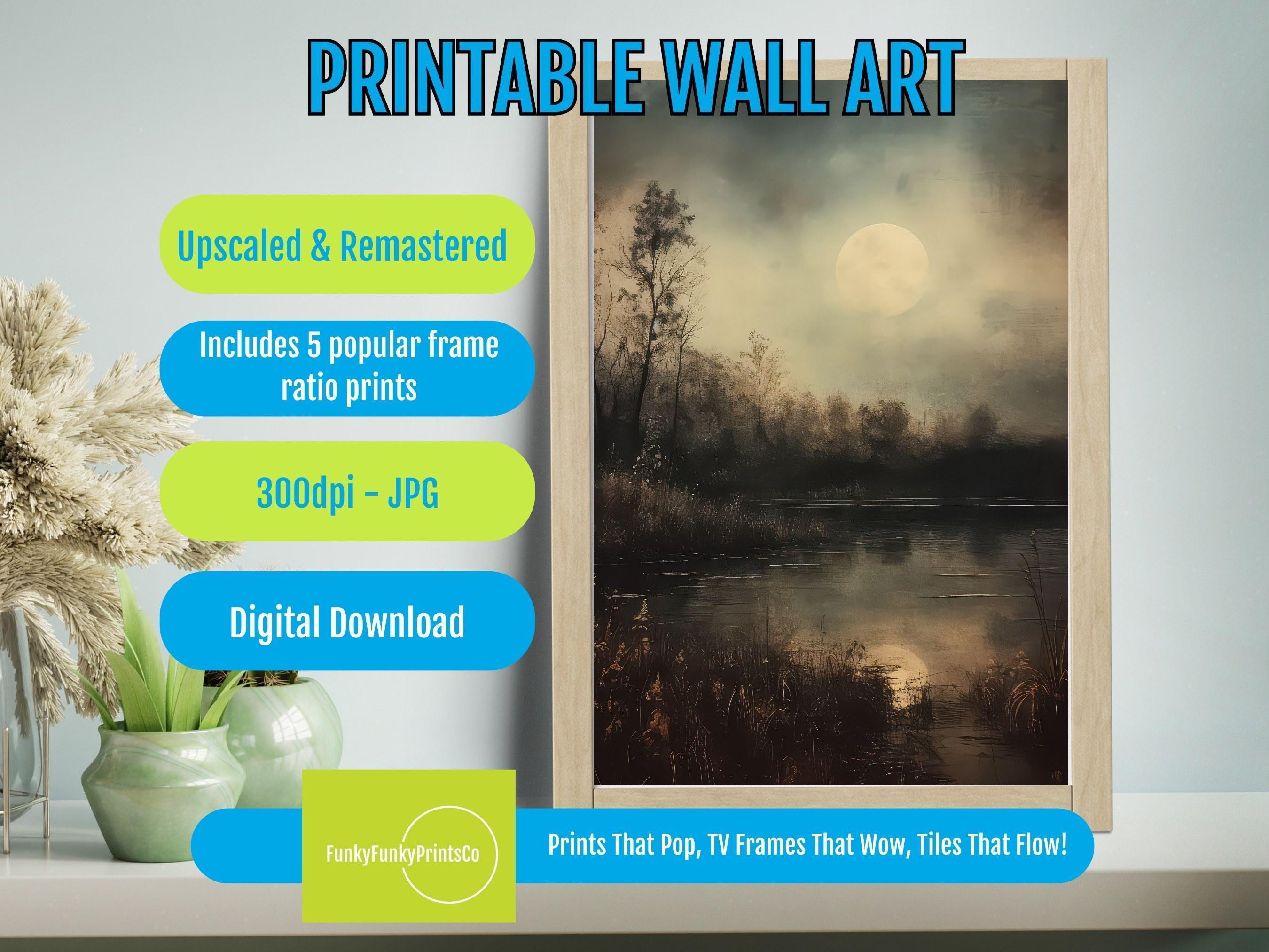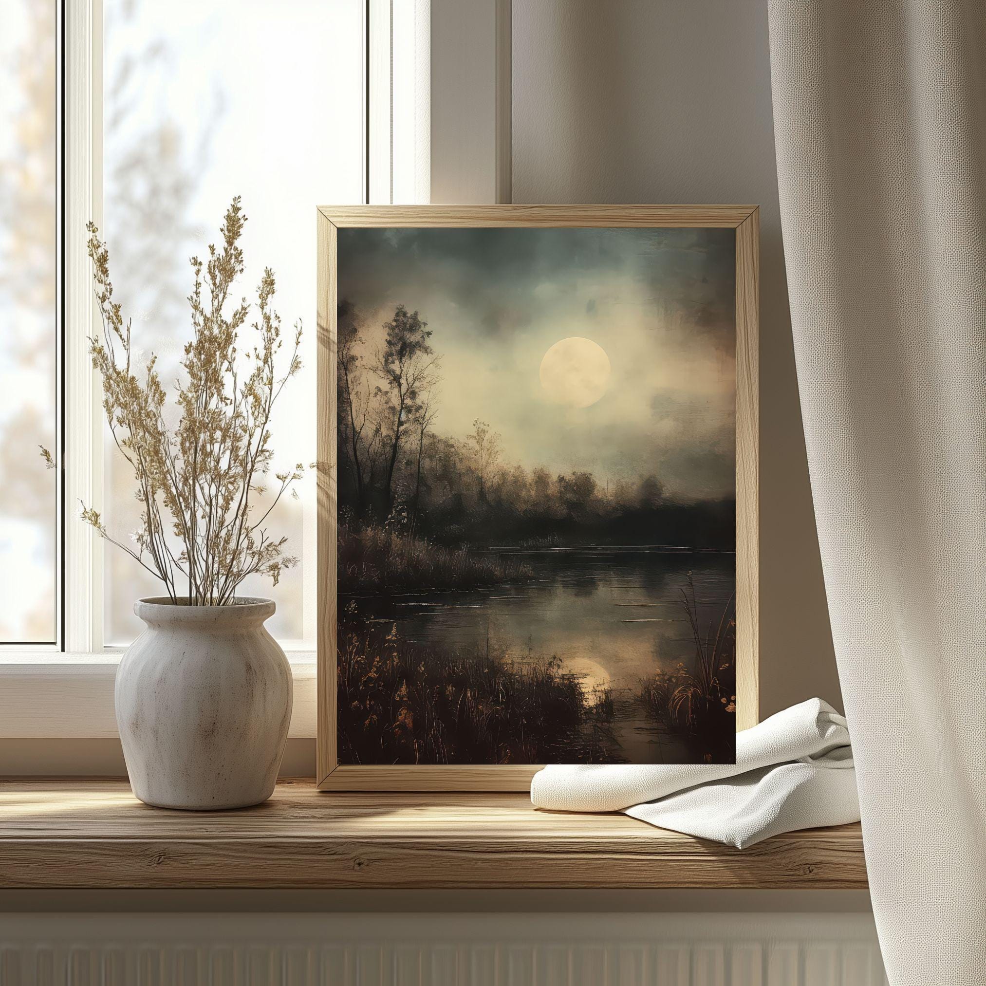Step into a tranquil world with this serene forest scene that captures the essence of a moody forest print bathed in moonlight. Perfectly blending rustic boho decor with calming natural elements, this artwork invites calm waters and peaceful wall art vibes into your living space. Whether you're curating a gallery wall or seeking modern wall decor that breathes nature's quiet beauty, this digital download art is designed to elevate your home instantly.