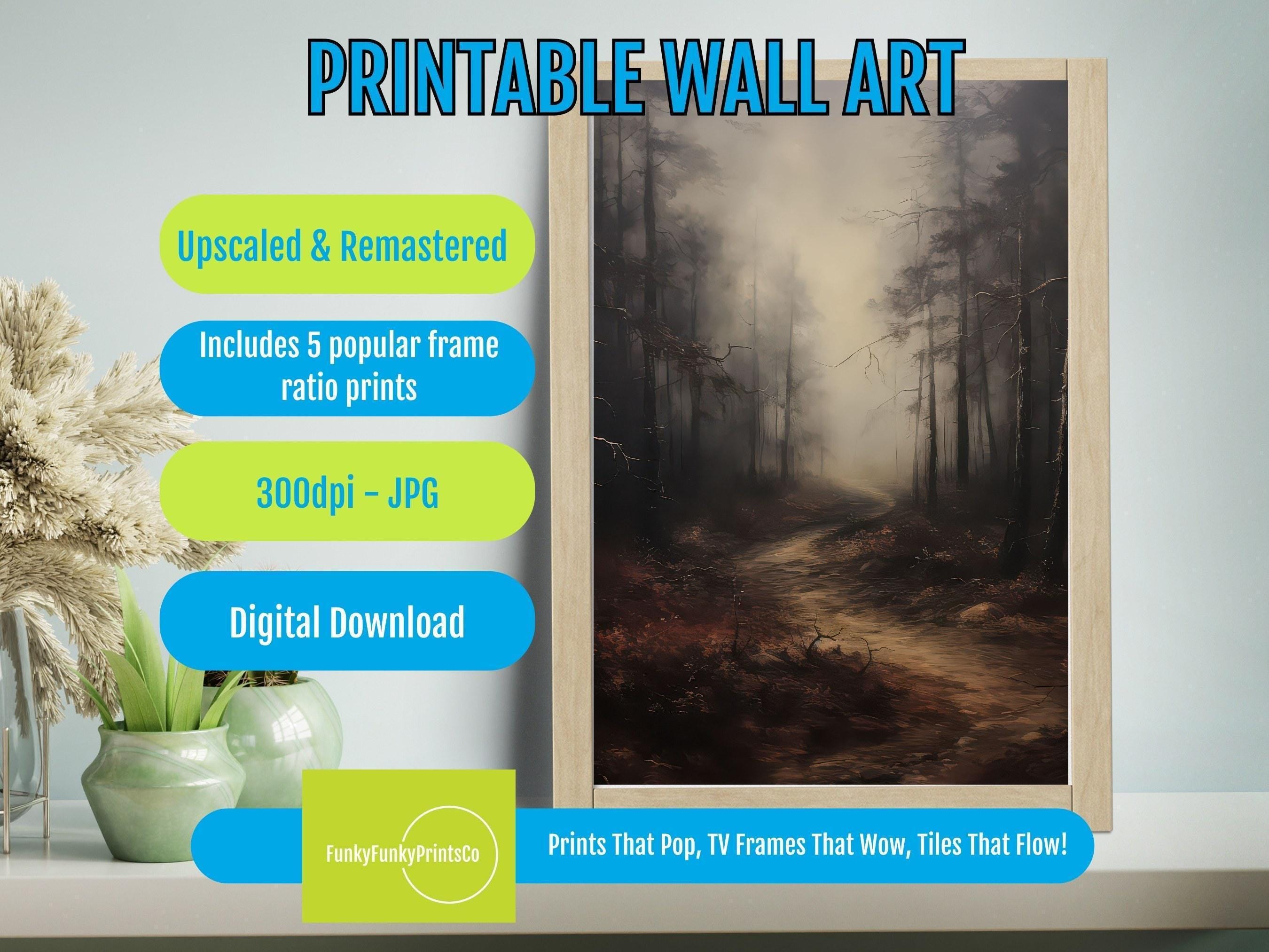 Step into a serene world where misty woodland scenes and moody forest prints bring nature's calming embrace right to your walls. This digital download art captures the ethereal light filtering through a peaceful forest path, perfect for adding rustic charm decor to your home office or living room. Whether you're a nature lover gift seeker or curating woodland wall decor, this piece offers a mystical forest vibe that transforms any space.