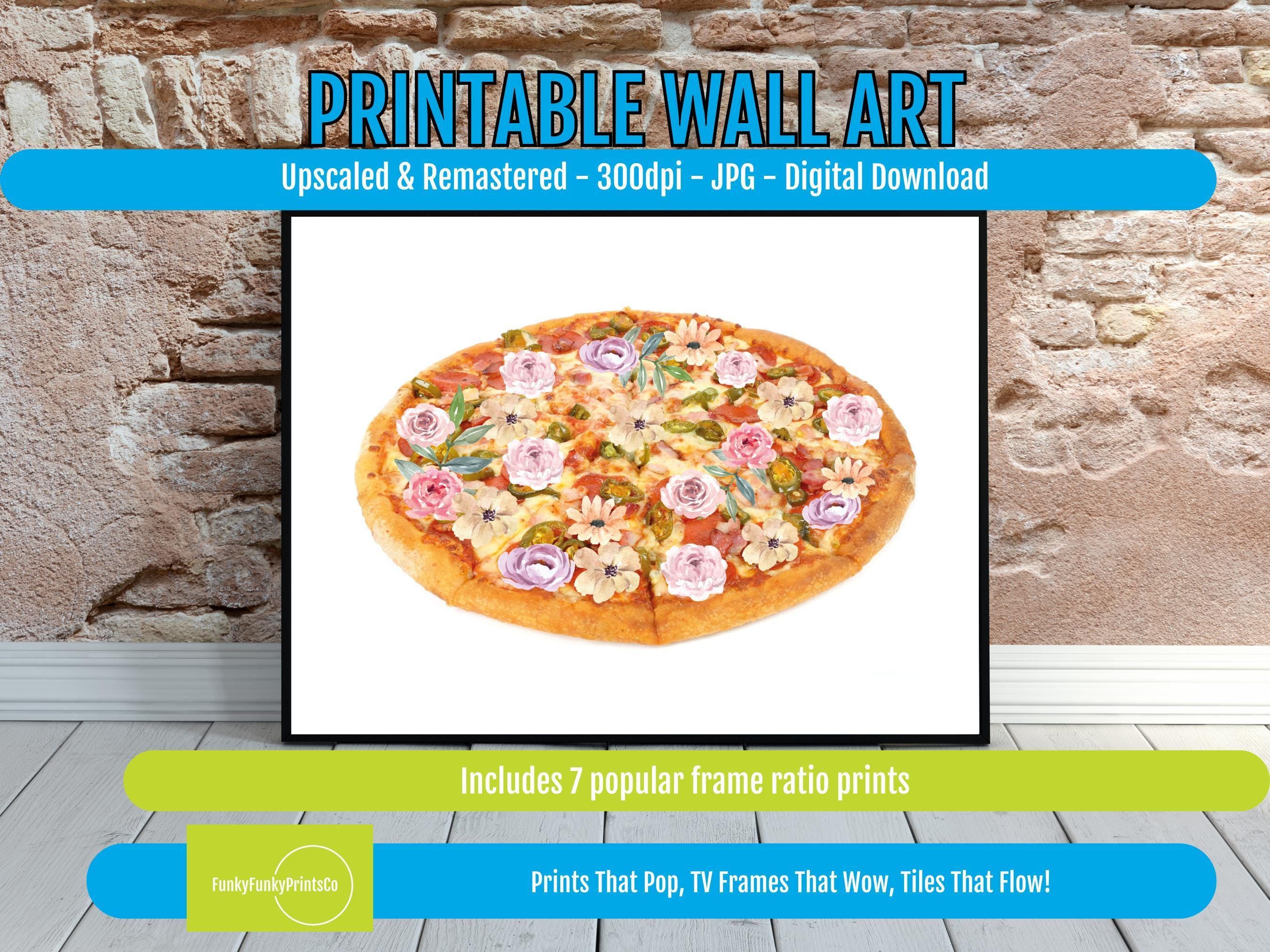 Features a distinctive pizza wall art design that combines floral pizza wall whimsy with artistic flair, making it ideal for food lover decor and vibrant home style