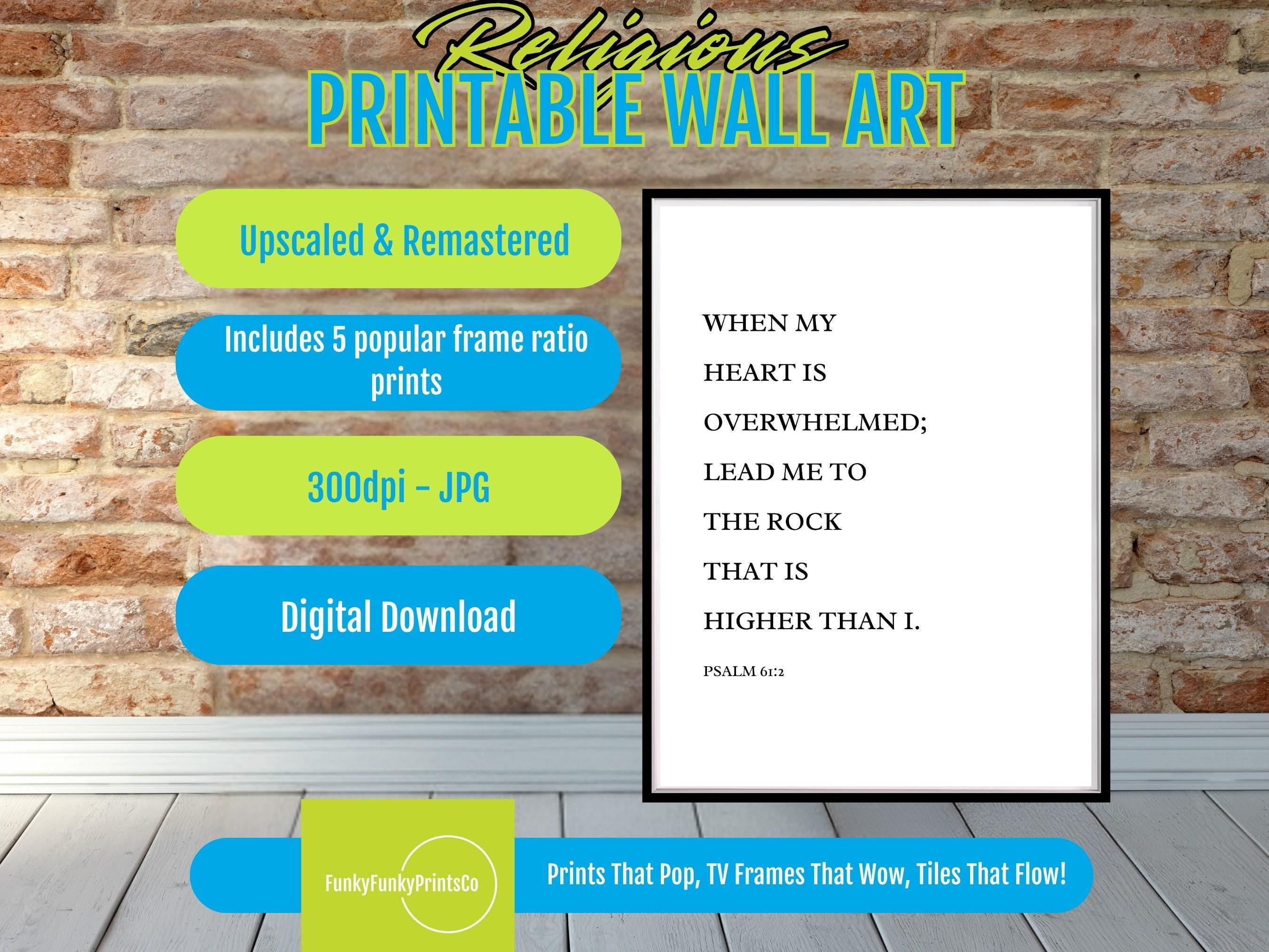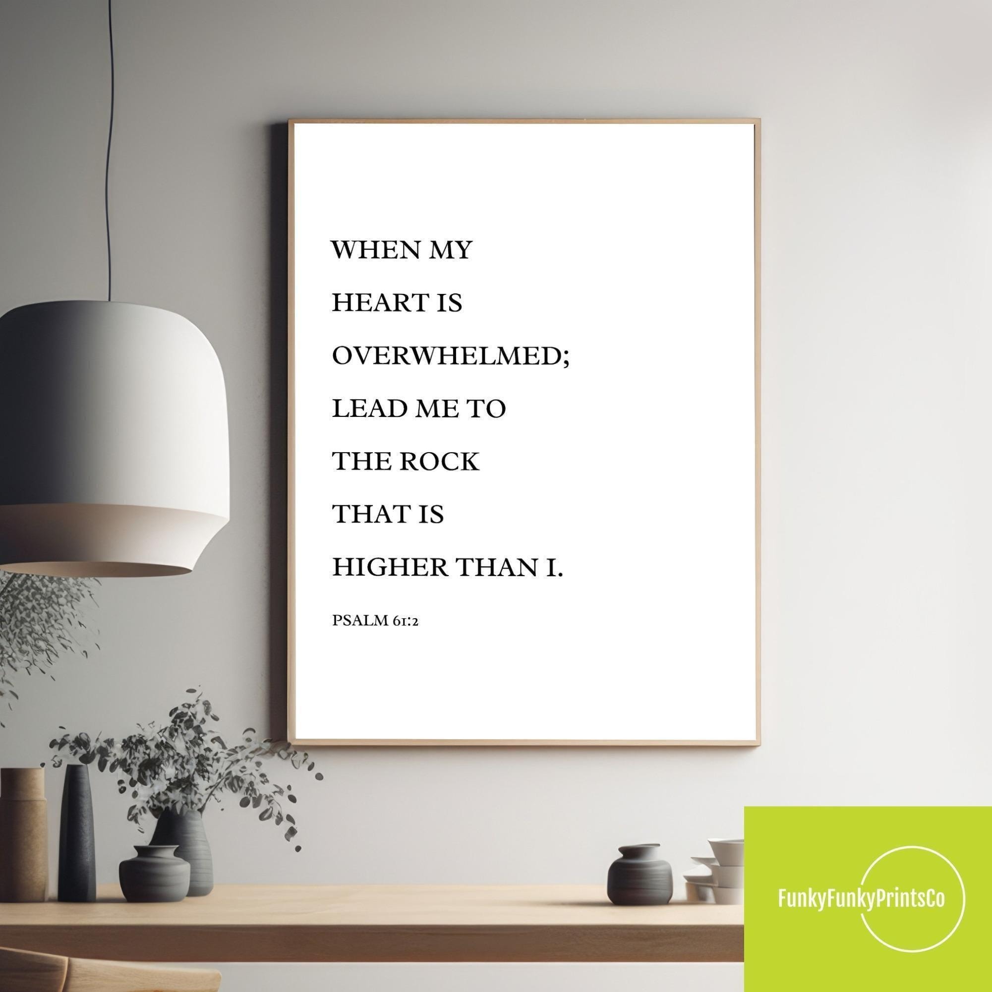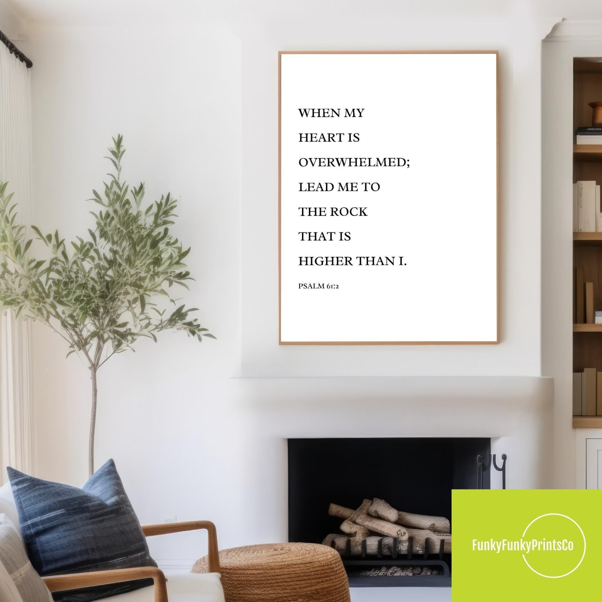 Discover a serene reminder of faith and resilience with our Psalm 61:2 printable decor, designed to bring comfort when your heart feels overwhelmed. This minimalist Bible art beautifully captures the essence of God as our rock and strength, making it a perfect scripture wall piece for any space. Whether you seek spiritual decor sign inspiration or a meaningful religious gift idea, this faith strength art uplifts and encourages hope in God every day.