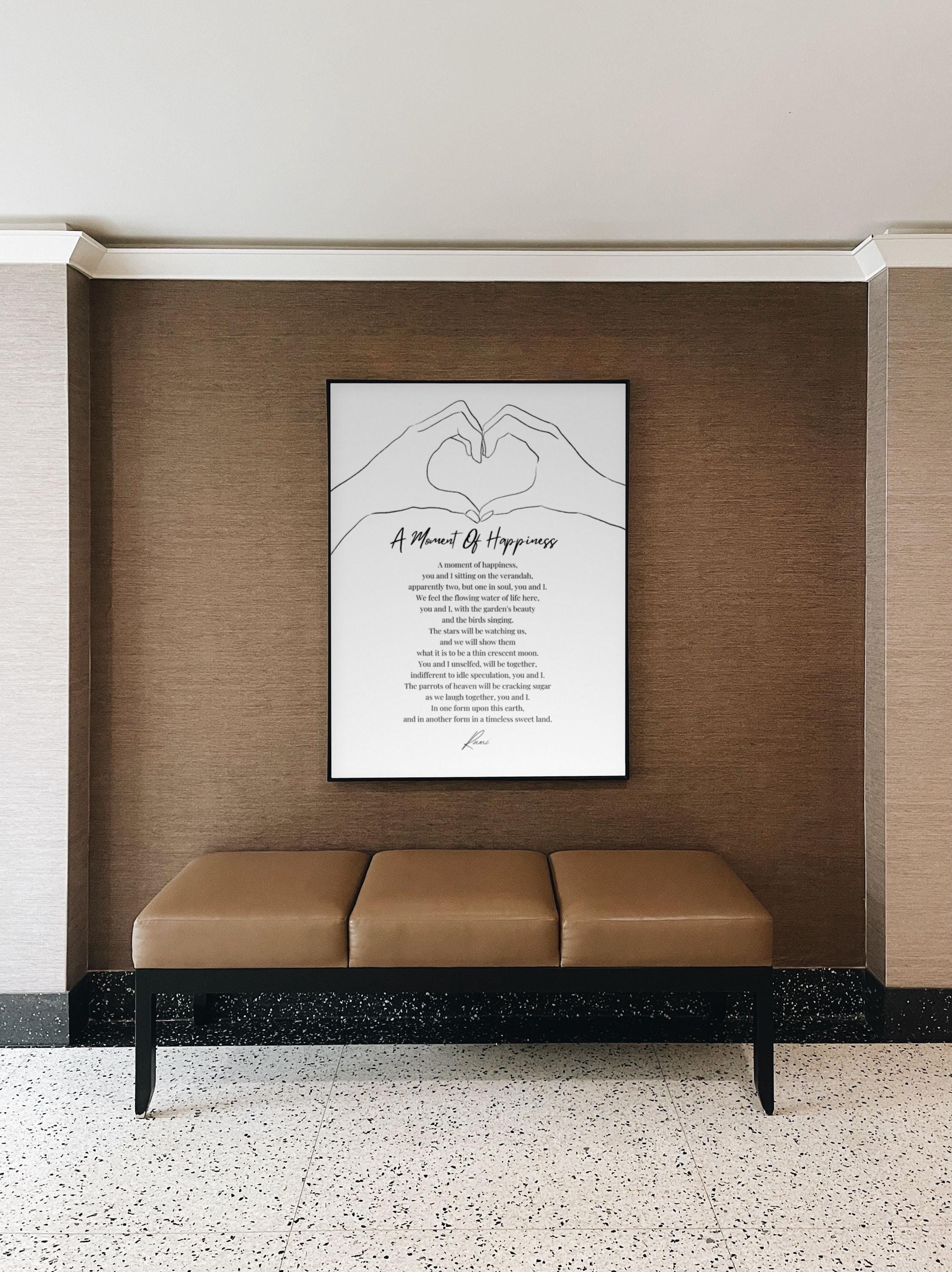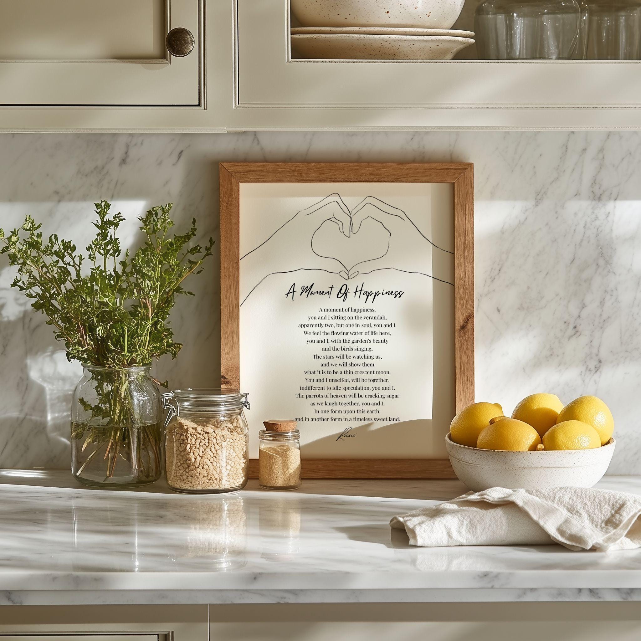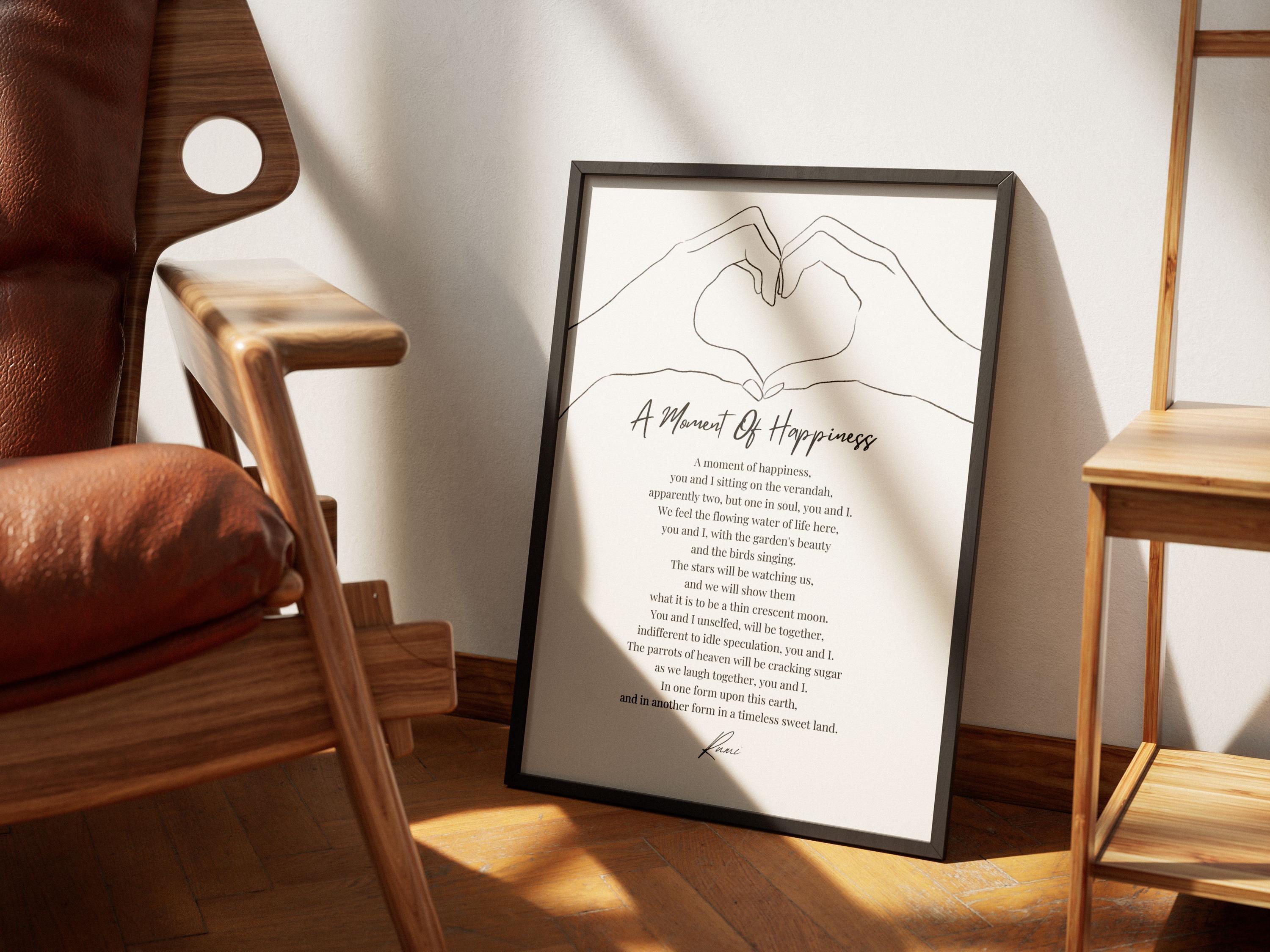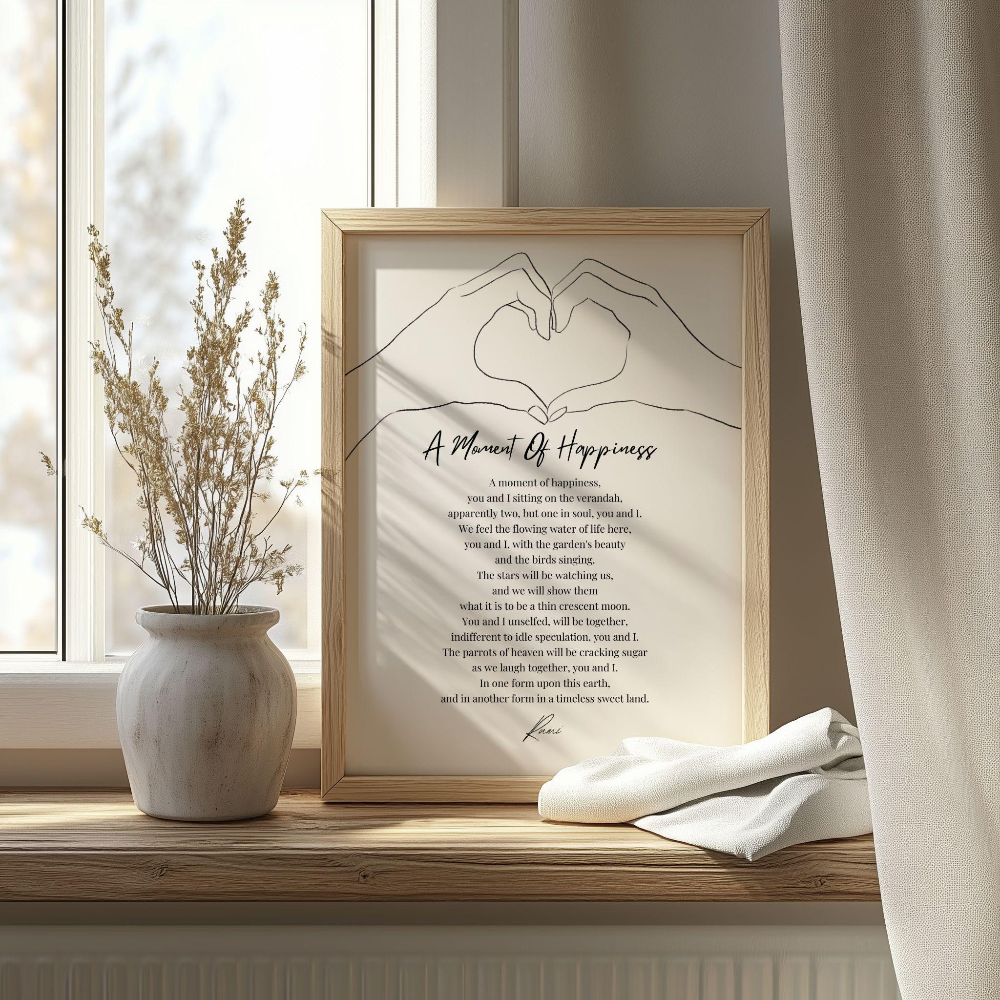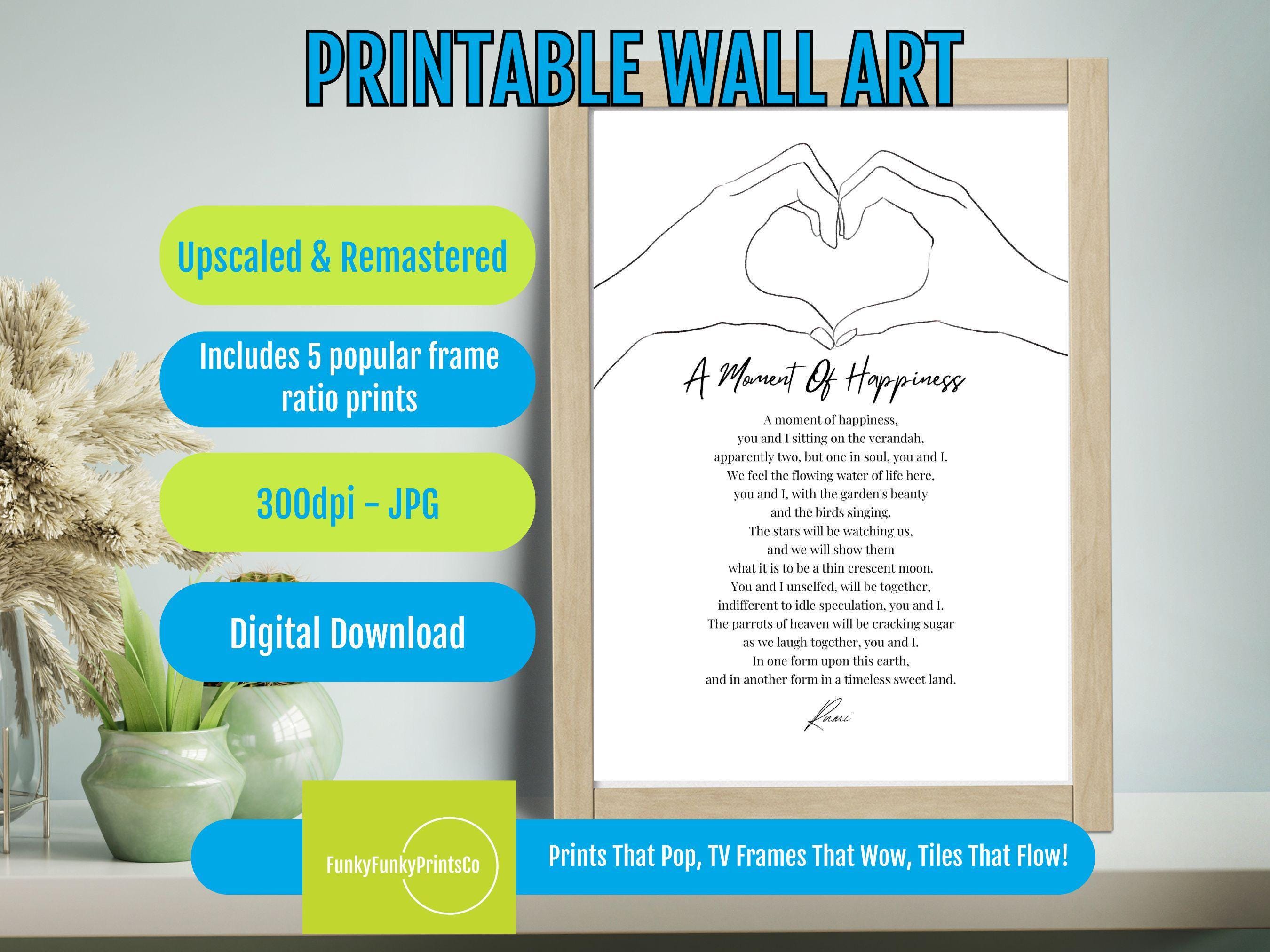 Step into a moment of calm with this exquisite digital download art that beautifully blends soulful words and a hand heart design. Inspired by Rumi's timeless poem, this spiritual home gift brings a peaceful energy to any meditation room art collection. Its minimalist black and white palette adds a modern love artwork touch that complements serene spaces effortlessly.