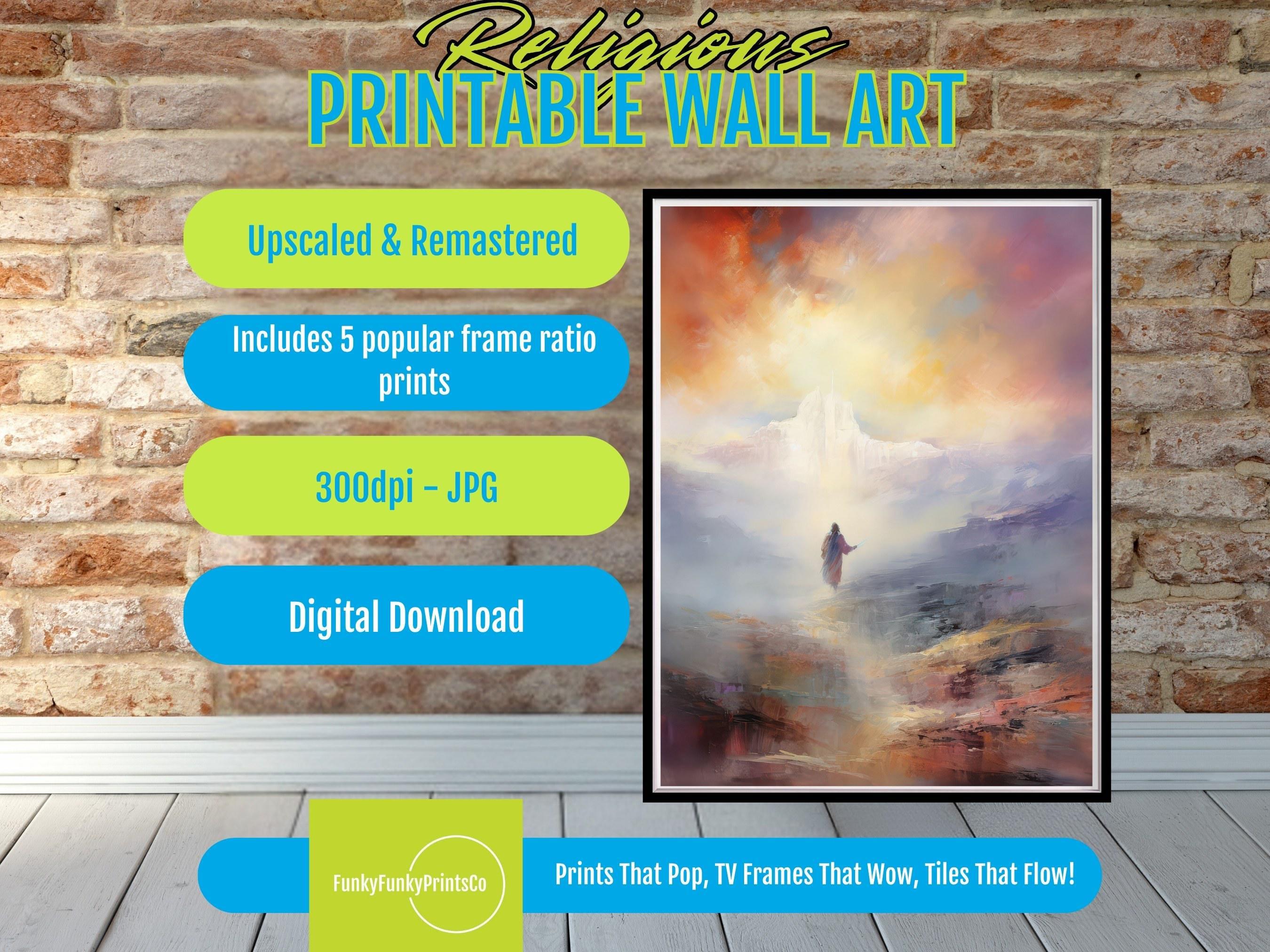 Step into a serene moment of reflection with this beautiful piece of religious wall art, thoughtfully designed to inspire faith and tranquility. Our printable faith art captures the profound essence of Jesus walking in light, making it a perfect addition to any prayer room or sacred space. Infused with abstract spiritual elements, this inspirational Jesus wall art invites you to embrace a deeper connection to your beliefs and fill your home with a sense of peace.