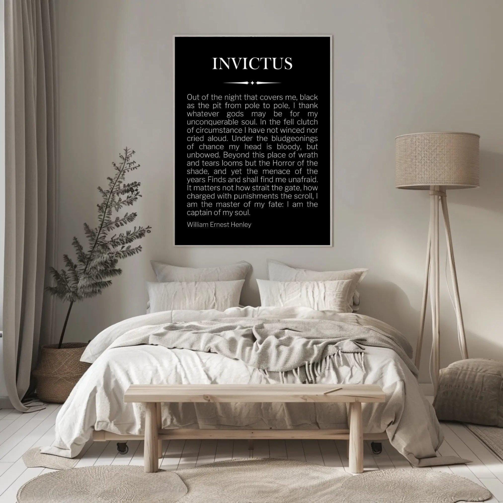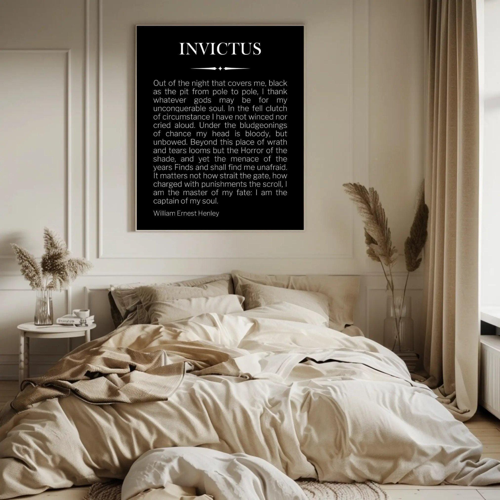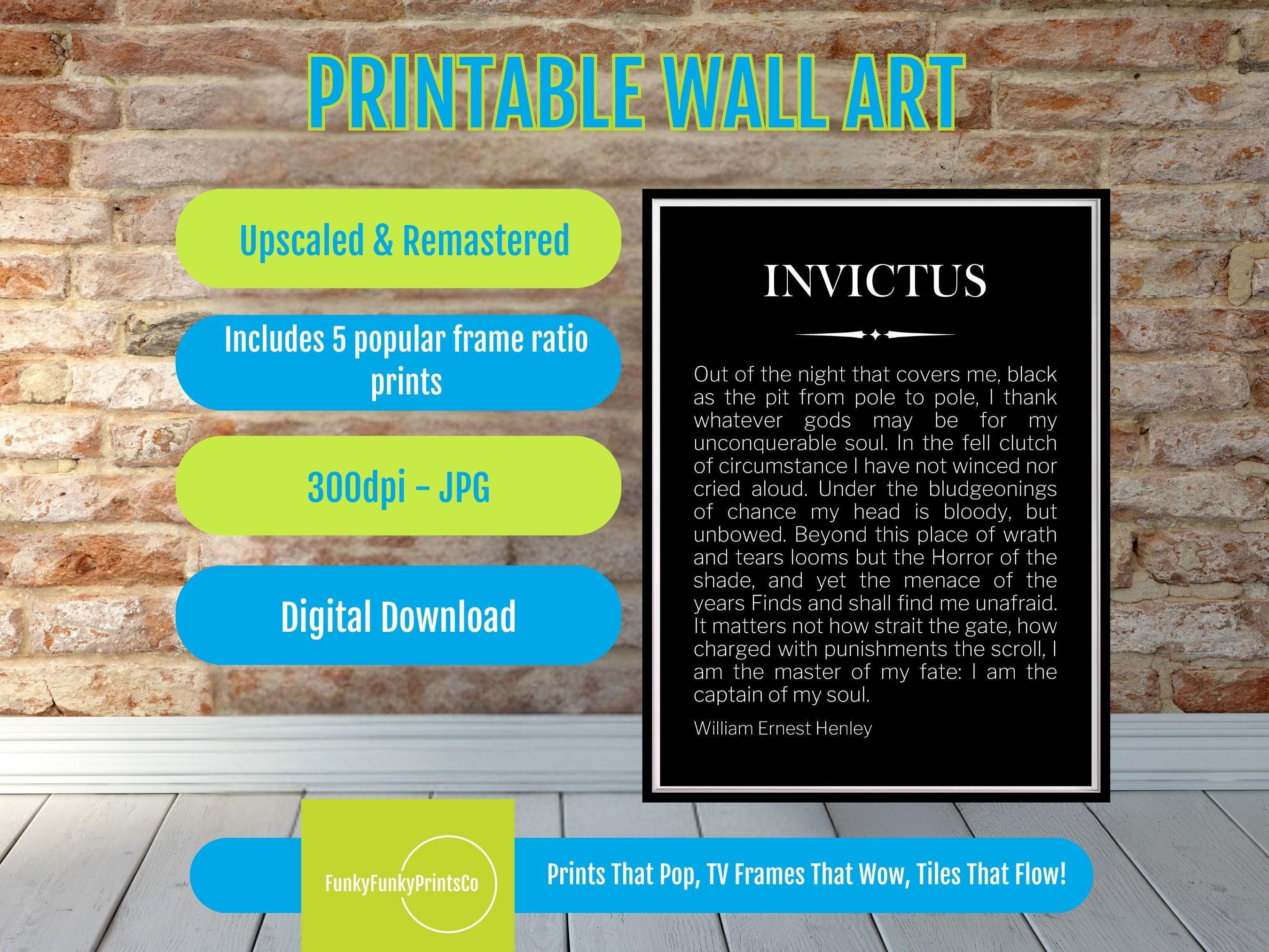 💪 Empowering Design – Showcases the full text of the Invictus poem by William Ernest Henley in a clean, bold layout.