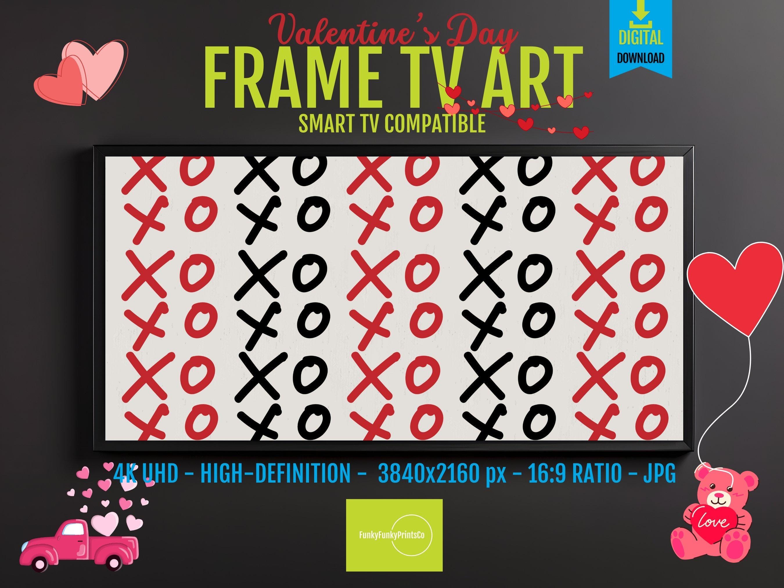Experience the perfect blend of modern love artwork and minimalist red print with this striking XO pattern frame TV art. Designed to bring a romantic art print vibe to your space, this digital wall decor captures the essence of hugs and kisses art in bold black and red hues. Whether you're refreshing your living area or searching for unique valentine decor art, this contemporary piece adds warmth and connection effortlessly.