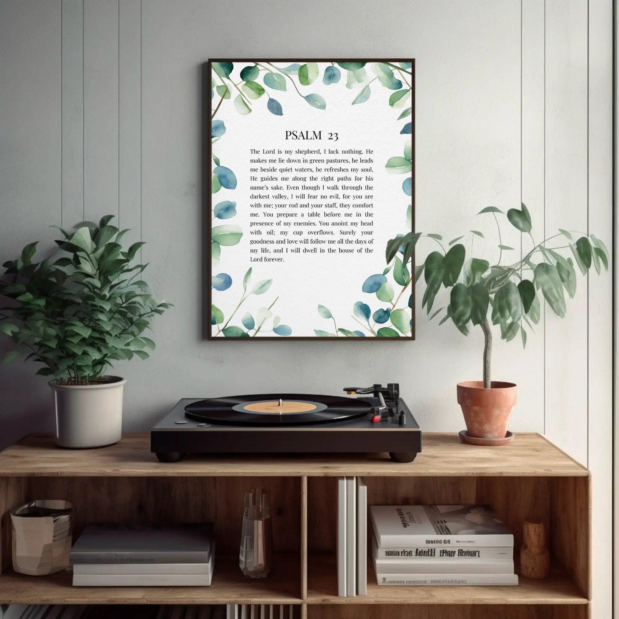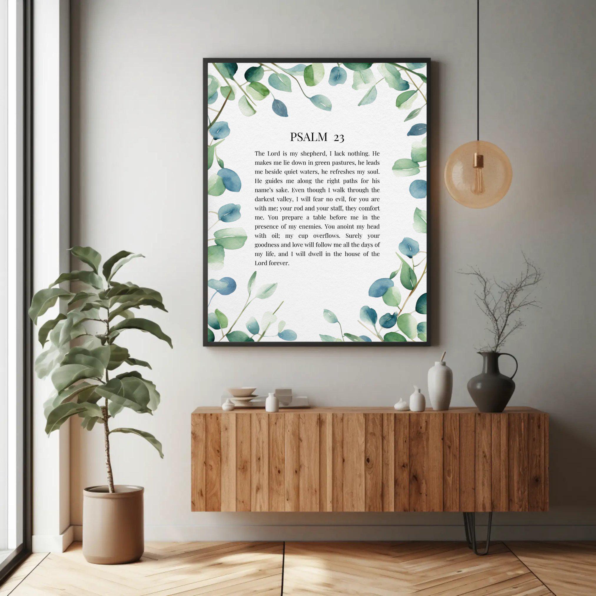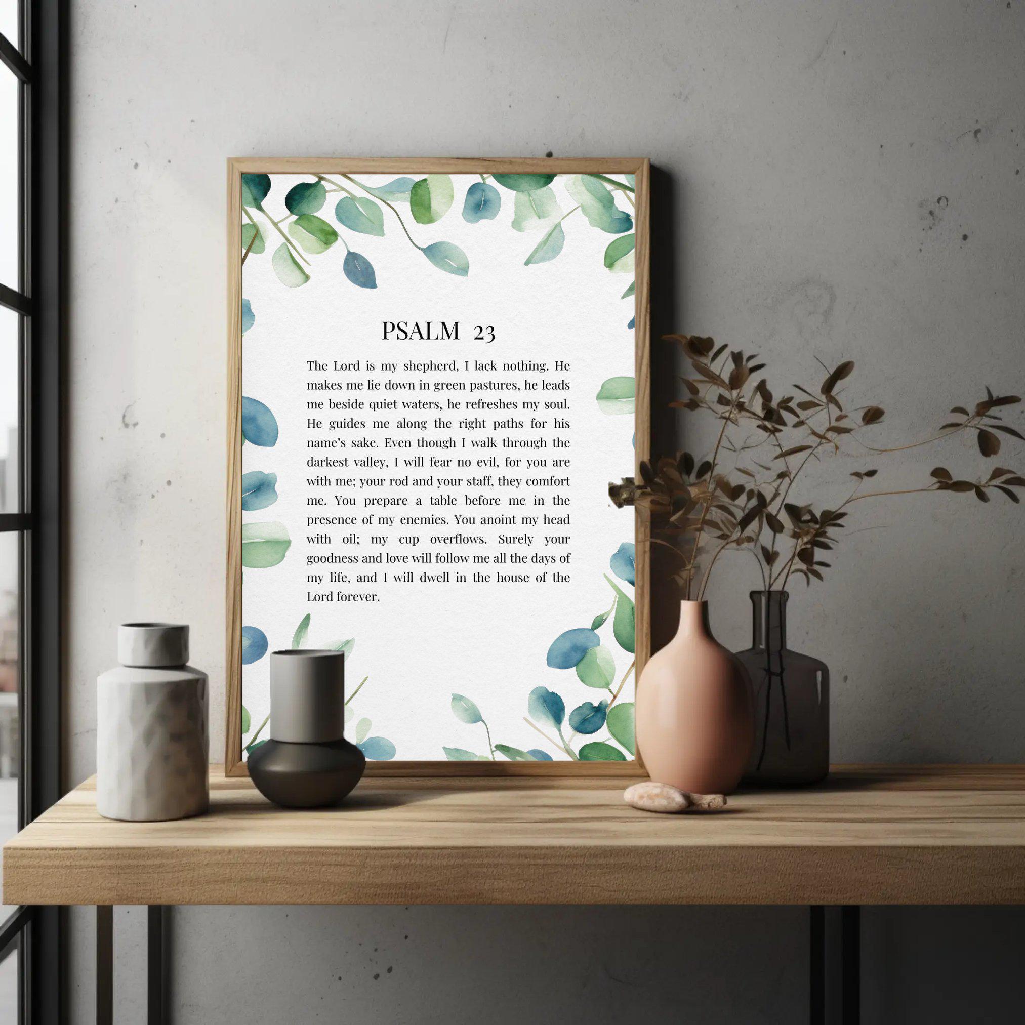 Immerse your space in serene inspiration with this beautifully crafted psalm 23 art, where lush greenery scripture meets timeless faith. Designed to uplift, this bible verse print blends nature's calming presence with spiritual encouragement, perfect for anyone seeking meaningful christian wall art. Whether displayed in a prayer nook or as part of faith wall decor, this printable psalm 23 piece invites peace and reflection.