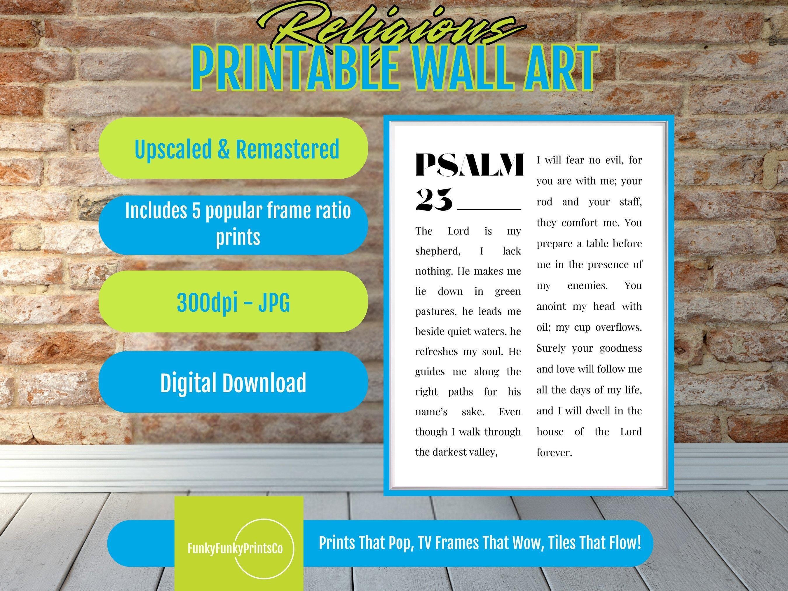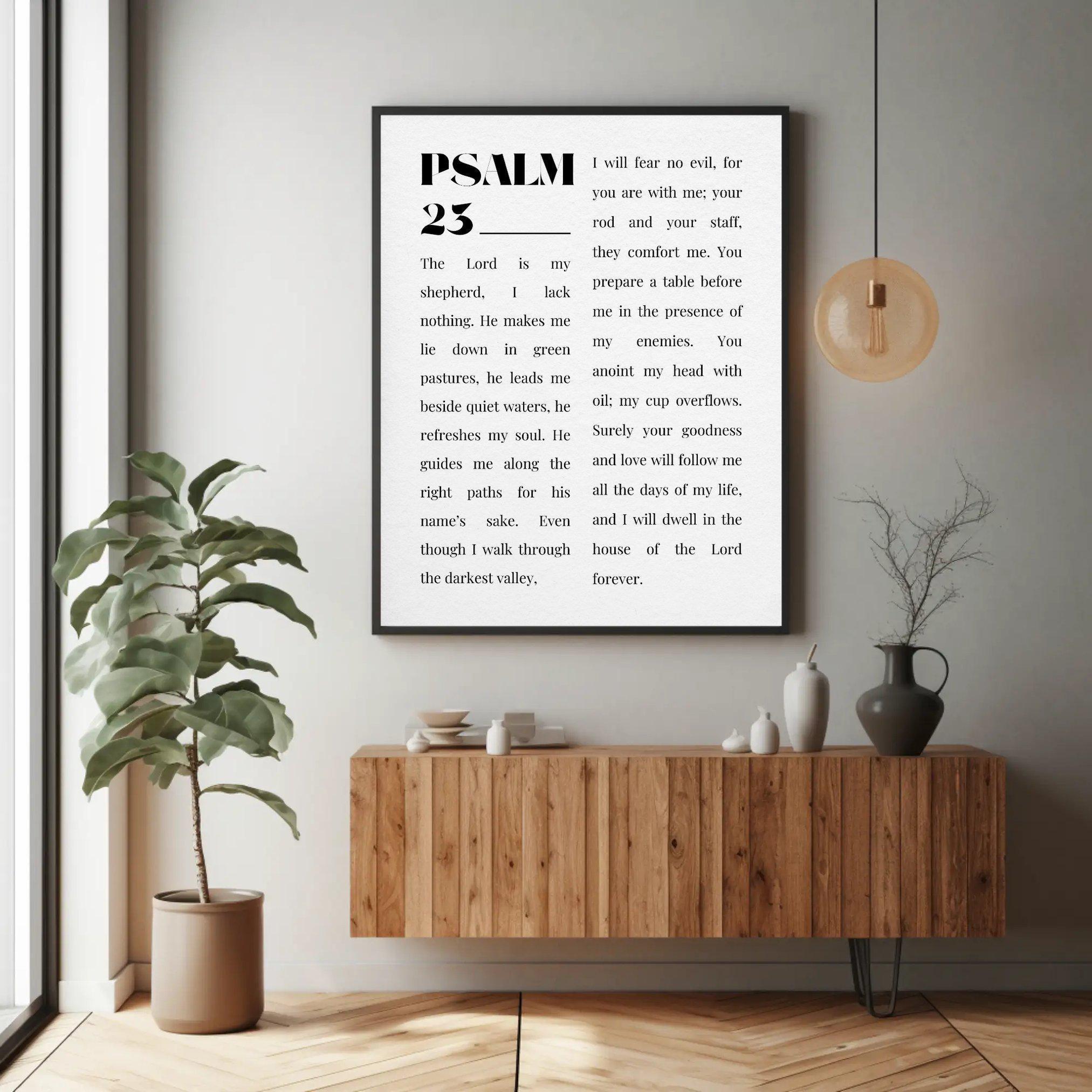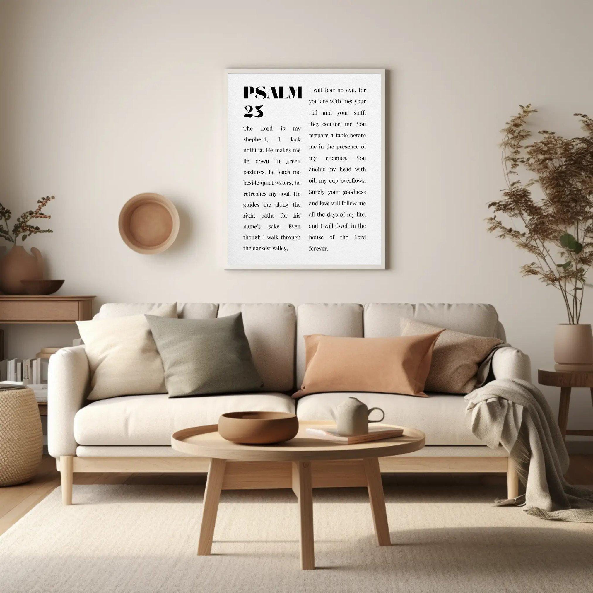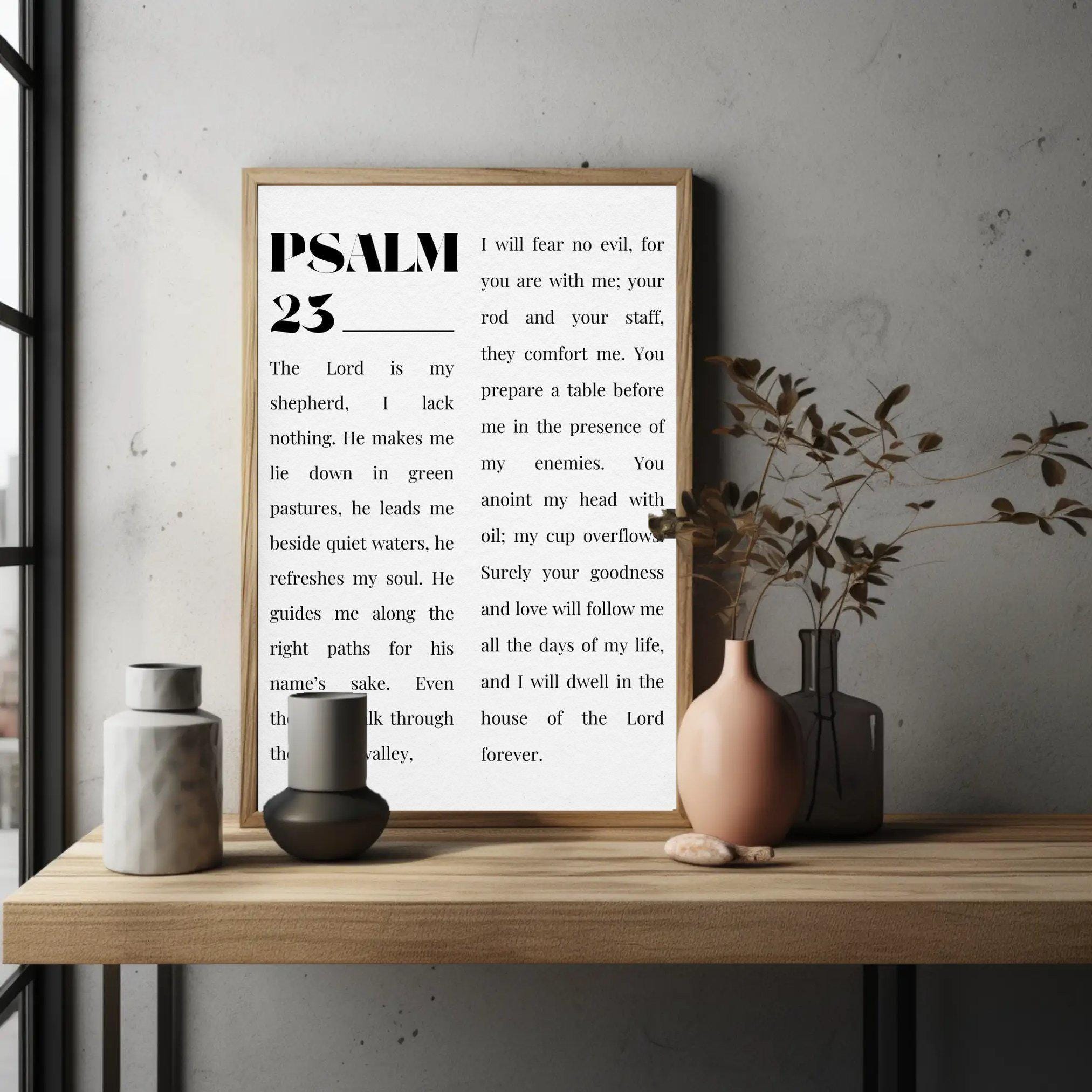 Discover the comforting embrace of faith with this Psalm 23 print, thoughtfully designed to inspire and uplift your space. This scripture print blends elegant hand-lettered typography with a soft textured background, making it a perfect addition to your christian decor. Whether placed in a prayer room or used as inspirational art, this faith wall art invites peace and reflection into your daily life.