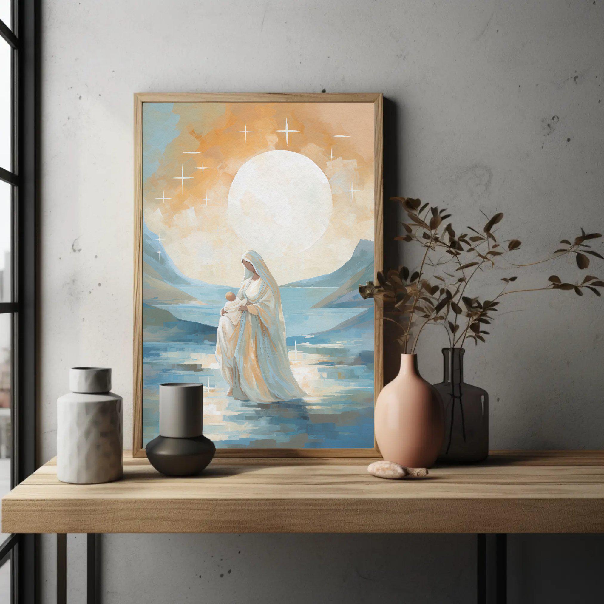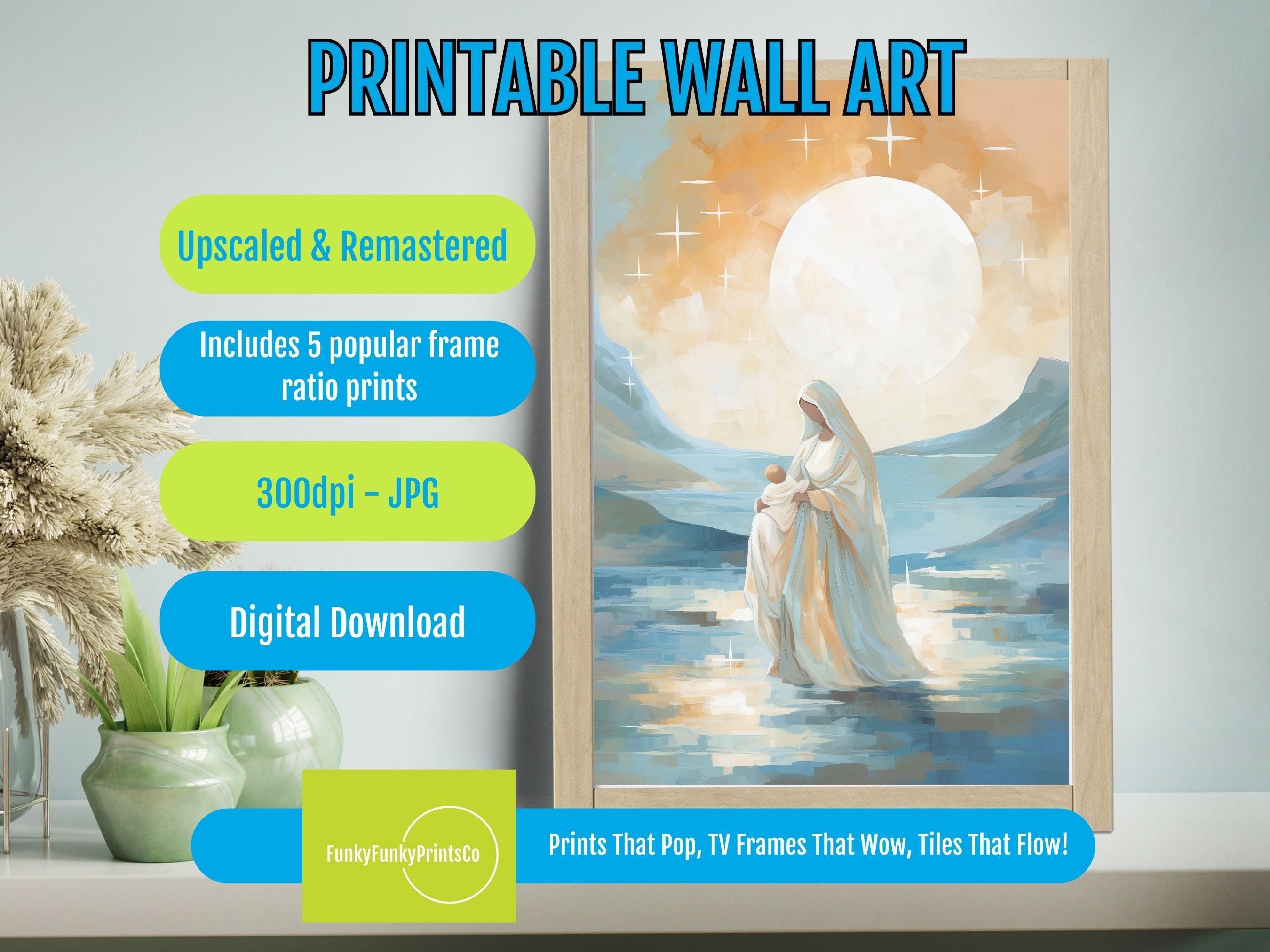 Immerse yourself in a serene moment with this exquisite Mary and Jesus wall art, designed to bring a gentle spirit into your sacred prayer room. This Marian art print captures the tender bond between mother and child, making it a meaningful addition to any spiritual home decor collection. Perfect as a Catholic gift idea, it invites faith and devotion into your living space through an easy digital download.